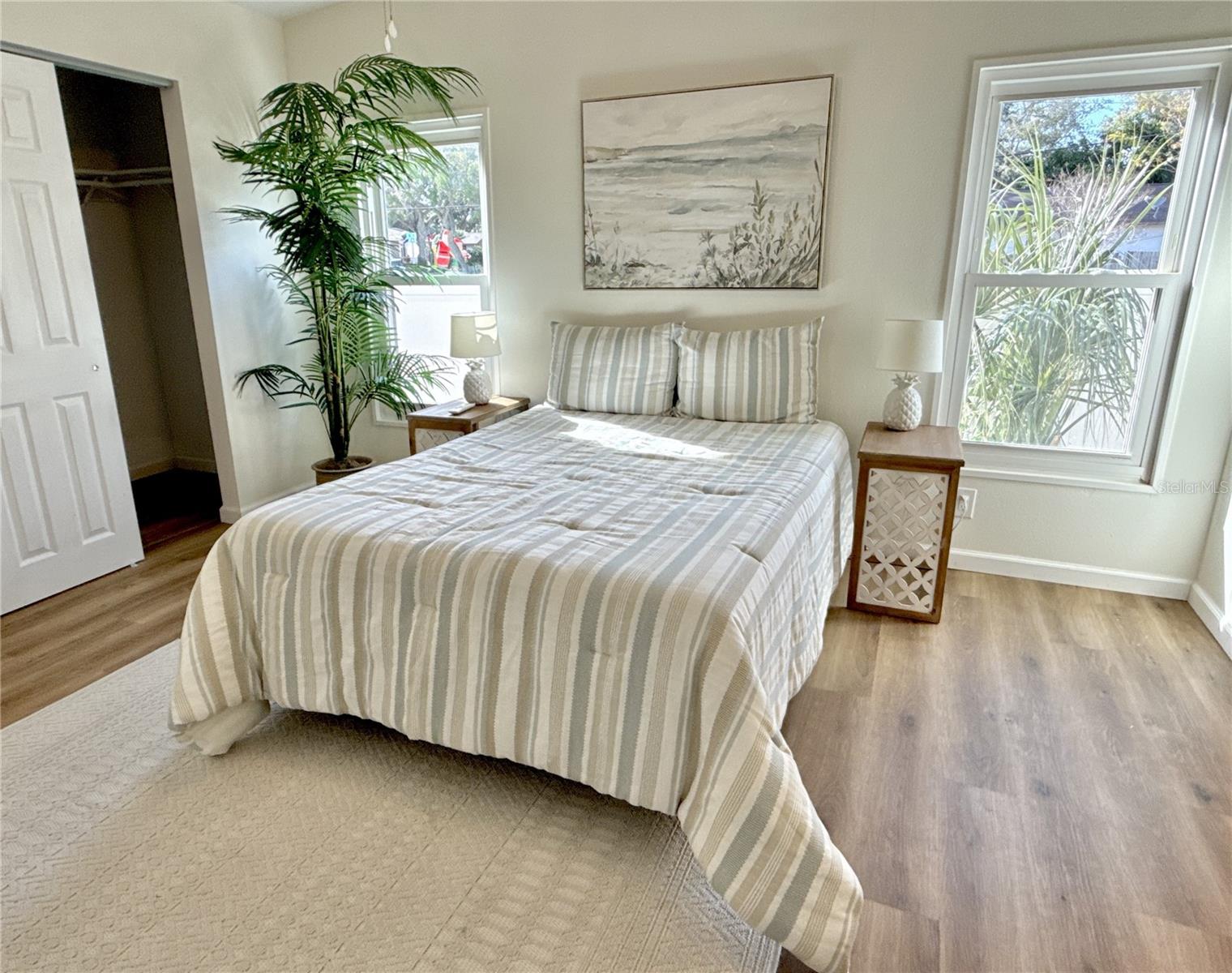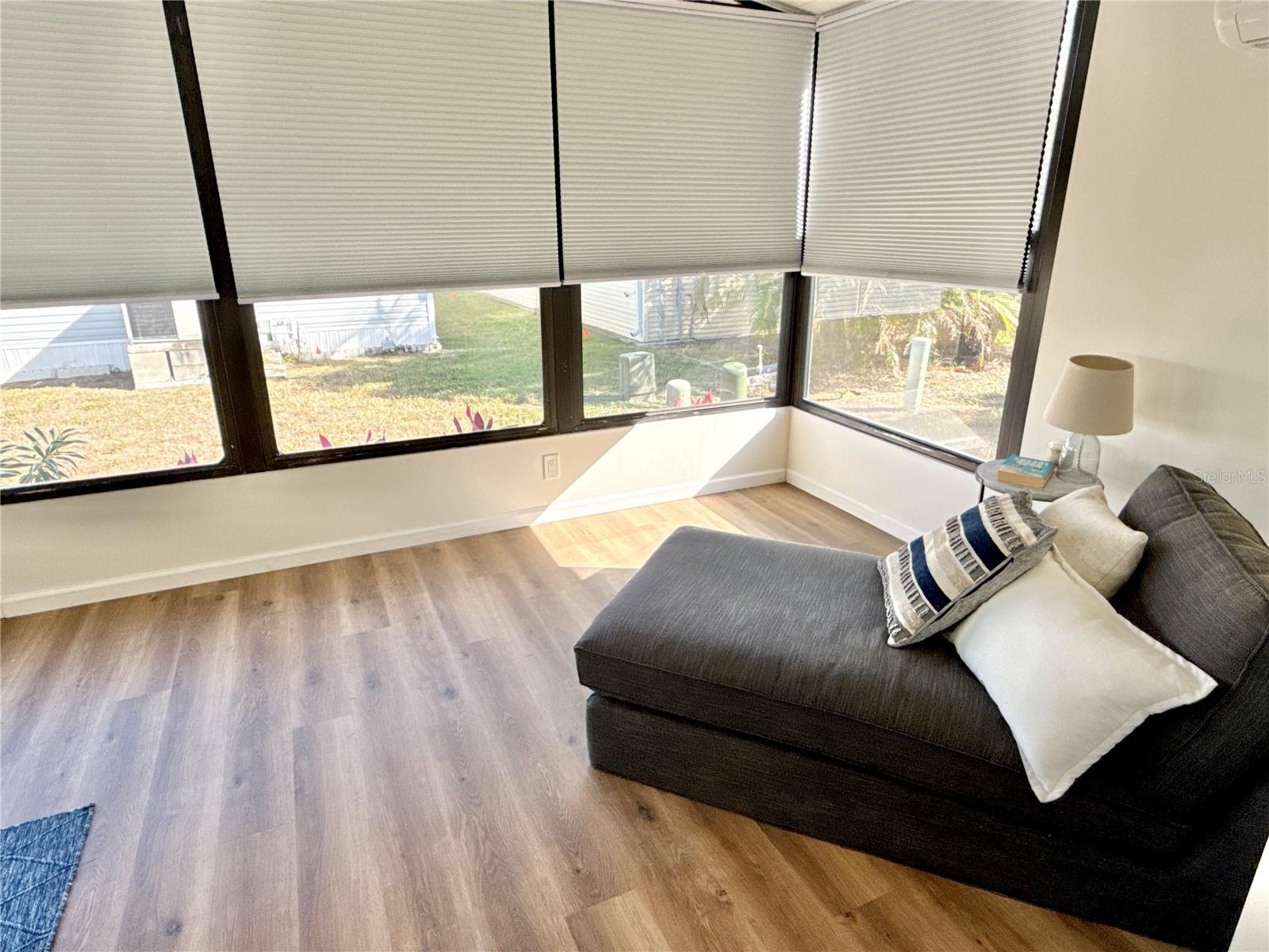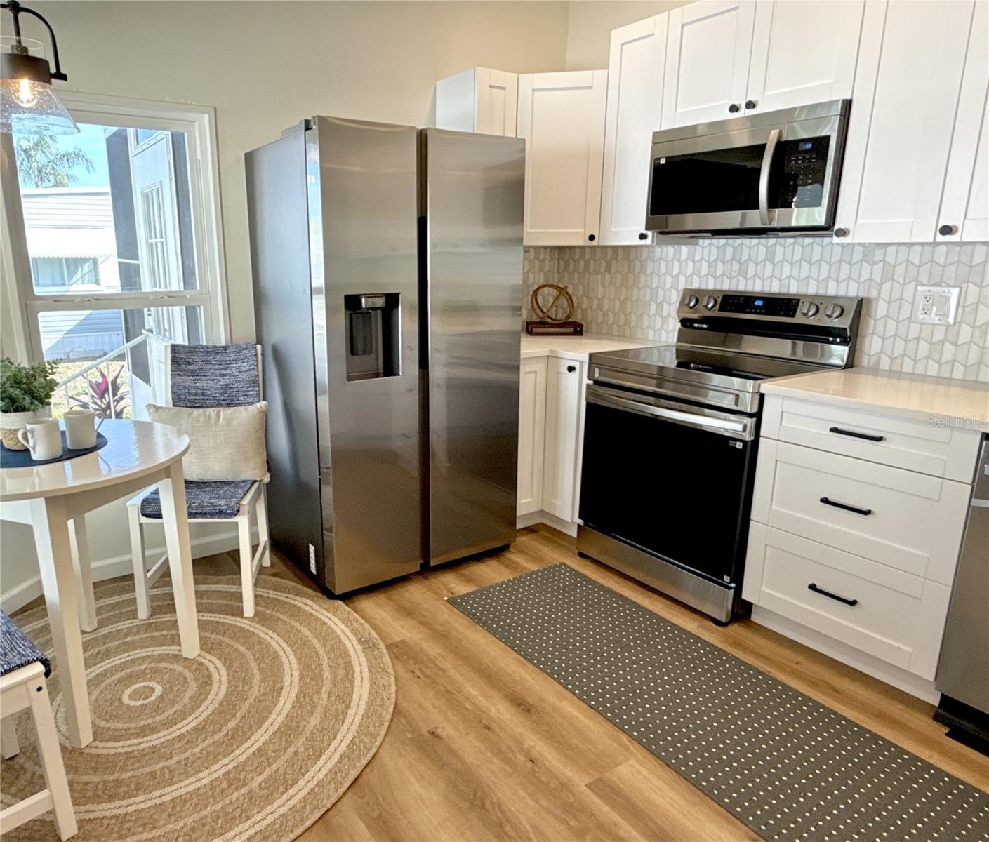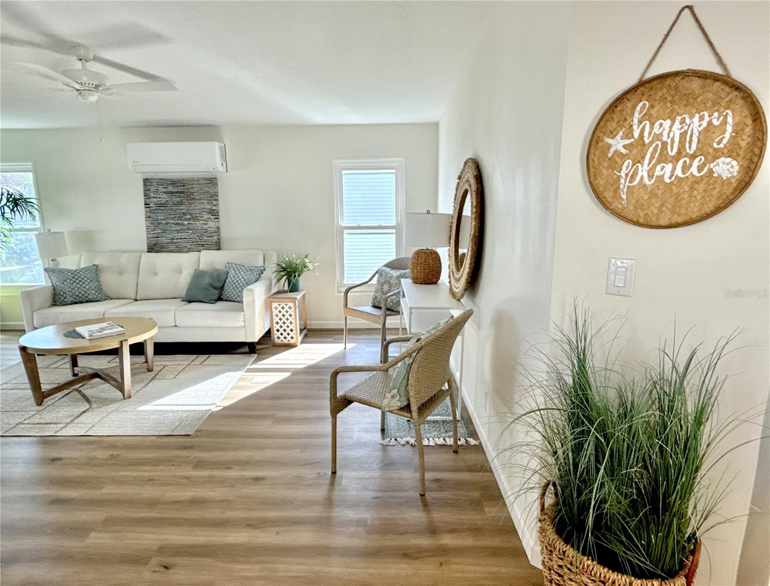 Total transformation! With 1, 340 sq. ft. of living space, this 2 bed/2 bath 1989 home has been expertly remodeled into a stunning home that you would be proud to own! Located on a large lot with long driveway for extra parking, the home features a beautiful large kitchen with room for breakfast table with stainless appliances, quartz countertops and custom wood cabinets; primary bedroom suite has walk-in closet and large all new bathroom with double sinks, step in shower and closet; large guest bedroom has walk-in closet and new bathroom across the hall with walk-in shower and separate utility area with washer and dryer; separate dining area and large living space that opens into a 200 sq. ft enclosed Florida room for additional enjoyment. This home does not disappoint! Important 2025 highlights: Five 20 seer rated high-efficiency mini splits throughout keeps the home efficiently cooled/heated; luxury vinyl waterproof flooring throughout--no carpet; drywall throughout with decorator paint in neutral colors; new 2025 windows in kitchen and newer windows throughout home have been inspected and revived to ensure easy opening; vapor barrier under home to protect the subflooring; new plumbing and electrical replaced in kitchen and bathrooms. Home has shingled roof that has been inspected. Fenced area is great when small grandchildren visit. Large utility shed with shelving for extra storage. Price includes share for the lot and ownership in the co-op. Home is located in popular Americana Cove, a 55 and older community with lots of amenities and only 10 mins from downtown St Petersburg and 20 mins to two airports. Low monthly maintenance fee of $380 covers water/sewer, trash pick up, lawn mowing, 24 hr manned gate, private streets and all amenities including heated pool, clubhouse, fitness center, billiards, bocce and so much more! This home does not disappoint!