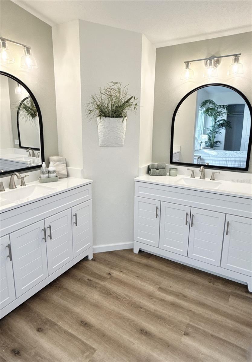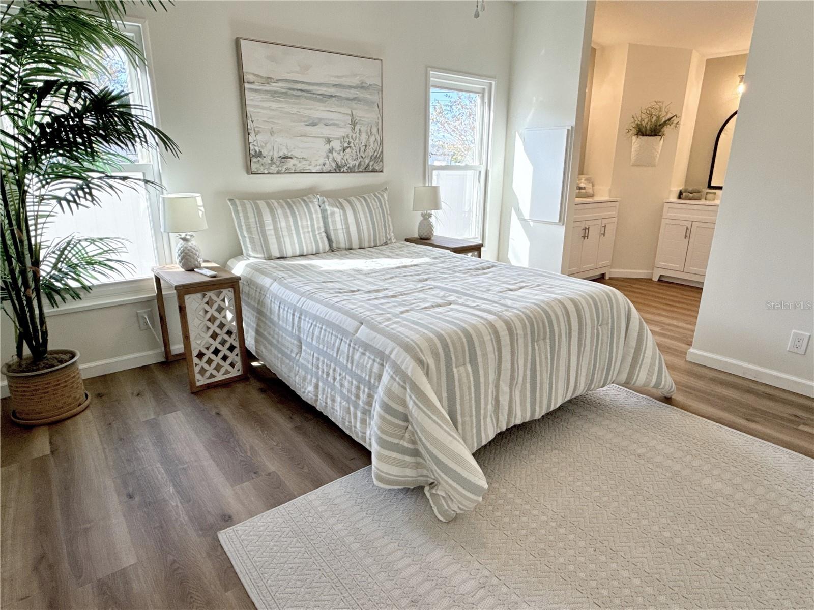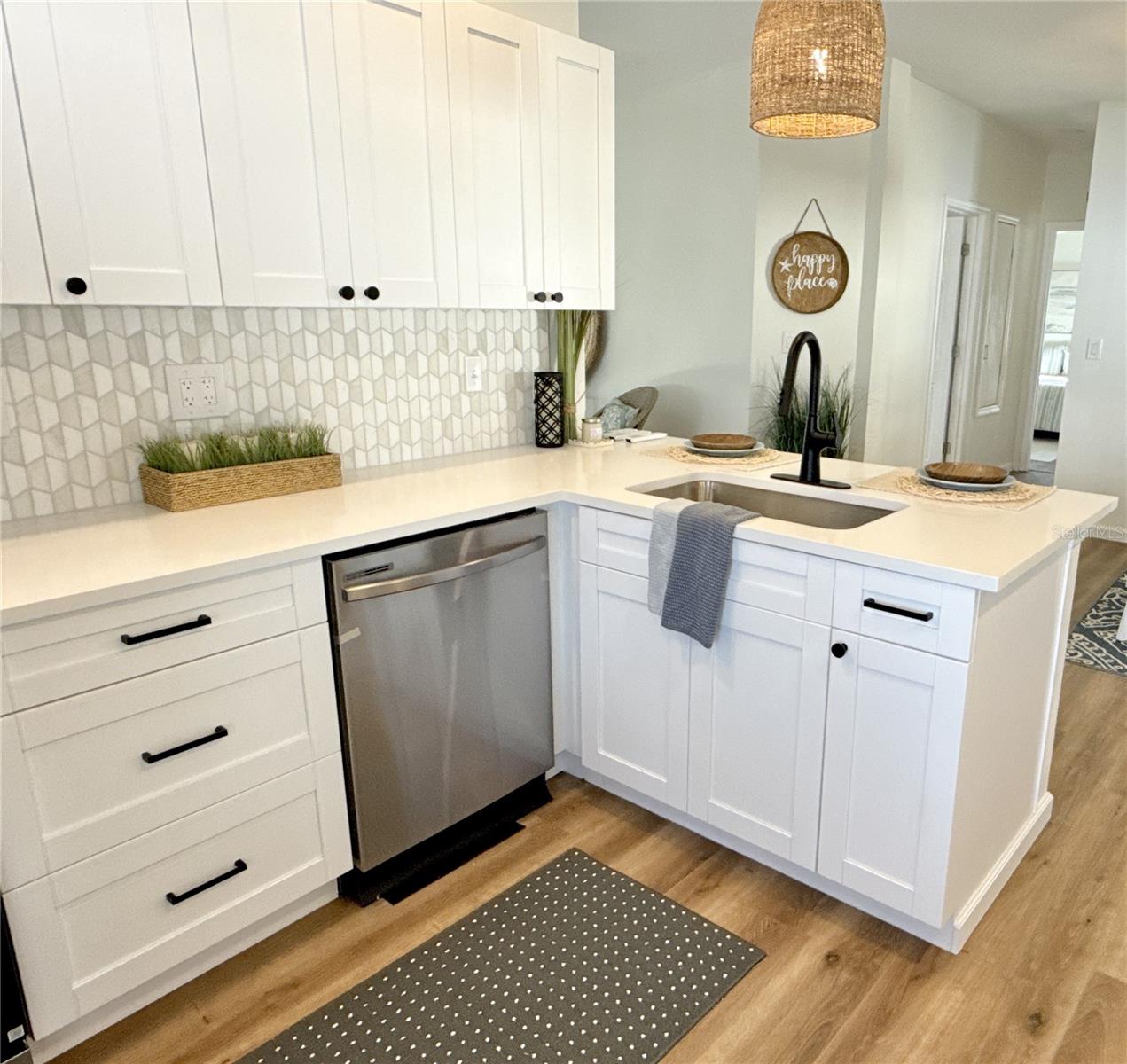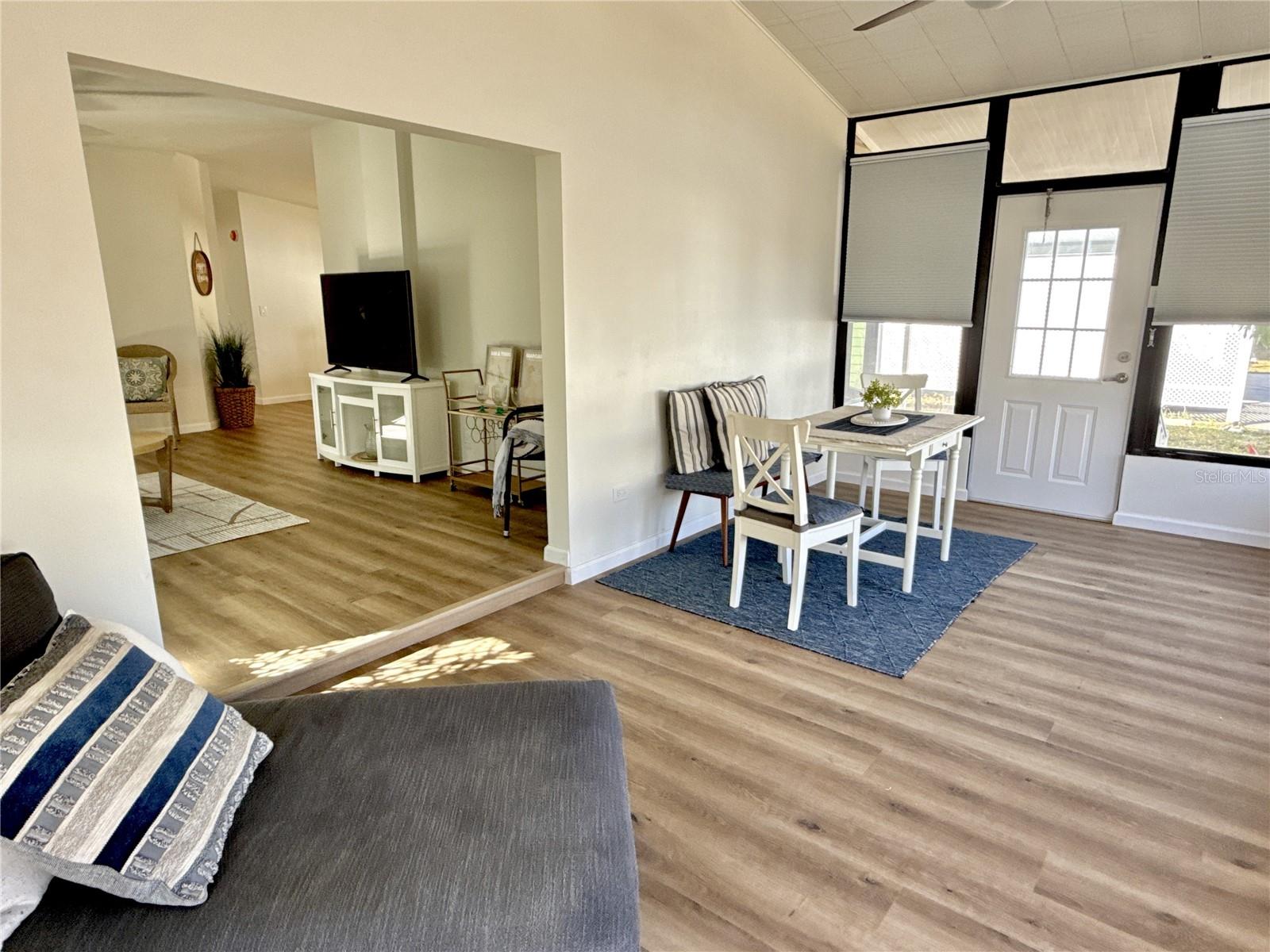 Total transformation! With 1, 340 sq. ft. of living space, this 2 bed/2 bath 1989 home has been expertly remodeled into a stunning home that you would be proud to own! Located on a large lot with long driveway for extra parking, the home features a beautiful large kitchen with room for breakfast table with stainless appliances, quartz countertops and custom wood cabinets; primary bedroom suite has walk-in closet and large all new bathroom with double sinks, step in shower and closet; large guest bedroom has walk-in closet and new bathroom across the hall with walk-in shower and separate utility area with washer and dryer; separate dining area and large living space that opens into a 200 sq. ft enclosed Florida room for additional enjoyment. This home does not disappoint! Important 2025 highlights: Five 20 seer rated high-efficiency mini splits throughout keeps the home efficiently cooled/heated; luxury vinyl waterproof flooring throughout--no carpet; drywall throughout with decorator paint in neutral colors; new 2025 windows in kitchen and newer windows throughout home have been inspected and revived to ensure easy opening; vapor barrier under home to protect the subflooring; new plumbing and electrical replaced in kitchen and bathrooms. Home has shingled roof that has been inspected. Fenced area is great when small grandchildren visit. Large utility shed with shelving for extra storage. Price includes share for the lot and ownership in the co-op. Home is located in popular Americana Cove, a 55 and older community with lots of amenities and only 10 mins from downtown St Petersburg and 20 mins to two airports. Low monthly maintenance fee of $380 covers water/sewer, trash pick up, lawn mowing, 24 hr manned gate, private streets and all amenities including heated pool, clubhouse, fitness center, billiards, bocce and so much more! This home does not disappoint!