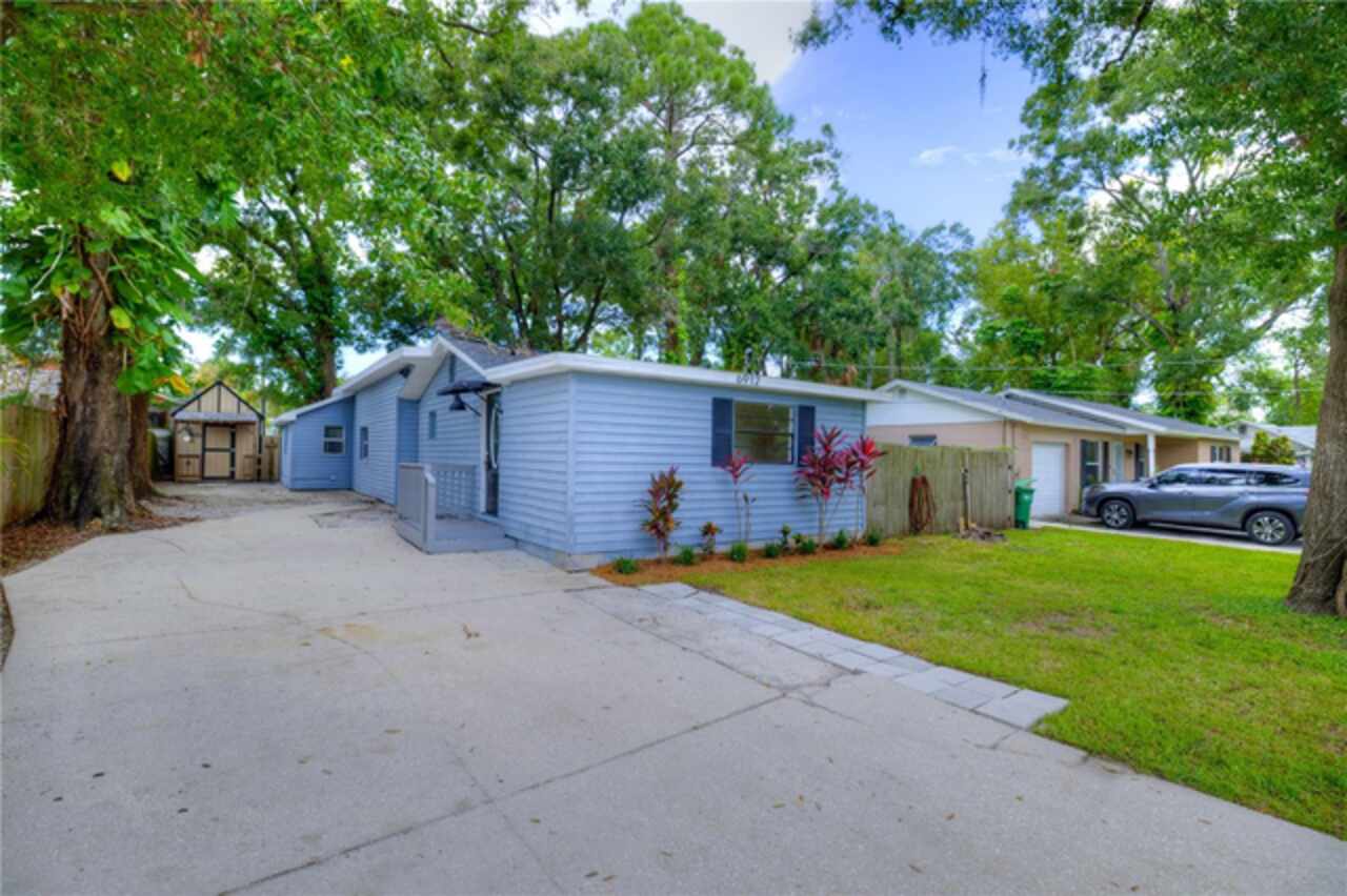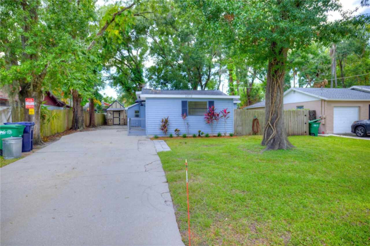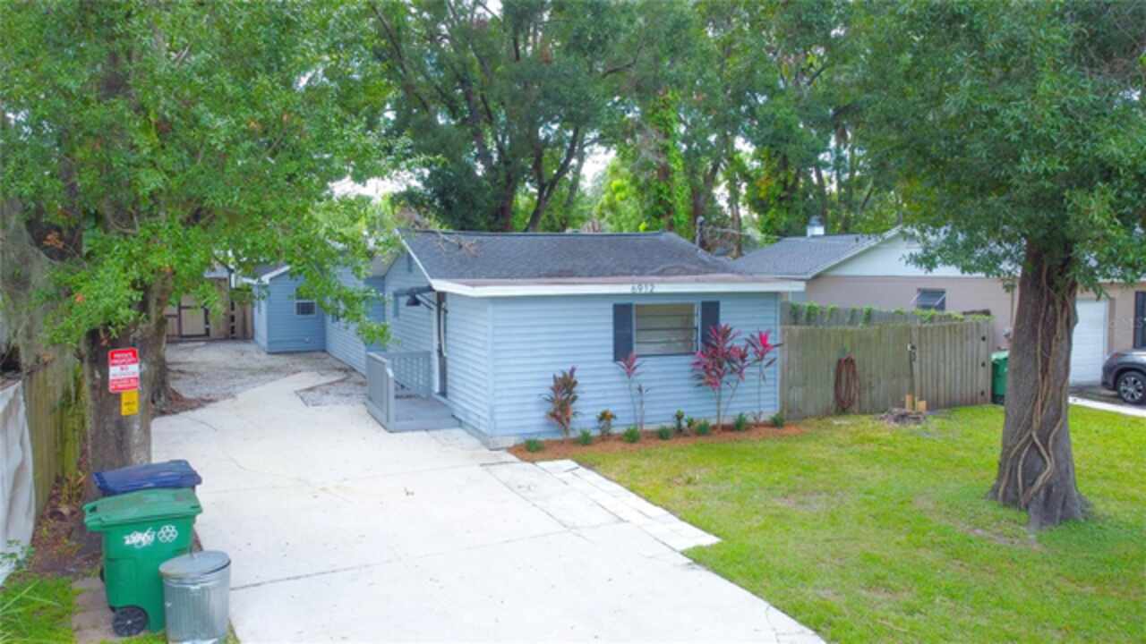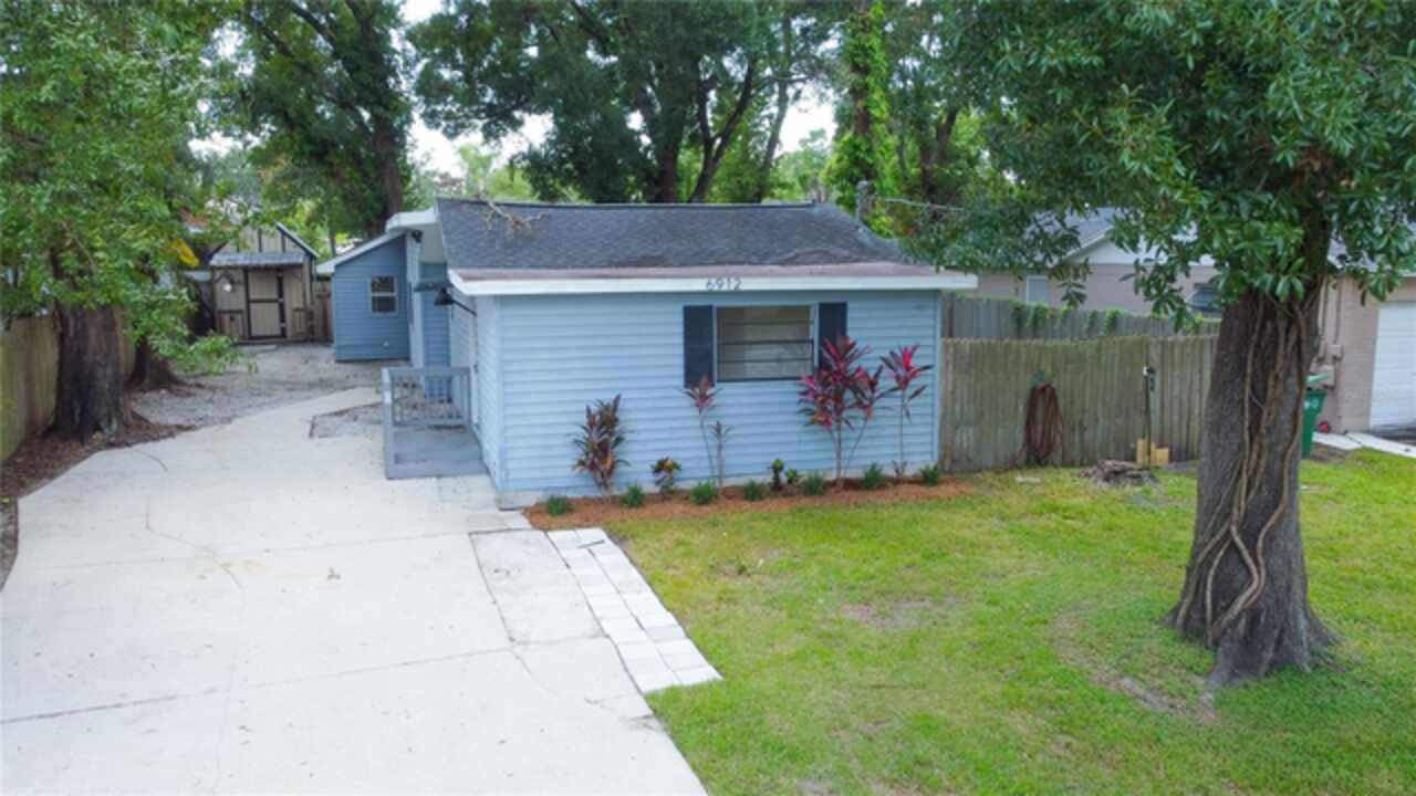 This cozy 3 Bed 2 bath house is tucked away in the Lowry Park (zoo) area just north of Seminole Heights. A deep lot with mature lush shade trees, private driveway, and front and back yards. Upgraded where it matters, the home has a modern kitchen with granite counters, modern appliances and fixtures. The bathrooms are similarly upgraded with granite vanities, tile and upgraded fixtures. Laminate wood plank style flooring in the main living areas, with carpet in the bedrooms. Tub/shower combo in the guest bath and stall shower with glass partition in the master. The master also has a back door for direct back deck and yard access. Off the living room and master, there are large stacked front load washing machines in a utility closet. 2019 roof. The long driveway has ample parking and there's a back deck large back yard for outside enjoyment, and shed for optional storage. This neighborhood is minutes away from and convenient to downtown, healthcare facilities including St. Joseph Main, Armature Works, Riverwalk, Seminole Heights dining and I-275. Ready to move in, as-is sale.