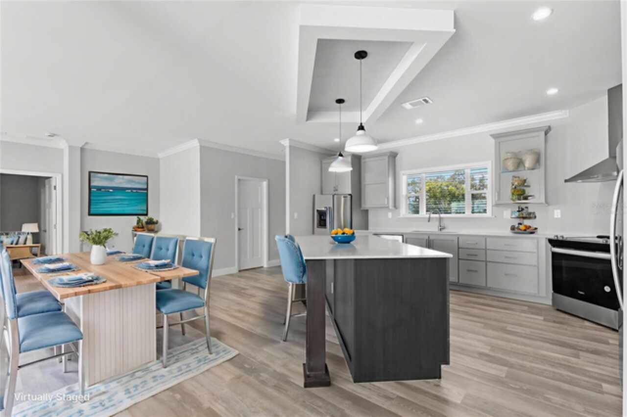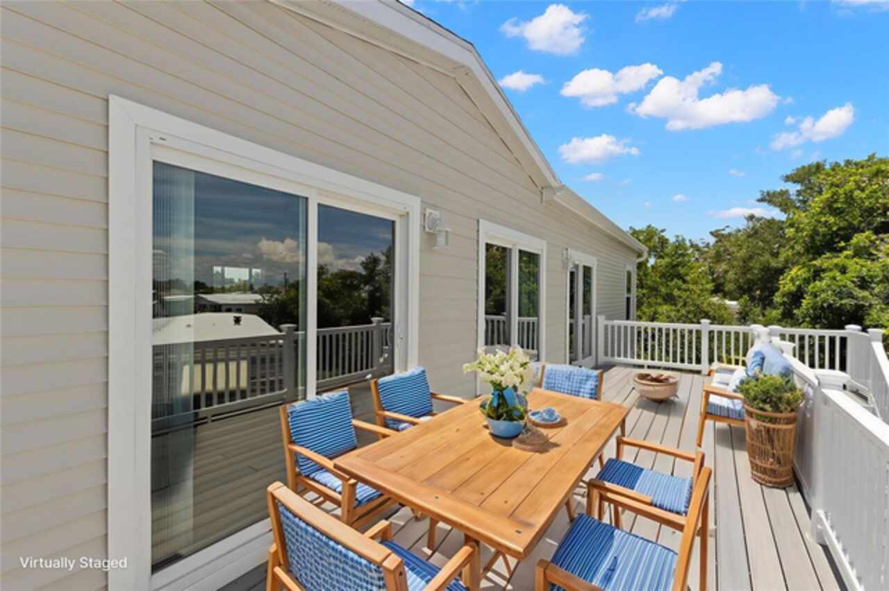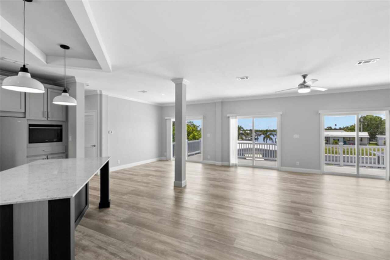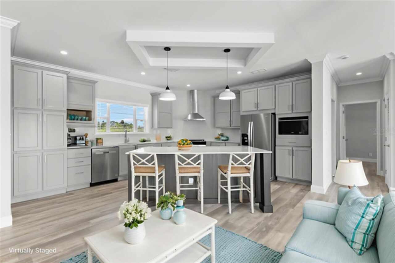 One or more photo(s) has been virtually staged. High and dry! New construction! Priced below appraised value! Financing available! For the discerning buyer who appreciates a quality-built new construction home, this 3 bed/2 bath 1, 800 sq ft move-in ready modular home was built by Cavco/Palm Harbor Homes. EXTERIOR FEATURES: Built to the Florida Building codes and placed on a permanent foundation, the home is a custom Palm Harbor Kennedy II model that is built to withstand 150 mph winds. The elevated concrete permanent foundation is substantial with concrete block and rebar reinforced columns creating 1, 800 sq ft of space under the home that can be customized to include a garage, shed, or screened lanai. Sitting 10 feet high, the home includes a stainless steel electric storage lift in addition to a staircase and large porch made of composite deck board. INTERIOR FEATURES: With more than $50, 000 of interior builder upgrades, the features are many: spacious 9 ft flat ceilings throughout with beautiful 5" baseboard and crown molding; luxury vinyl plank waterproof flooring throughout, and a chef's kitchen with stainless appliances, large kitchen island with storage and 42" wood shaker style cabinets with beautiful quartz countertops allows for lots of storage and room to entertain. The primary bedroom is spacious and includes a large walk-in closet, and ensuite bath with double sinks and quartz countertops, lighted mirrors, large shower with multiple shower heads, beautiful soaking tub and comfort height toilet in private room. Guest bath features tub/shower combination, sink with lighted mirror and comfort height toilet. Large utility room with washer and dryer hook-up. 50 gallon water heater and energy efficient Comfort Maker central air/heat. The home is built to Wind Zone III standards-the toughest in the state-and features a 3/12 roof pitch with modular rafters, 2 x 10" floor joist 16" on center, 2 x 6" sidewalls with drywall and R38 insulation in ceiling and floor and R19 insulation in exterior walls. Low-E insulated windows with horizon windows for extra light and three sliding glass doors to porch brings the outdoors in. OUTDOORS: Maintenance free composite staircase with vinyl railings and a 250 sq ft. porch to enjoy the water views is the ultimate escape. Beautiful palm tree landscaping, a Raintree irrigation system and concrete driveway complete the outside package. BREAKDOWN OF PRICE: Home with outdoor amenities including foundation, driveway, 1, 000 pd cargo lift, composite deck and stairs is $439, 000 plus $40, 000 share for the oversized lot and ownership in the co-op totals $479, 000. Home is located in Americana Cove, the county's premier factory-built 55+ housing community that is only 10 minutes from downtown St. Petersburg. THE COMMUNITY: The 55+ community has numerous amenities including clubhouse, heated pool, fitness center, billiards, two private boat ramps and kayak launch and fishing piers to enjoy the saltwater canals to Tampa Bay with no bridges. Low monthly maintenance fee of $380 includes heated pool, clubhouse, fitness center, 24 hr manned gate, private streets, seawall maintenance and all amenities. Tampa and St. Pete airports are only 15 mins away and Pinellas beaches are 25 mins. 4th Street shopping, dining and medical are mins away. If you're looking for that exceptional luxury new home at a great value, then don't miss this one! Financing available. Proof of funds or lender pre-approval with contract.