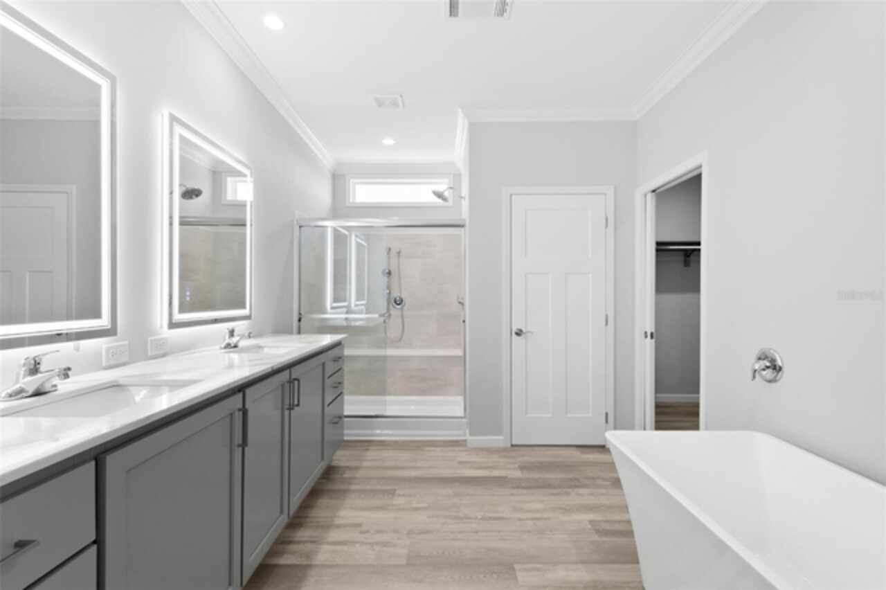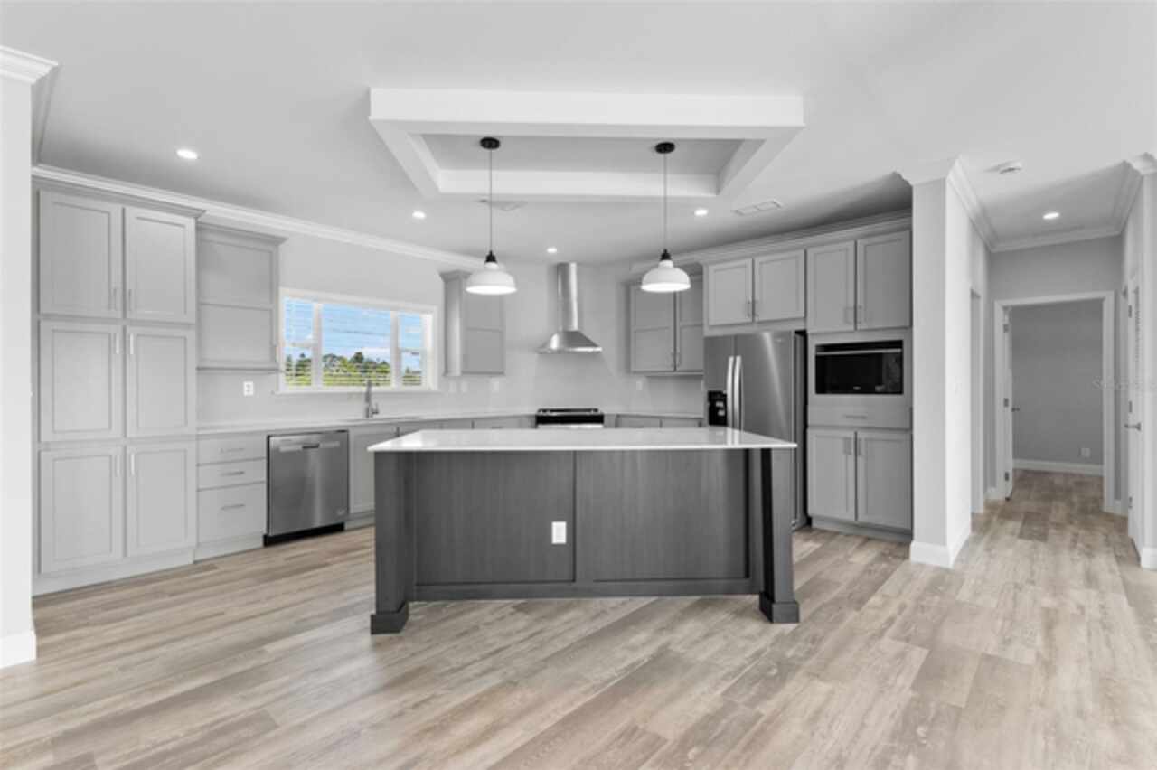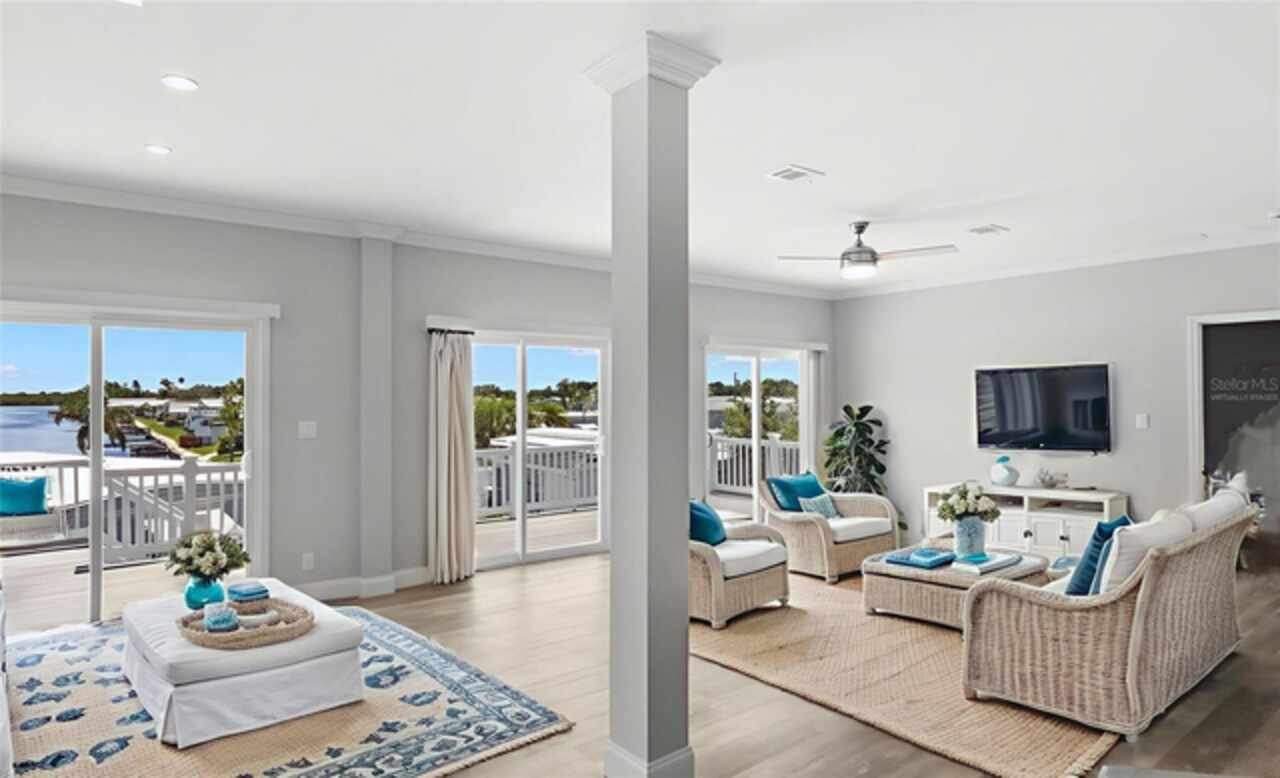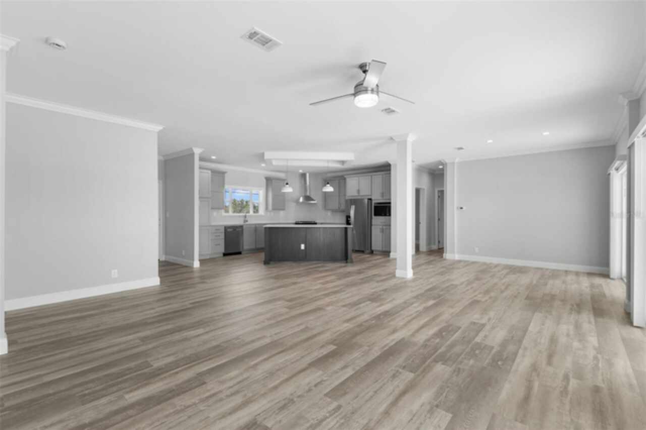 One or more photo(s) has been virtually staged. High and dry! New construction! Priced below appraised value! Financing available! For the discerning buyer who appreciates a quality-built new construction home, this 3 bed/2 bath 1, 800 sq ft move-in ready modular home was built by Cavco/Palm Harbor Homes. EXTERIOR FEATURES: Built to the Florida Building codes and placed on a permanent foundation, the home is a custom Palm Harbor Kennedy II model that is built to withstand 150 mph winds. The elevated concrete permanent foundation is substantial with concrete block and rebar reinforced columns creating 1, 800 sq ft of space under the home that can be customized to include a garage, shed, or screened lanai. Sitting 10 feet high, the home includes a stainless steel electric storage lift in addition to a staircase and large porch made of composite deck board. INTERIOR FEATURES: With more than $50, 000 of interior builder upgrades, the features are many: spacious 9 ft flat ceilings throughout with beautiful 5" baseboard and crown molding; luxury vinyl plank waterproof flooring throughout, and a chef's kitchen with stainless appliances, large kitchen island with storage and 42" wood shaker style cabinets with beautiful quartz countertops allows for lots of storage and room to entertain. The primary bedroom is spacious and includes a large walk-in closet, and ensuite bath with double sinks and quartz countertops, lighted mirrors, large shower with multiple shower heads, beautiful soaking tub and comfort height toilet in private room. Guest bath features tub/shower combination, sink with lighted mirror and comfort height toilet. Large utility room with washer and dryer hook-up. 50 gallon water heater and energy efficient Comfort Maker central air/heat. The home is built to Wind Zone III standards-the toughest in the state-and features a 3/12 roof pitch with modular rafters, 2 x 10" floor joist 16" on center, 2 x 6" sidewalls with drywall and R38 insulation in ceiling and floor and R19 insulation in exterior walls. Low-E insulated windows with horizon windows for extra light and three sliding glass doors to porch brings the outdoors in. OUTDOORS: Maintenance free composite staircase with vinyl railings and a 250 sq ft. porch to enjoy the water views is the ultimate escape. Beautiful palm tree landscaping, a Raintree irrigation system and concrete driveway complete the outside package. BREAKDOWN OF PRICE: Home with outdoor amenities including foundation, driveway, 1, 000 pd cargo lift, composite deck and stairs is $439, 000 plus $40, 000 share for the oversized lot and ownership in the co-op totals $479, 000. Home is located in Americana Cove, the county's premier factory-built 55+ housing community that is only 10 minutes from downtown St. Petersburg. THE COMMUNITY: The 55+ community has numerous amenities including clubhouse, heated pool, fitness center, billiards, two private boat ramps and kayak launch and fishing piers to enjoy the saltwater canals to Tampa Bay with no bridges. Low monthly maintenance fee of $380 includes heated pool, clubhouse, fitness center, 24 hr manned gate, private streets, seawall maintenance and all amenities. Tampa and St. Pete airports are only 15 mins away and Pinellas beaches are 25 mins. 4th Street shopping, dining and medical are mins away. If you're looking for that exceptional luxury new home at a great value, then don't miss this one! Financing available. Proof of funds or lender pre-approval with contract.