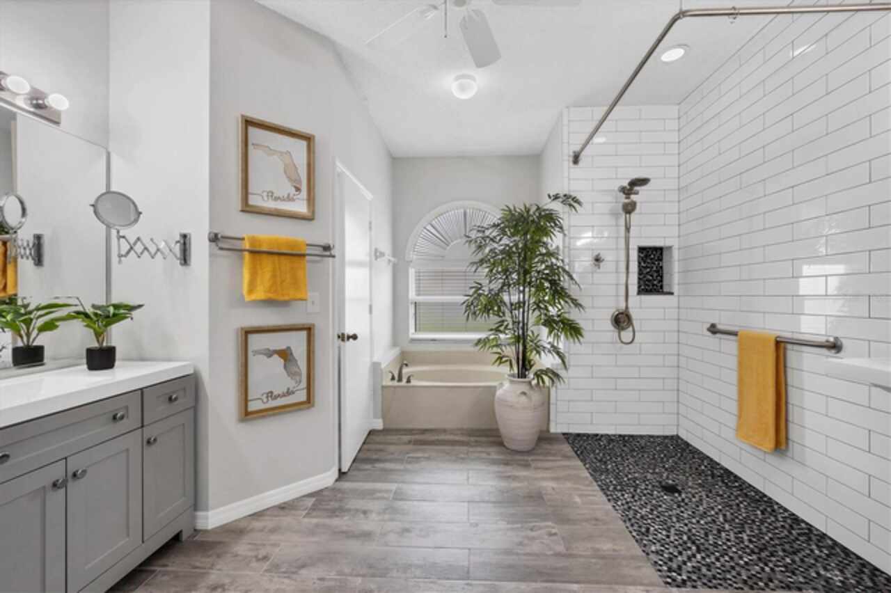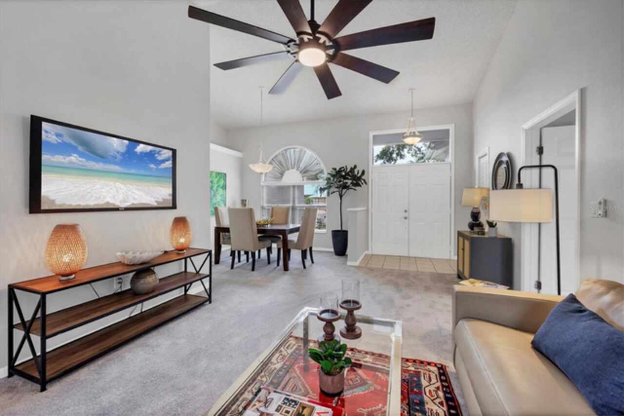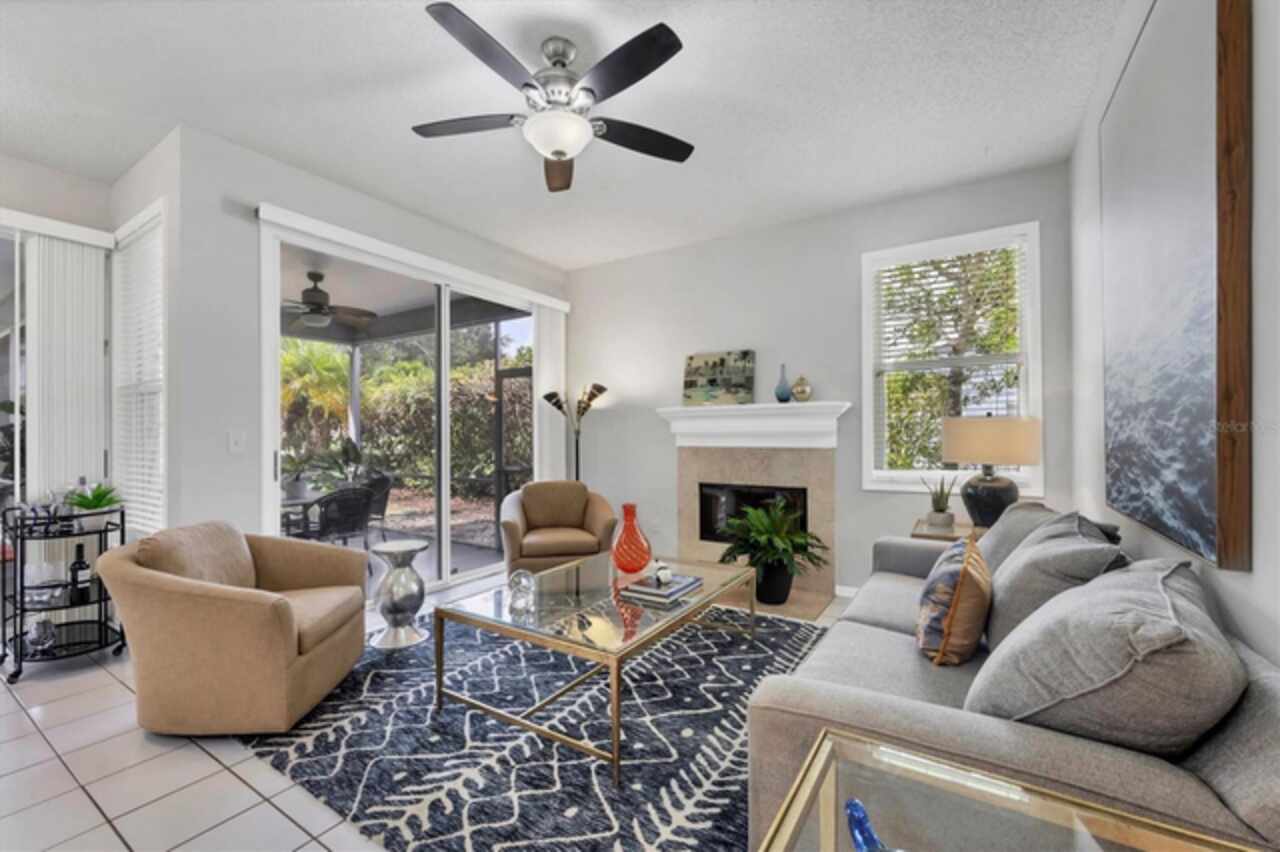 GREAT PRICE IN MOTE RANCH located in Palm Aire a beautiful membership optional Golf/Tennis/Social country club community and the golf course was just renovated. This 3-bedroom (Split Plan), 2-bathroom home has 1700 square feet, a two car garage With a very long driveway that can accommodate up to 6 cars with ease and located on an oversized 1/4 acre lot. Updates include Fresh paint inside and outside, New suite of LG appliances, Updated primary bathroom suite complete with a water closet, a garden tub, roll-in shower, two vanities and 2 walk-in closets, Updated ceiling fans, HVAC is only 4 years old, the tile roof is only 12 years old PLUS this home has the "Third nail for low insurance rates". This home has many ADA compliant features. Double doors and high ceiling greet you as you enter the formal living and dining rooms. You will love the family room with a cozy fireplace and the kitchen with a breakfast bar plus an indoor laundry room with newer washer & dryer and a wash tub. Three sets of 8' sliders to a unique screened lanai, Low HOA fees include access to landscaped common areas, an Olympic-size pool, a clubhouse, a playground, and a fishing dock and kayak launch on the Braden River. The home sits on a large lot with a long driveway; the back yard is not very large but the side yard next to the lanai is very very large with shade trees. Located near UTC Mall, downtown Sarasota, and world-famous beaches like Siesta Key, Lido Key, plus St. Armand's Circle. This home is a great value in a community of higher priced homes! Priced at $427500.