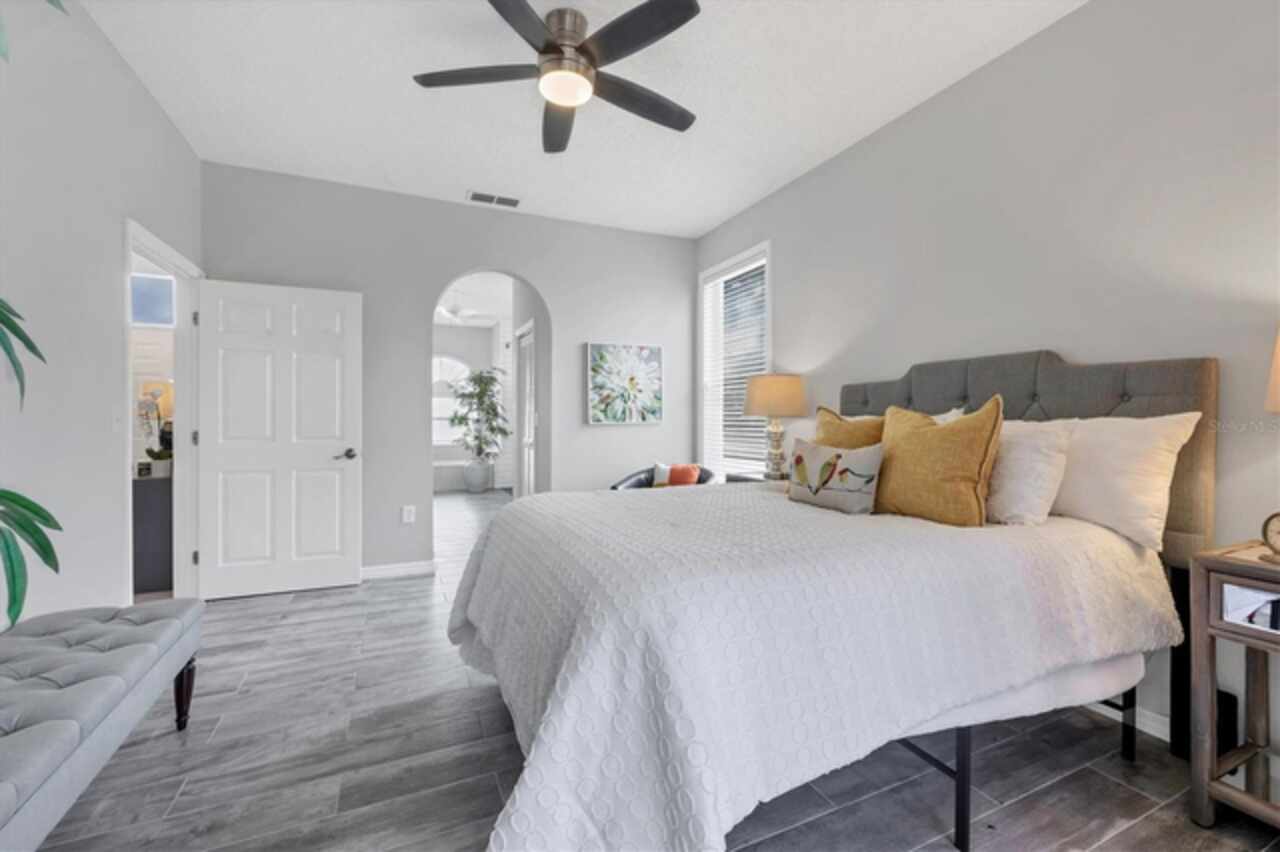Ceiling Fans(s), Eat-in Kitchen, High Ceilings, Kitchen/Family Room Combo, Primary Bedroom Main Floor, Split Bedroom, Thermostat, Walk-In Closet(s)