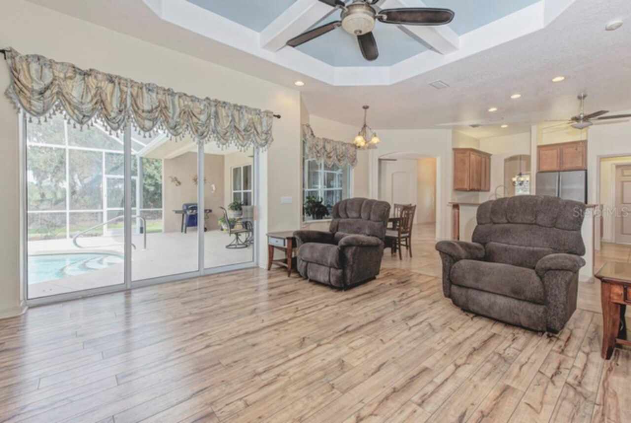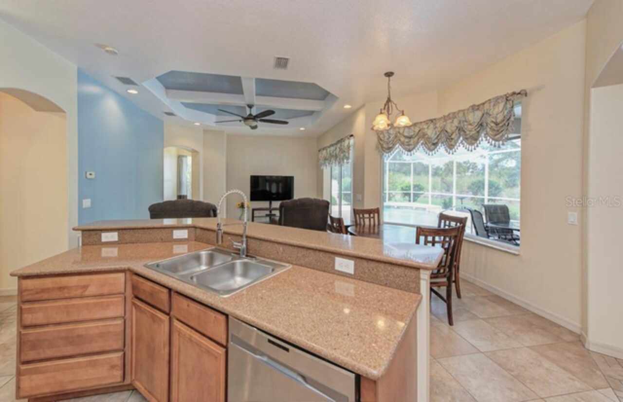 Ceiling Fans(s), Eat-in Kitchen, High Ceilings, Kitchen/Family Room Combo, Open Floorplan, Solid Surface Counters, Split Bedroom, Thermostat, Tray Ceiling(s)