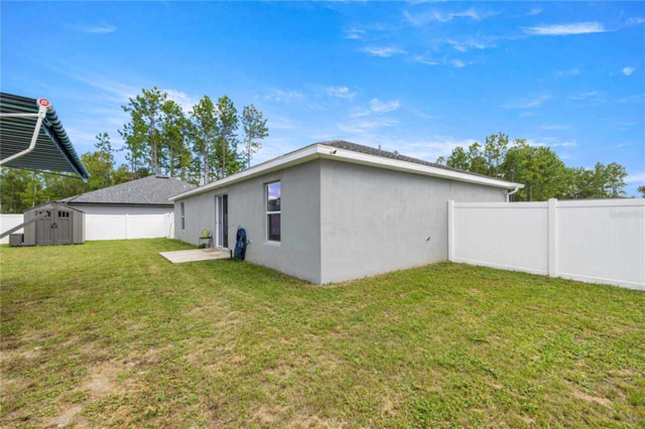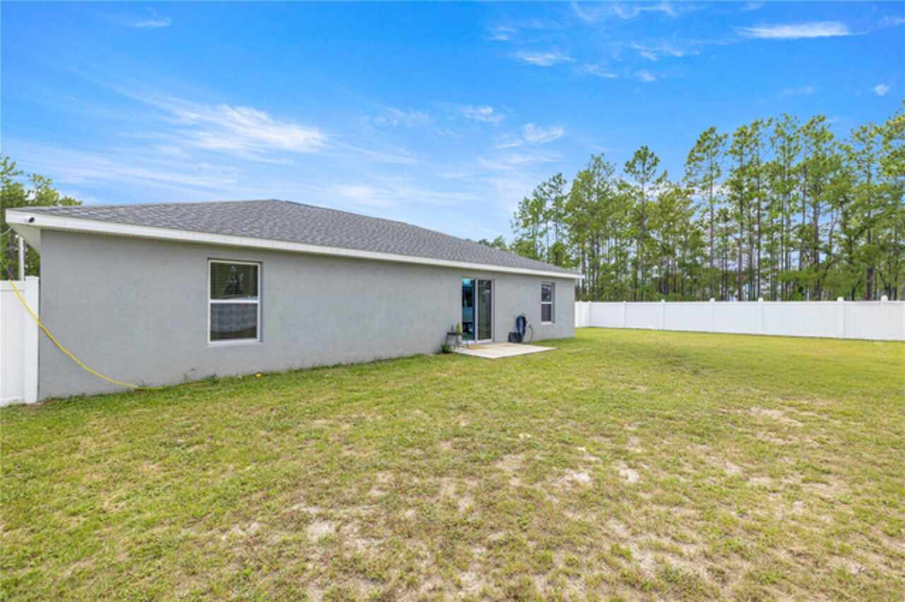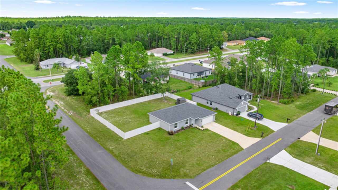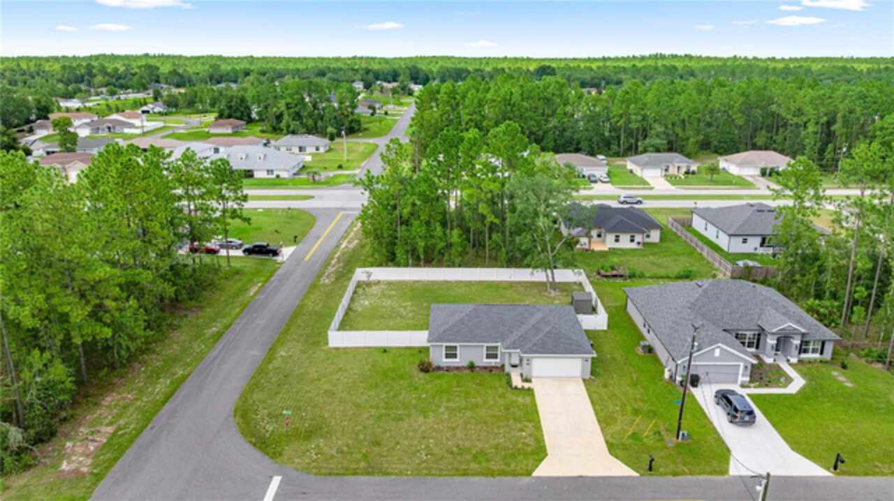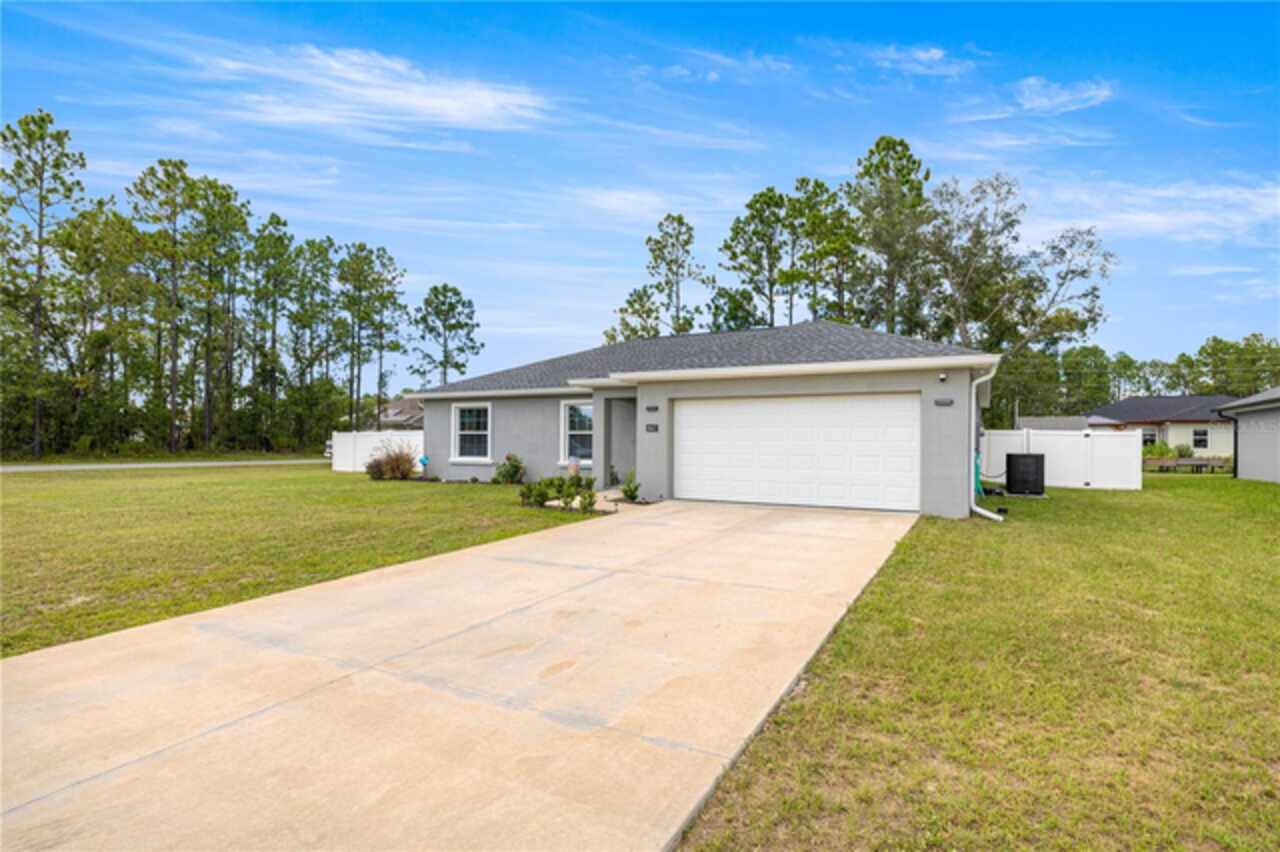Beautiful 2024 Concrete Block Stucco Home! Welcome to this stunning 3-bedroom, 2-bath, 2-car garage home situated on a spacious .29-acre corner lot with a beautifully fenced backyard with an 8X8 storage shed. Built in 2024, this home offers a desirable split floor plan and modern upgrades throughout. Step inside to find granite countertops, real wood cabinetry, stainless steel appliances, and luxury vinyl plank flooring in every room. Thoughtful touches such as ceiling fans and upgraded light fixtures add comfort and style. Located with easy access to I-75, State Road 200, and Highway 484, you’ll be just minutes from shopping, dining, and medical facilities. The community enhances your lifestyle with wonderful amenities including a community center, library, splash pad, basketball courts, and more perfect for both relaxation and recreation. This home combines modern construction, elegant finishes, and an unbeatable location. Don’t miss your chance to make it yours!