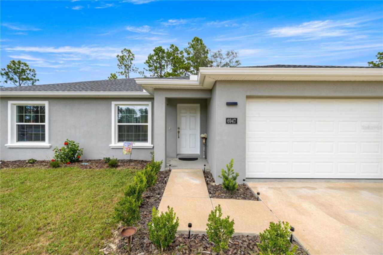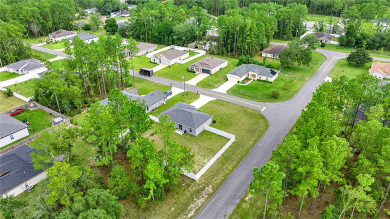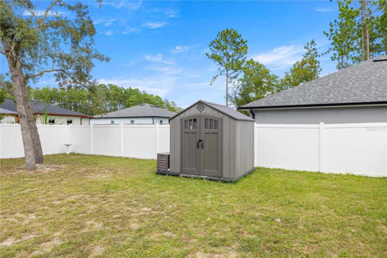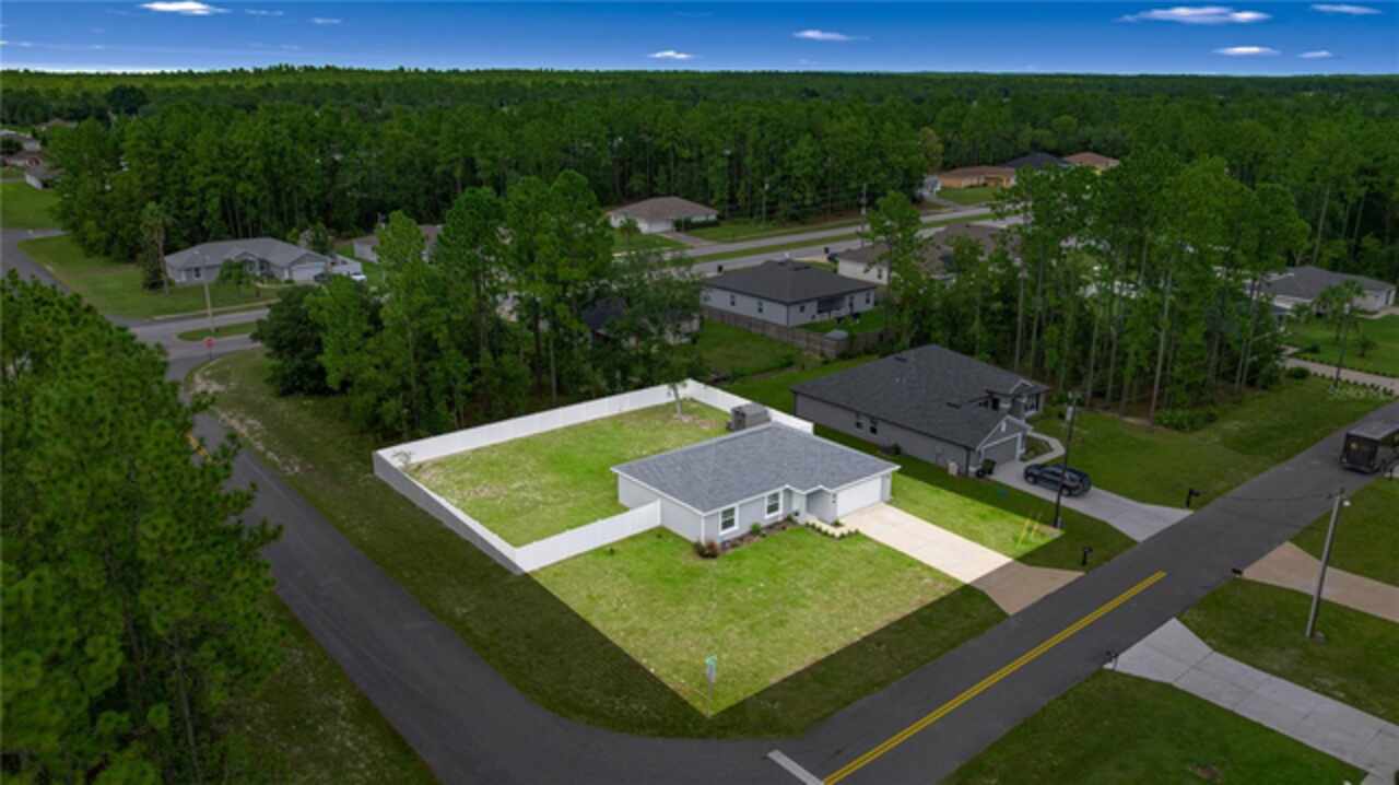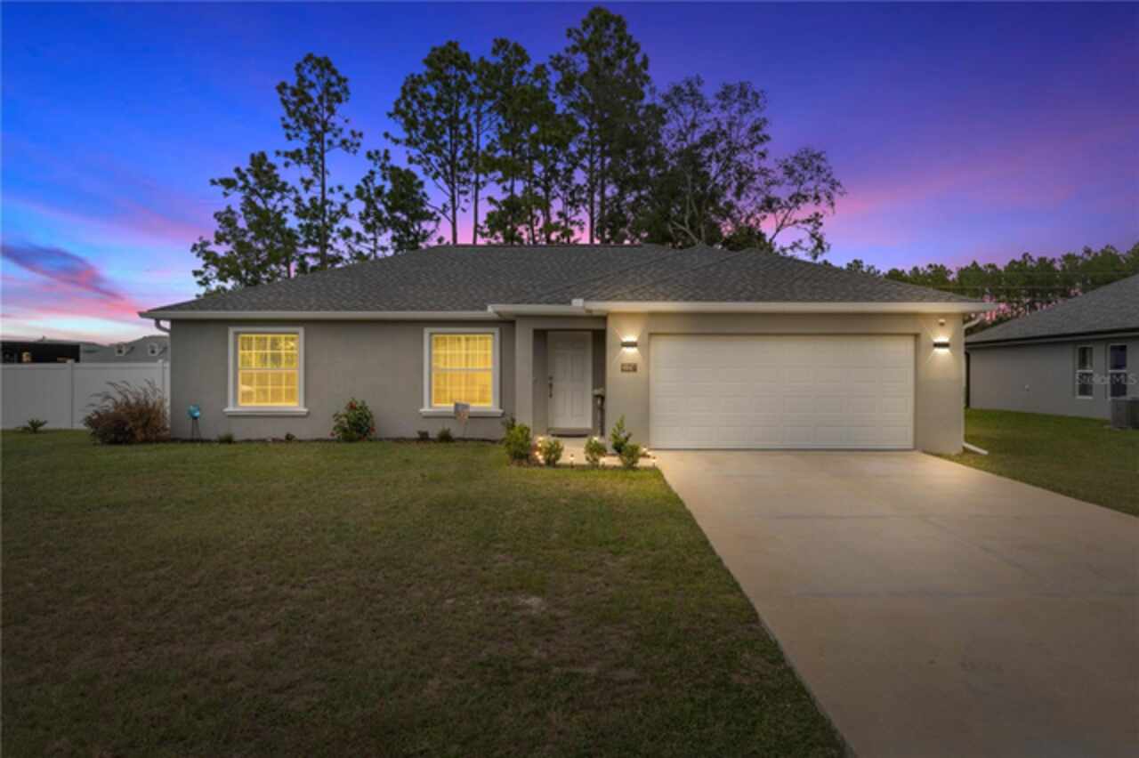 Beautiful 2024 Concrete Block Stucco Home! Welcome to this stunning 3-bedroom, 2-bath, 2-car garage home situated on a spacious .29-acre corner lot with a beautifully fenced backyard with an 8X8 storage shed. Built in 2024, this home offers a desirable split floor plan and modern upgrades throughout. Step inside to find granite countertops, real wood cabinetry, stainless steel appliances, and luxury vinyl plank flooring in every room. Thoughtful touches such as ceiling fans and upgraded light fixtures add comfort and style. Located with easy access to I-75, State Road 200, and Highway 484, you’ll be just minutes from shopping, dining, and medical facilities. The community enhances your lifestyle with wonderful amenities including a community center, library, splash pad, basketball courts, and more perfect for both relaxation and recreation. This home combines modern construction, elegant finishes, and an unbeatable location. Don’t miss your chance to make it yours!