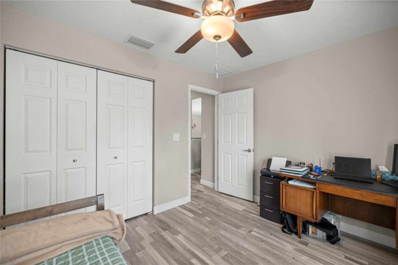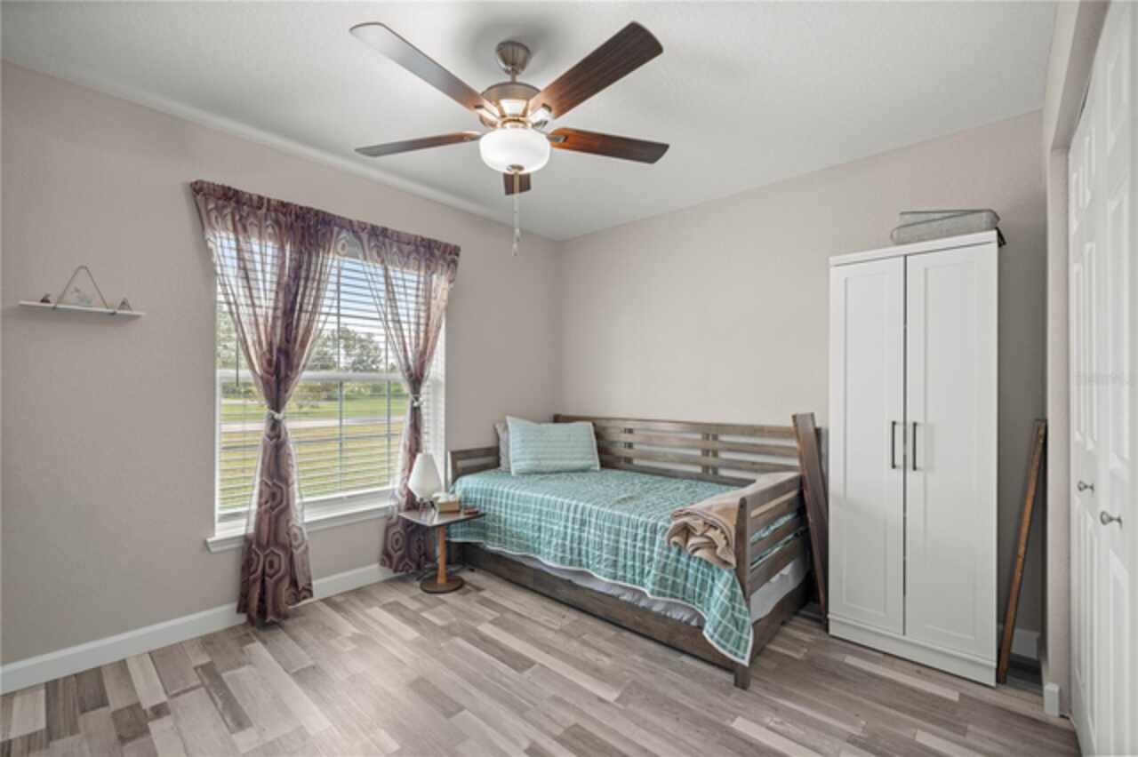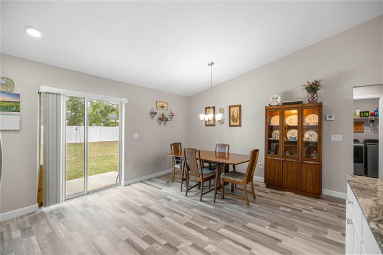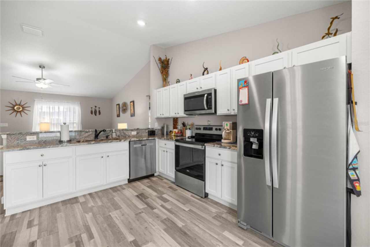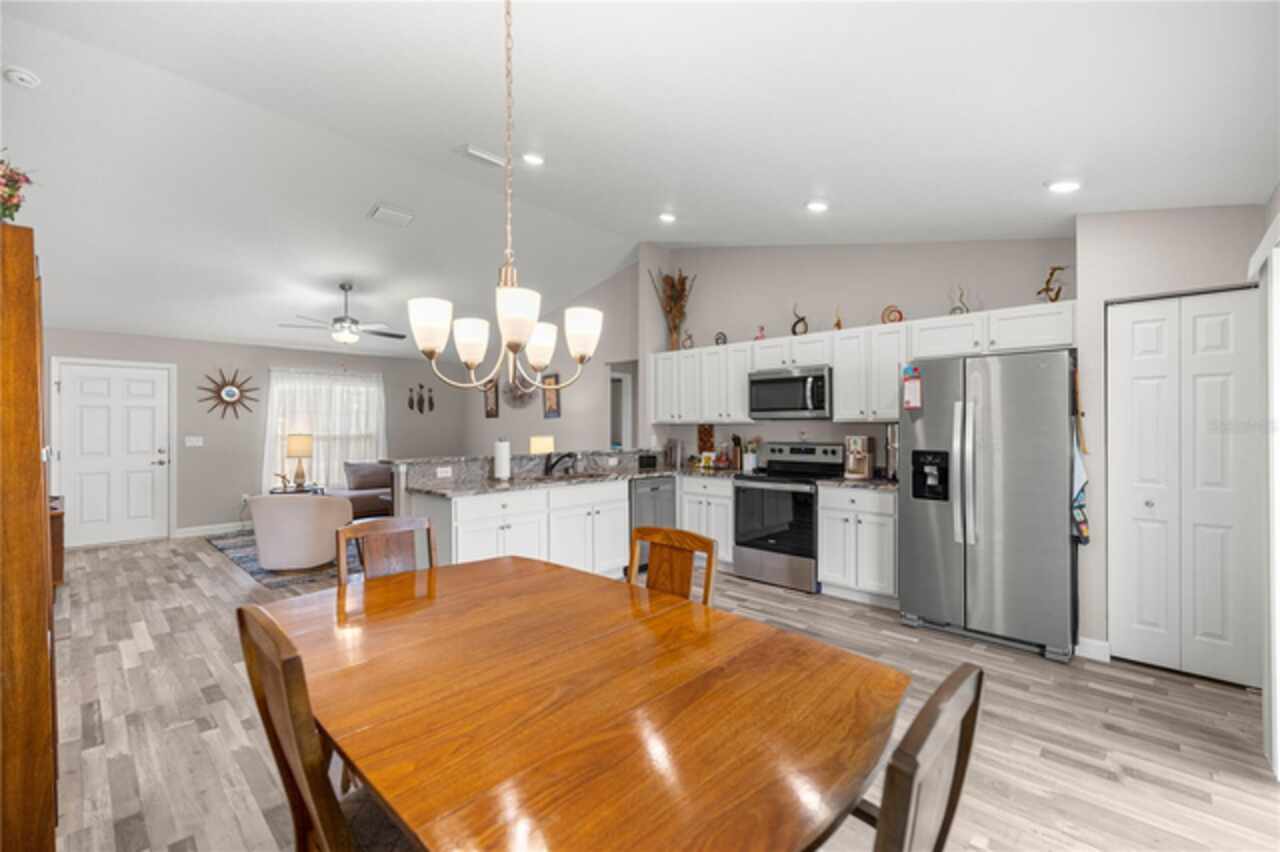 Beautiful 2024 Concrete Block Stucco Home! Welcome to this stunning 3-bedroom, 2-bath, 2-car garage home situated on a spacious .29-acre corner lot with a beautifully fenced backyard with an 8X8 storage shed. Built in 2024, this home offers a desirable split floor plan and modern upgrades throughout. Step inside to find granite countertops, real wood cabinetry, stainless steel appliances, and luxury vinyl plank flooring in every room. Thoughtful touches such as ceiling fans and upgraded light fixtures add comfort and style. Located with easy access to I-75, State Road 200, and Highway 484, you’ll be just minutes from shopping, dining, and medical facilities. The community enhances your lifestyle with wonderful amenities including a community center, library, splash pad, basketball courts, and more perfect for both relaxation and recreation. This home combines modern construction, elegant finishes, and an unbeatable location. Don’t miss your chance to make it yours!
