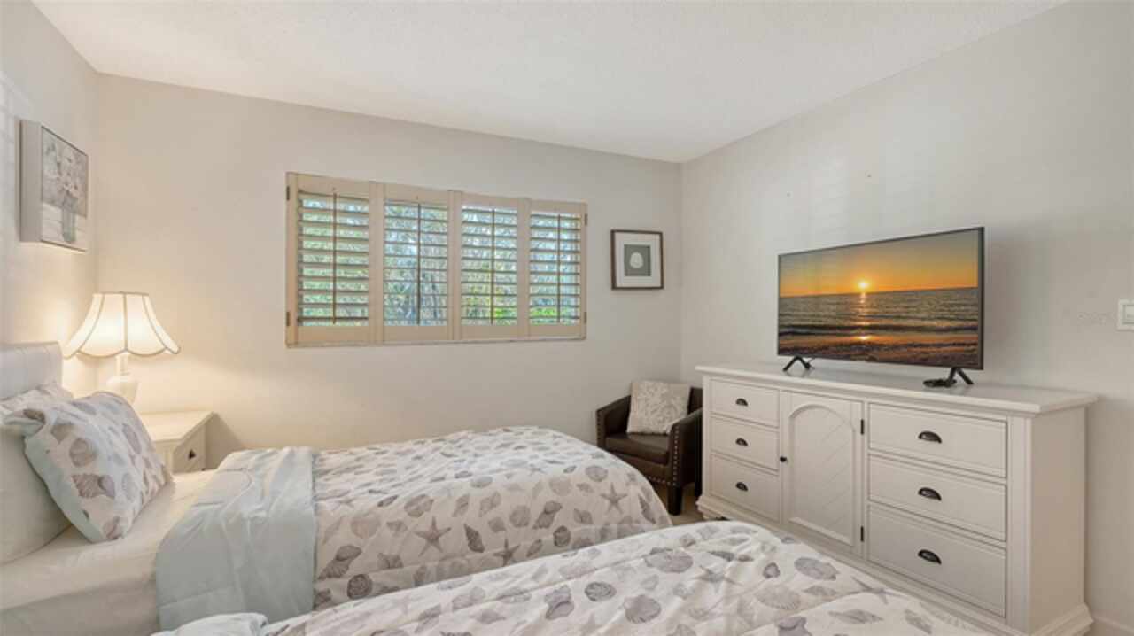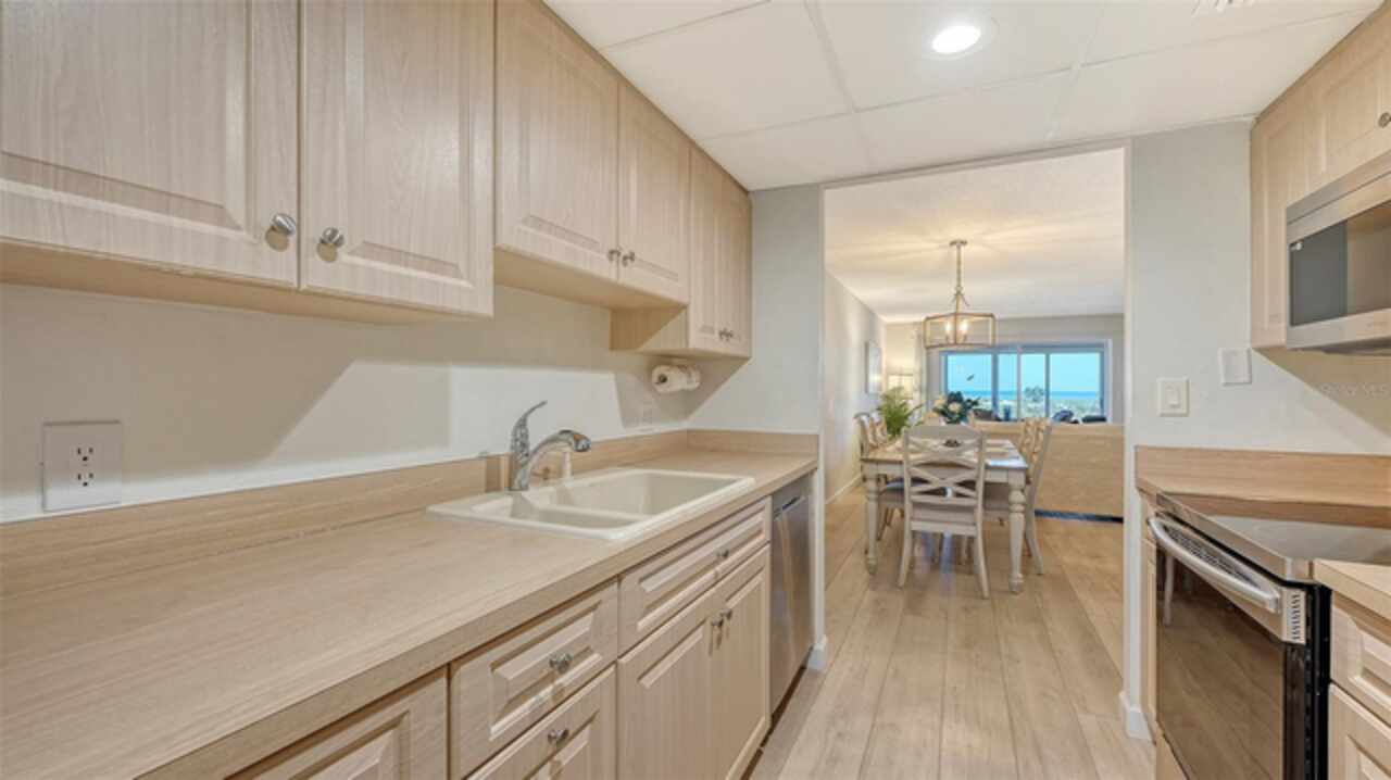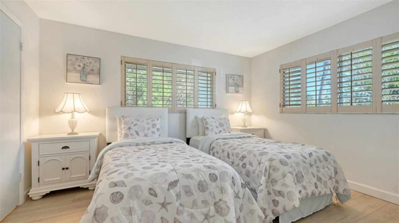 WOW! The minute you open the front door of this first floor Coastal Retreat Seaside condo, you will be captivated by the shimmering, turquoise Gulf of Mexico Water View and the Panoramic Sandy White Beach in front of you. You'll be eager to get a closer look from the glassed in Florida Room, so you may overlook the beauty of this updated, attractively furnished & decorated first floor residence at Sea Pines, a small 28 unit beach front condo complex on the north end of Longboat Key, Florida. Since purchasing five years ago, these owners have lovingly transformed this almost 1400 square foot, corner unit with extra windows, open concept, two bedroom with En Suite baths & walk in closets to today's coastal contemporary style tastes. Improvements include light oak color Luxury Vinyl wide plank flooring throughout, Samsung stainless steel appliances including washer & dryer, new HVAC installed, updated the primary bedroom with a quartz counter vanity, tiled & glass door shower, and fitted out closet. The condo's interior was painted as well & new, high quality neutral colored living room, dining & bedroom furniture, rugs, lighting & drapery, artwork and a large entertainment center installed. A new tiled roof was installed on this building in 2024. Additional features include impact resistant windows in both bedrooms & the office adjacent to the kitchen. Plantation shutters cover all these windows. This office area is fitted out with oak cabinetry, desk & drawers, perfect for working at home. The spacious 26-foot-long lanai (Florida Room) can be entered from either the primary bedroom or the living room via sliders. This may be your favorite room with mesmerizing Gulf & beach views over the sea grass pathways to the water. And of course, the magnificent Longboat Key Gulf of Mexico sunsets will thrill you whether watching from your lanai or enjoying on the beach while toasting your good fortune! This turnkey handsomely appointed & attractively furnished seaside retreat offers great rental income if you so wish. There is the potential of keeping on an existing three month (Jan., Feb. & March 2026) tenant. Currently these owners are using RVA Rentals, but a new owner can choose how or if to lease out this unit. Rental friendly Sea Pines can be leased out six times a year with a one month minimum time period. Two additional benefits to this first floor Unit 14 are that these owners have paid $5357 assessment for new landscaping for the complex plus new interior glass sliders will be installed in the living room & primary bedroom and sellers have paid for that as well. Sea Pines has an electronic gated entry for security & privacy. Amenities include a large, heated pool, is large pet friendly & offers excellent rental income possibilities. Charming Longboat Village is nearby with fabulous restaurants like The Shore, Mar Vista, Whitney's, Ventura's & the thriving Whitney Shopping Center. Anna Maria Island is just across the Longboat north end bridge for additional night life entertainment.