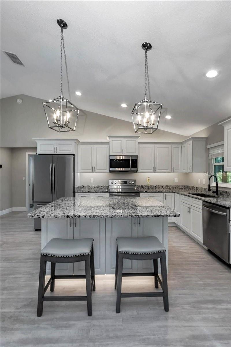 Ceiling Fans(s), Eat-in Kitchen, High Ceilings, Kitchen/Family Room Combo, Open Floorplan, Primary Bedroom Main Floor, Split Bedroom, Tray Ceiling(s), Vaulted Ceiling(s), Walk-In Closet(s), Window Treatments