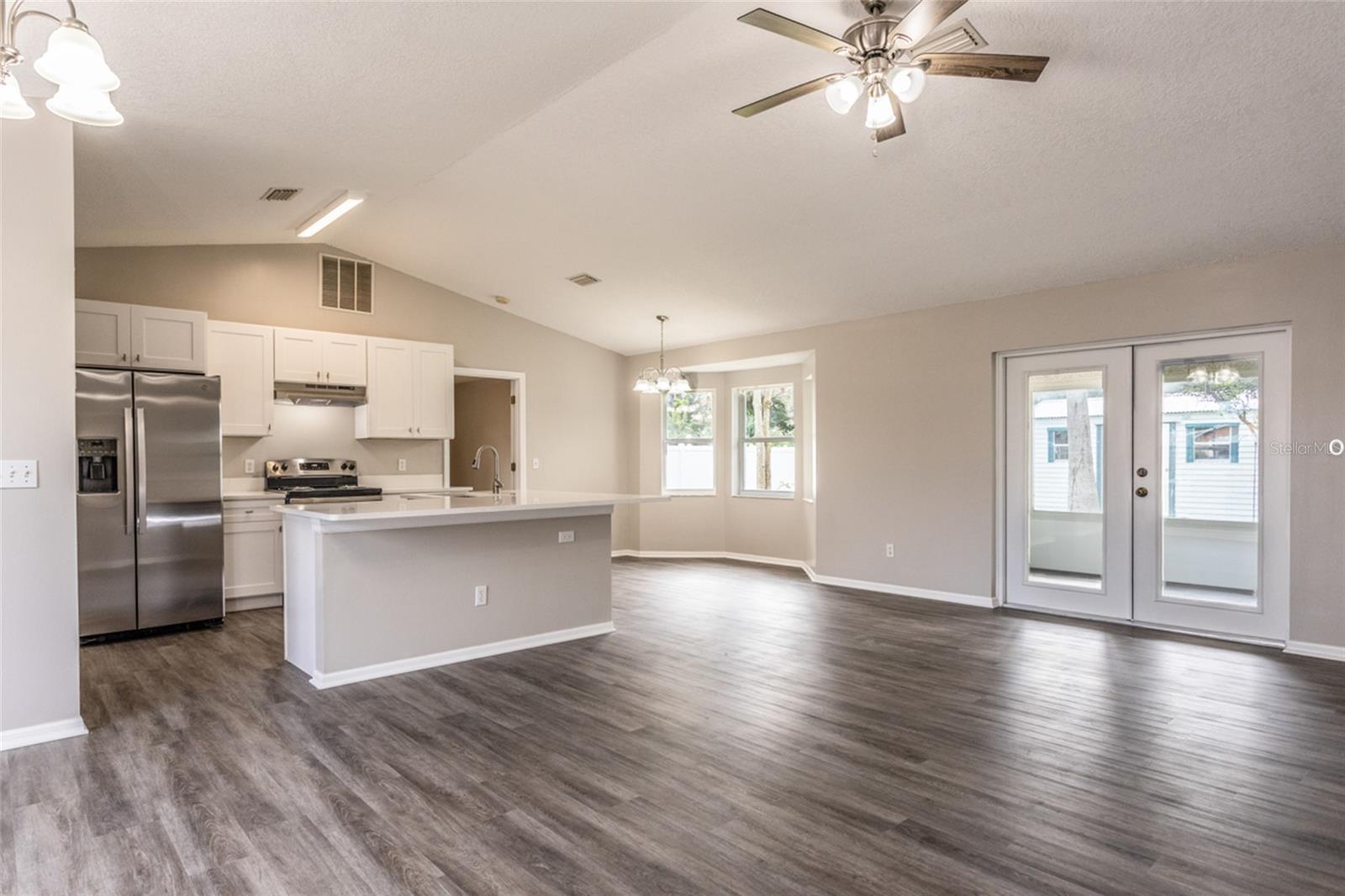 Ceiling Fans(s), Eat-in Kitchen, High Ceilings, Kitchen/Family Room Combo, Living Room/Dining Room Combo, Open Floorplan, Primary Bedroom Main Floor, Split Bedroom, Thermostat, Walk-In Closet(s)
