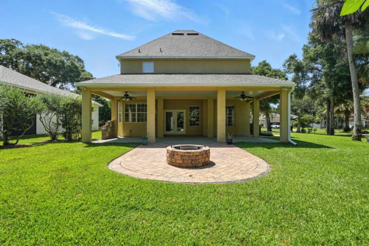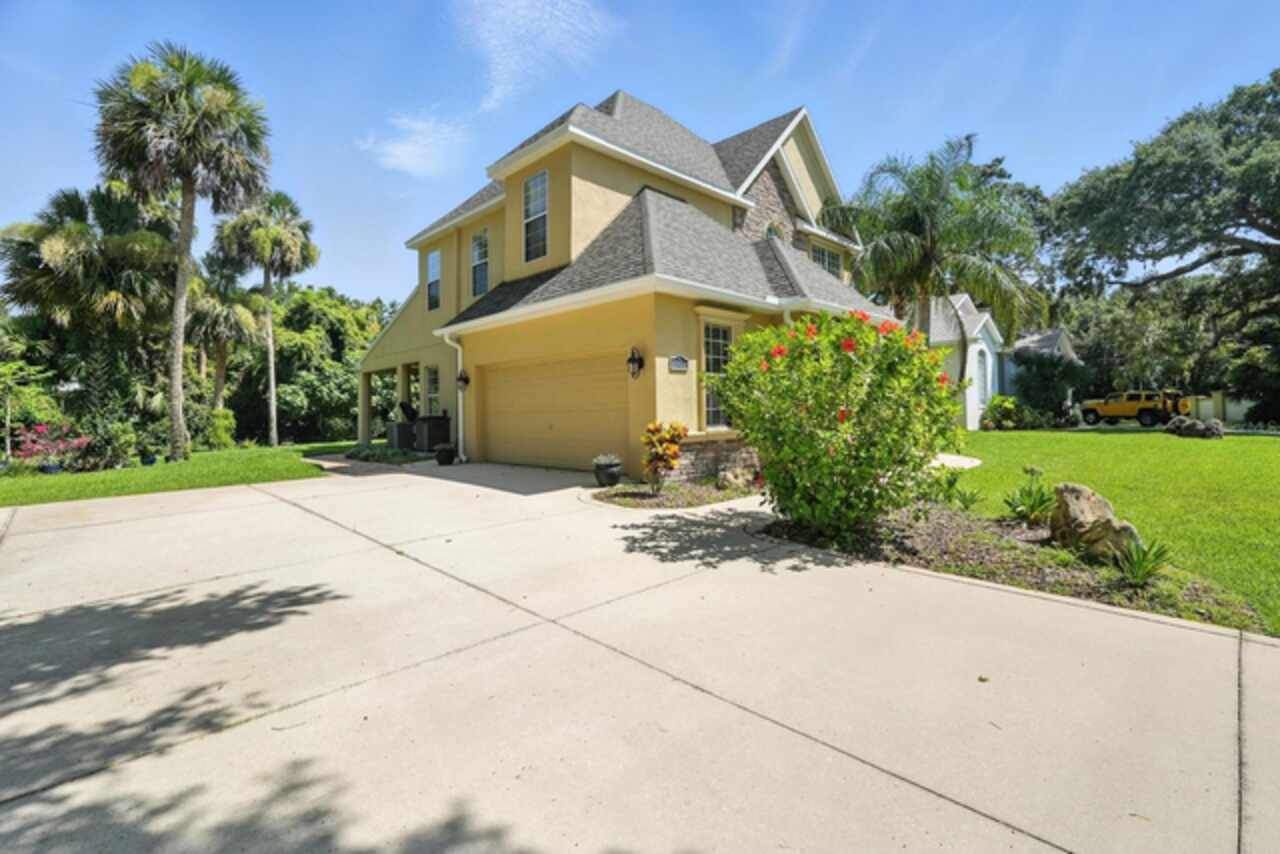 Nestled between the shimmering waters of the Intracoastal Waterway and the Atlantic Ocean, 7 River Oaks Way offers the perfect blend of coastal charm, quality construction, and serene privacy. Its location is truly unbeatable—tucked within the highly desirable and best-kept secret: the Hammock of Palm Coast. Located just off scenic A1A in the intimate community of River Oaks, this beautifully maintained 3-bedroom, 2.5-bath concrete block home spans over 2, 000 square feet of well-designed living space. From the moment you arrive, you're greeted by a manicured lawn, stone-accented exterior, and a side-entry garage that enhances the home’s curb appeal. Step inside to find tile flooring throughout the main level, elegant double tray ceilings, arched doorways, and tasteful architectural details like accent columns and crown molding. The spacious dining room flows into a granite-clad kitchen with a breakfast nook, while French doors lead out to a paver-lined patio complete with a fire pit—an ideal setting to enjoy breezy afternoons beneath a canopy of mature trees. The downstairs also features a large, light-filled living area and a convenient guest half bathroom. Upstairs, the oversized primary suite impresses with soaring tray ceilings, French door entry, a luxurious jetted tub, walk-in tiled shower, double vanities, and a large walk-in closet. Two additional bedrooms share a convenient Jack-and-Jill bath, each with its own walk-in closet, while the upstairs laundry room adds ease to everyday living. This home is thoughtfully designed and truly move-in ready. Just a short stroll from your front door, the private community dock extends out over the Intracoastal Waterway—perfect for boat watching, spotting dolphins and manatees, or enjoying peaceful views of Florida’s abundant coastal wildlife. With HOA dues of only $50/month, this rare coastal gem is a lifestyle opportunity not to be missed.