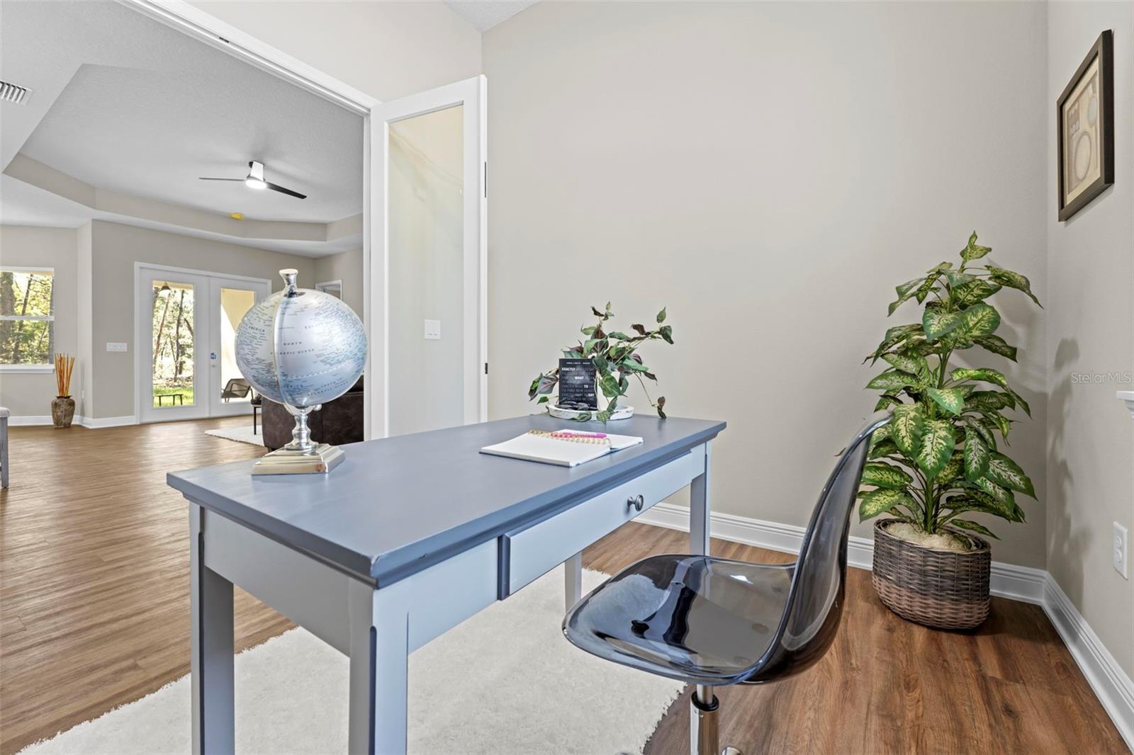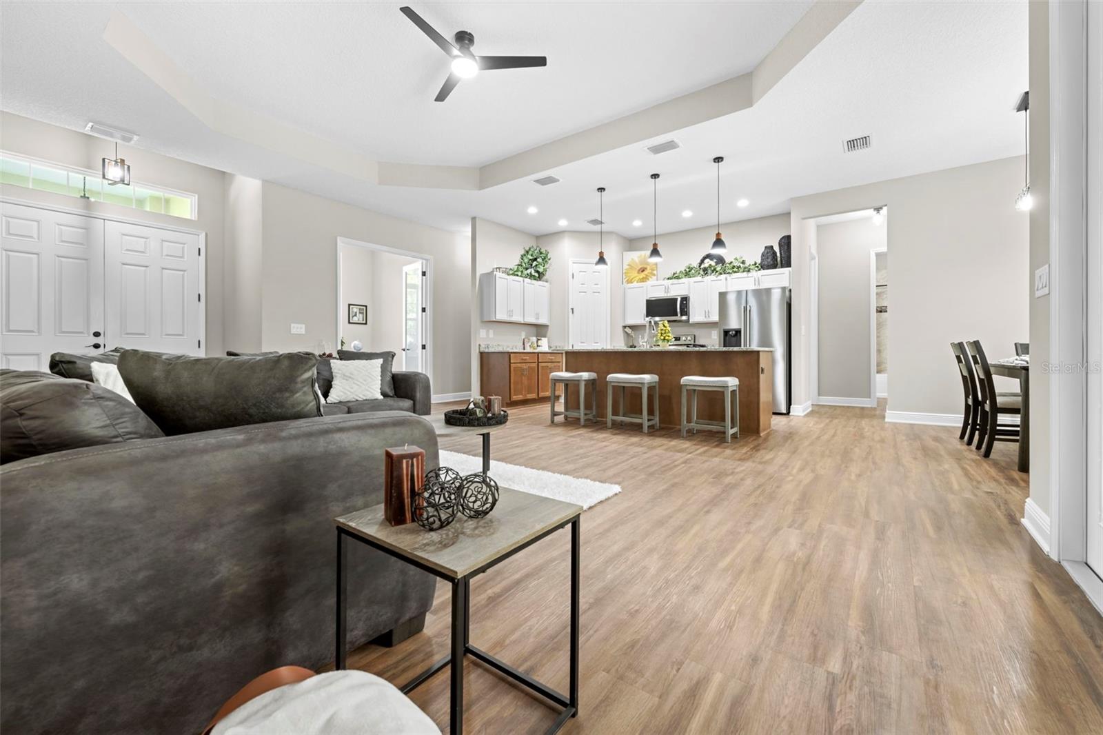Brand-New Construction in Sugarmill Woods! Discover this beautifully designed 3-bedroom, 2-bath home with an office perfectly situated at the end of a peaceful cul-de-sac in the Cypress Village community of Sugarmill Woods. Nestled on 0.28 acres, this 1, 907 sq ft residence blends modern finishes with warm, inviting style. Step inside to find luxury vinyl plank flooring throughout, quartz countertops and neutral warm-brown tones that create a comfortable, elegant atmosphere. The open floor plan flows seamlessly from the spacious living area to a contemporary kitchen and dining space - perfect for entertaining or everyday living. The split-bedroom layout offers privacy, while the dedicated office provides flexibility for remote work or a creative space. The primary suite features a luxurious en-suite bath and generous closet space. Outside in your covered lanai, enjoy the tranquility of a cul-de-sac location surrounded by lush Florida scenery. With a two-car garage, brand-new construction and a builder’s warranty, peace of mind comes standard.
