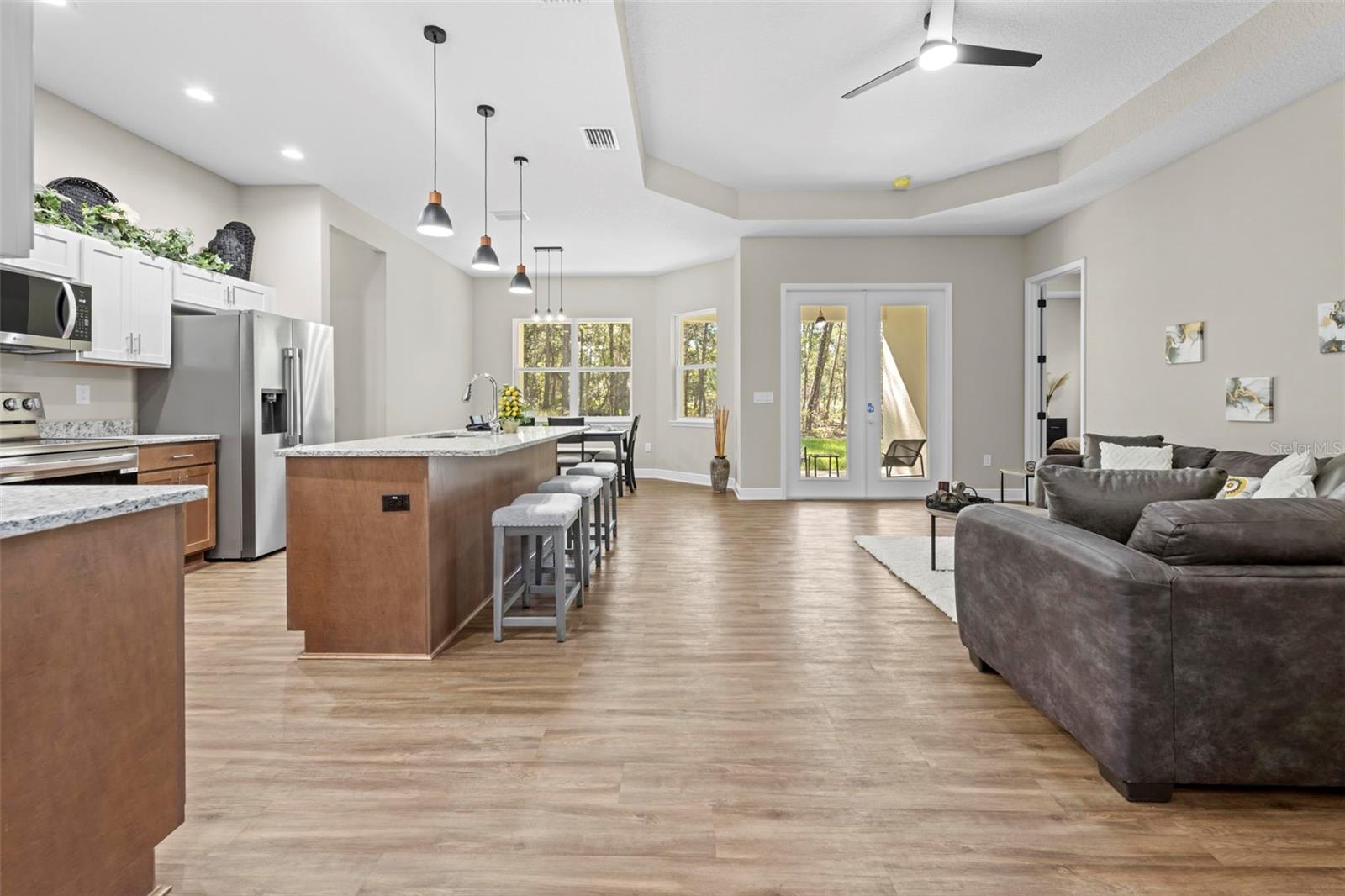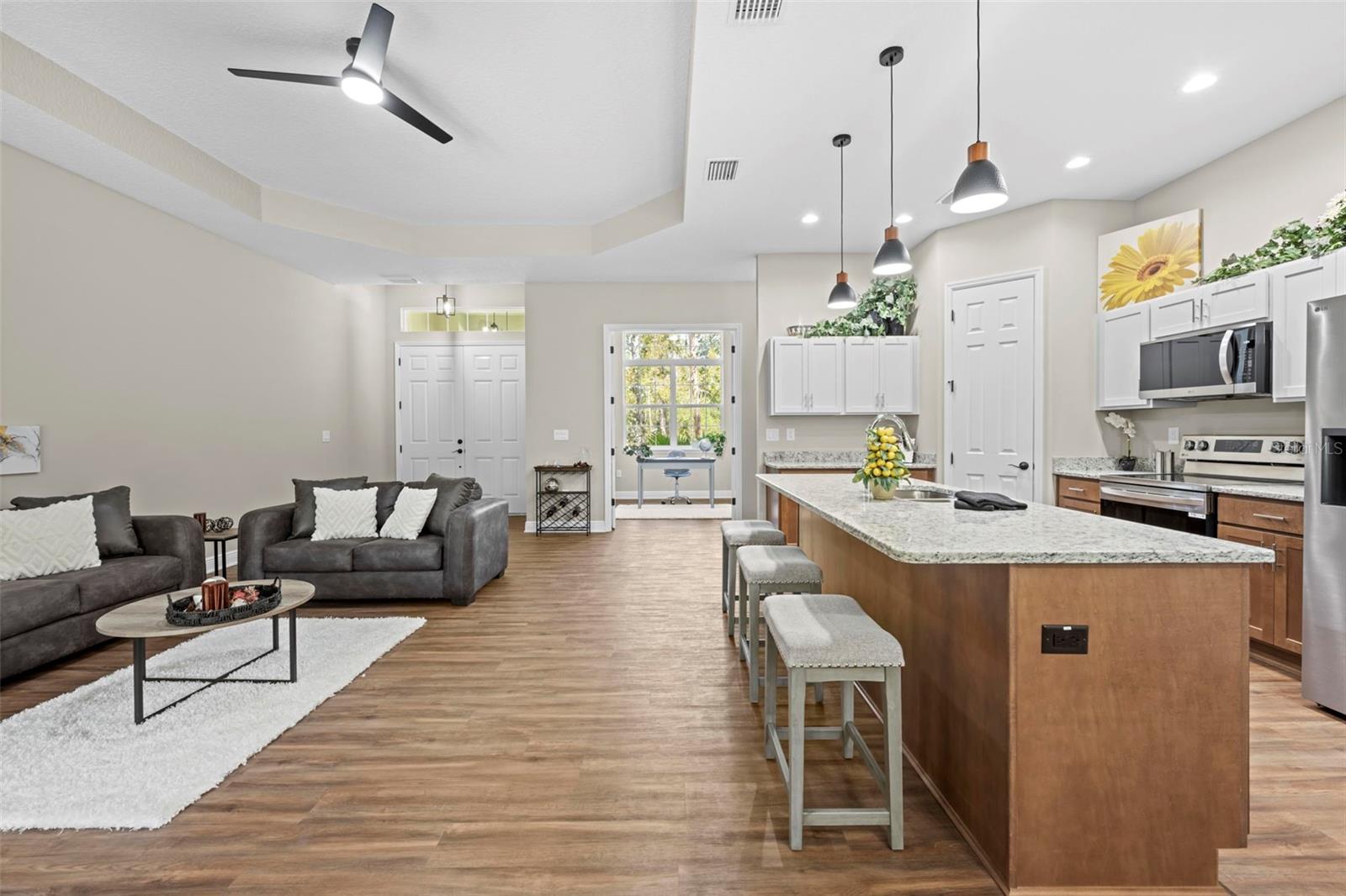 Ceiling Fans(s), Kitchen/Family Room Combo, Living Room/Dining Room Combo, Primary Bedroom Main Floor, Solid Surface Counters, Split Bedroom, Stone Counters, Walk-In Closet(s)