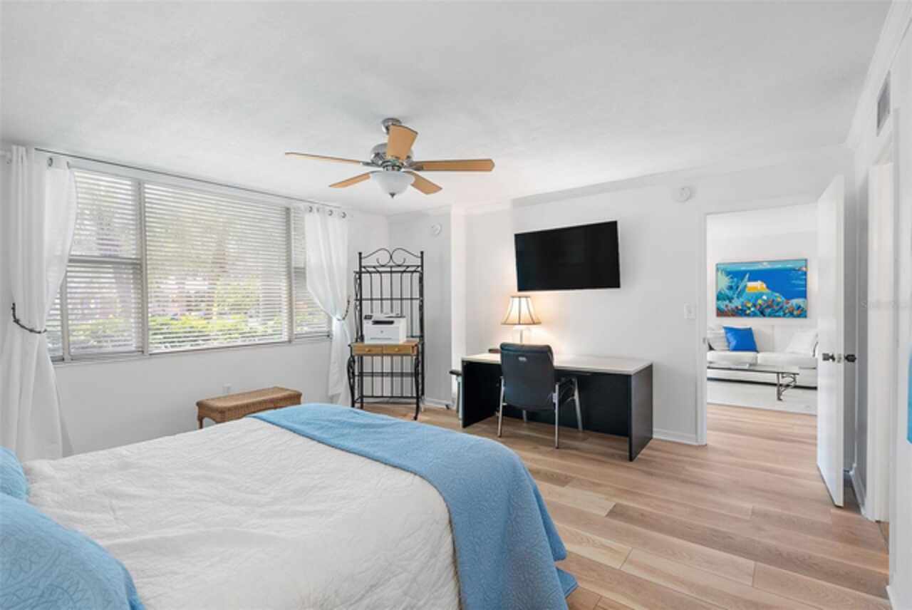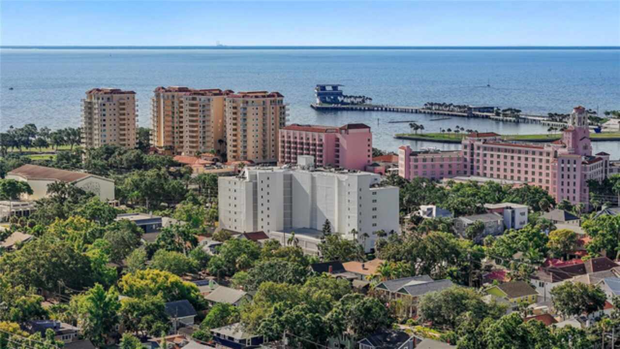 Welcome to this beautifully updated first floor condo in the highly desirable Harbour Hill, a quiet and friendly 55+ community ideally located in the heart of downtown St. Petersburg and perched on iconic Beach Drive. This spacious residence offers the perfect blend of comfort and convenience, with only two other neighbors sharing a private hallway and exclusive access through a private back entrance—making daily errands, like unloading groceries, easy and elevator-free. From your front porch, enjoy peaceful views of Beach Drive and the iconic five star Vinoy Resort, framed by manicured privacy landscaping. This prime location puts you just blocks from St. Pete’s scenic waterfront parks, boutique shops, cafés, marina, and world class cultural attractions like The Dalí Museum and the Museum of Fine Arts. Nearby, North Shore Park offers beach access, dolphin watching, volleyball courts (in the sand!) and a public aquatic complex. Downtown St. Petersburg is known for its sunshine, year-round calendar of events, including art festivals, live music, holiday boat parades, farmers markets, and more—all just outside your door. Albert Whitted Airport is just minutes away, and Tampa International Airport is a convenient 25–30 minute drive. The condo offers a newly renovated 9th floor hospitality level with sweeping views of the downtown skyline—perfect for sunset gatherings. Residents also enjoy complimentary use of the rooftop hospitality suite, ideal for birthdays or special occasions. The building is not located in a flood zone, the unit #102 and the parking garage has never flooded, even during major storms. Additionally, Harbour Hill has completed and passed its milestone inspections, offering peace of mind to residents and future owners alike. This turnkey unit has been extensively updated in 2025, including fresh interior paint throughout its 1, 300 square feet and the removal of all popcorn ceilings for a smooth, modern finish. NuCore waterproof luxury vinyl plank flooring in a neutral beige tone was installed throughout the entire unit, offering both durability and style. Custom motorized white blinds with blackout backing were added in the living room by 3 Day Blinds and come with a lifetime warranty. Fully motorized hurricane shutters were installed by Storm Shutter Specialists and are backed by a two-year warranty. The primary bathroom was also refreshed with a new, modern vanity. Whether you’re enjoying the view from your porch or heading out to explore everything downtown has to offer, this condo delivers low-maintenance living in one of St. Pete’s most sought after communities.