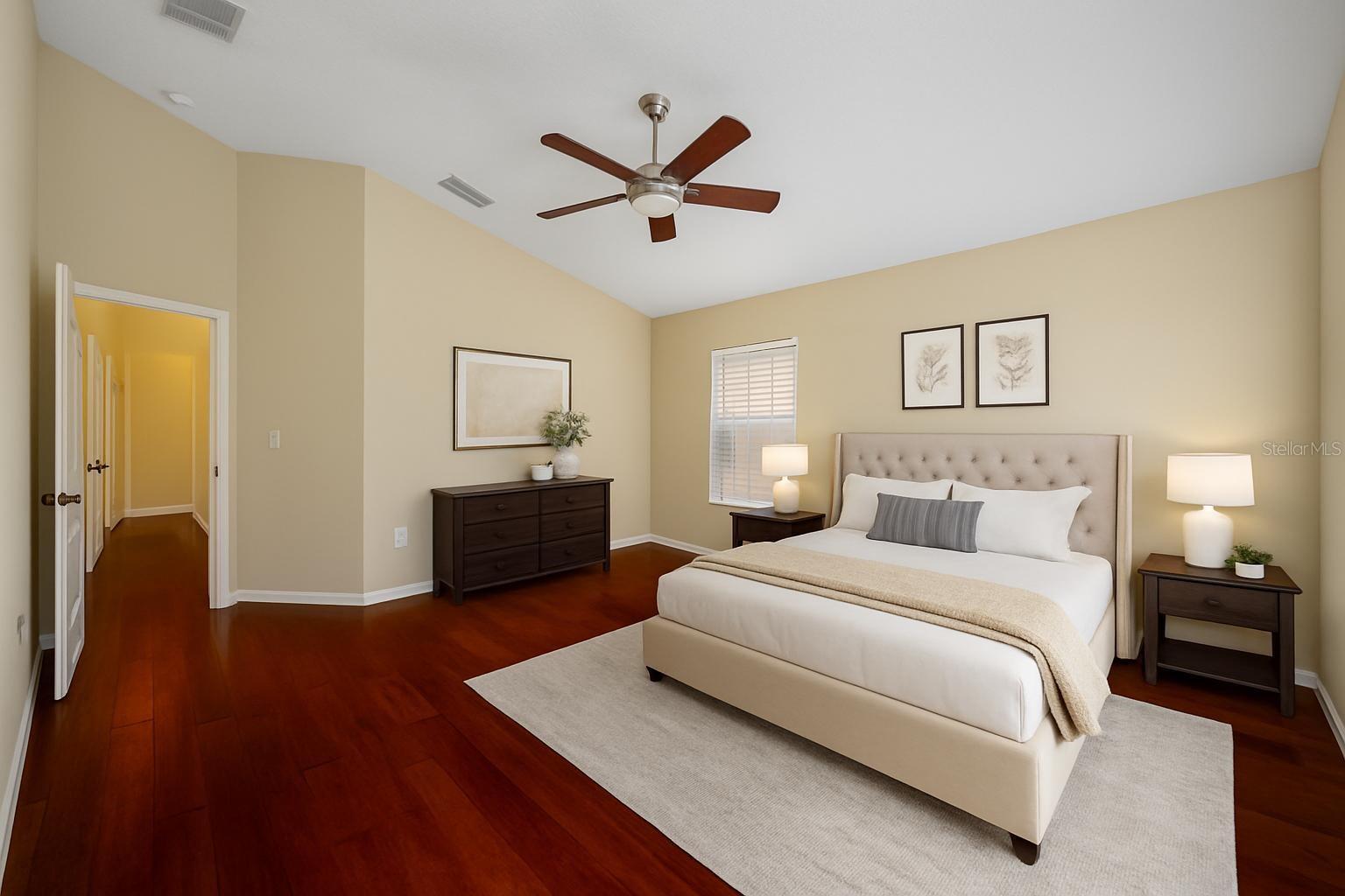 Ceiling Fans(s), High Ceilings, Kitchen/Family Room Combo, PrimaryBedroom Upstairs, Solid Wood Cabinets, Stone Counters, Vaulted Ceiling(s), Walk-In Closet(s)