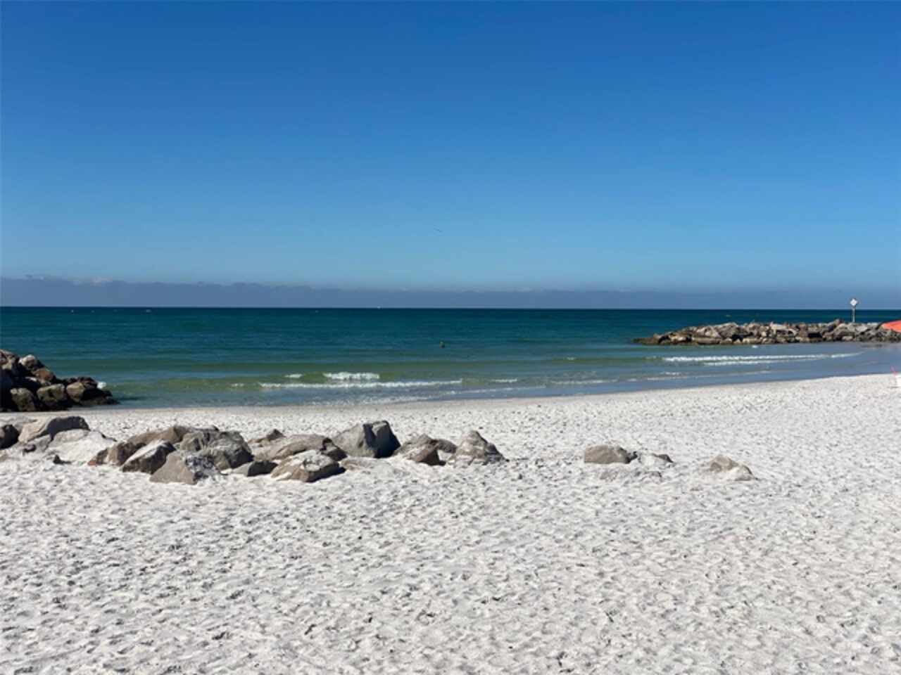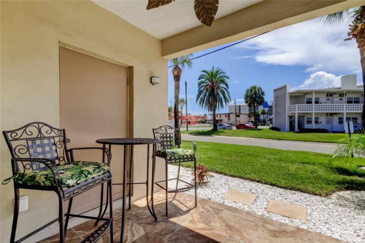 Luxury meets the beach!! Amazing location for your beach lifestyle! This beautifully updated, fully furnished, light and bright two bedroom/two bath end unit condo is steps from the sugary sands, turquoise waters and stunning sunsets of St Pete Beach. Wonderfully decorated throughout, featuring a gourmet kitchen with exquisite granite counters, solid cherry wood cabinetry with ample storage, Viking appliances, a farmhouse sink and built in pantry. An open plan living and dining area leads to a peaceful covered porch where you can’t help but relax. A spacious primary bedroom with en-suite bath even has a slight peekaboo water view. This home will be your private beach oasis where the stress melts away in the warm sunshine and gentle breezes of one of the best beaches in the country. This condo has a 23 seer Bryant AC with UV light system installed in 2022, updated electric panel and hurricane impact doors and windows including a gorgeous entry door with three point locking system. This well maintained community is right in the heart of the thriving Upham Beach neighborhood. Cap each evening off with a short stroll to watch yet another amazing sunset!! Within a few blocks are a number of dining options with water views, Fisherman’s park on Blind pass, and Corey avenue with the Sunday market and festivals. Also living so close to The charm of the historic Don Cesar Hotel and Pass-A-Grille neighborhood as well will have you falling in love with your new coastal hometown. So Convenient to St Petersburg’s downtown dining and arts scene, New bay front pier, major league sports, Downtown Tampa and Tampa Intl. and St Pete Clearwater Airports. St Pete Beach is tops on every list for sun, sand, fun and an amazing lifestyle. You deserve to live on one of the best beaches in the world. Start today!!