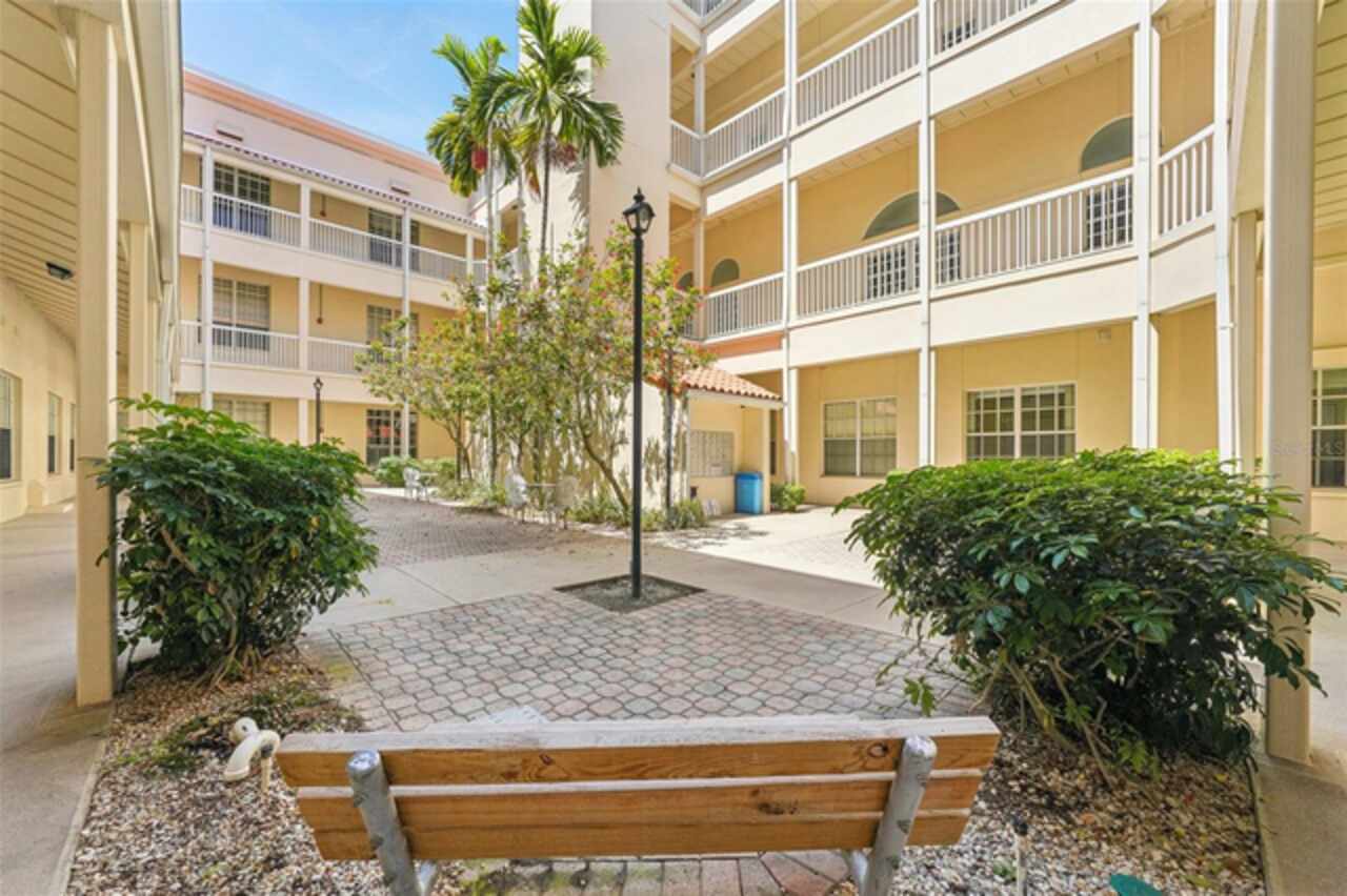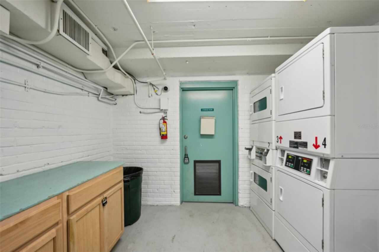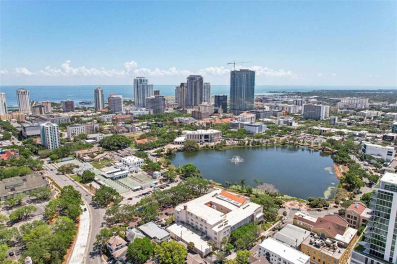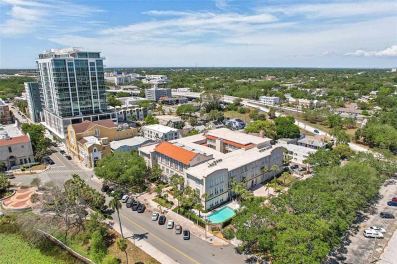 Located in the old St. Pete High School building on Mirror Lake, you'll be only a few blocks from downtown St. Pete and bustling Central Ave while also in a serene, quiet unit. On the first floor, your reserved parking space is only yards from your door. The building is located at the entrance to I-175 so you can be on I-275 in seconds, to the beaches in 20 minutes, or to TPA in 30. This building isn't in a flood zone, hasn't been evacuated for a hurricane, and electricity outages are minimal. The stylish kitchen features white cabinetry, sleek black granite countertops, a bar-height breakfast area, and stainless steel appliances. Stacked washer/dryer in the unit. Recent plumbing updates include new fixtures in both bathrooms and showers, a whole-house sediment filter, a water descaler, a water shut-off valve, and a new water heater (2023). Enjoy a lovely pool which is heated in the winter. HOA fees include Spectrum internet and basic cable. Schedule your showing today!