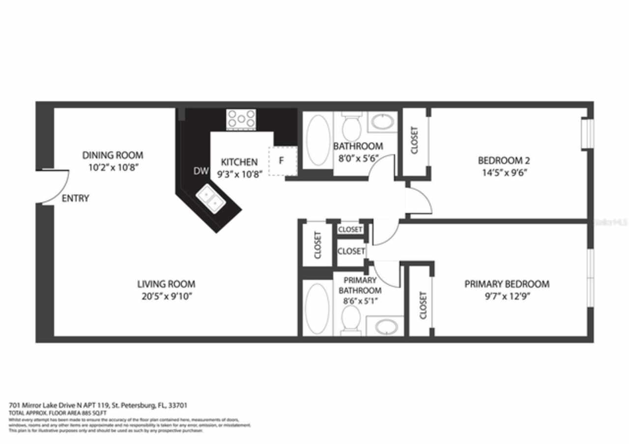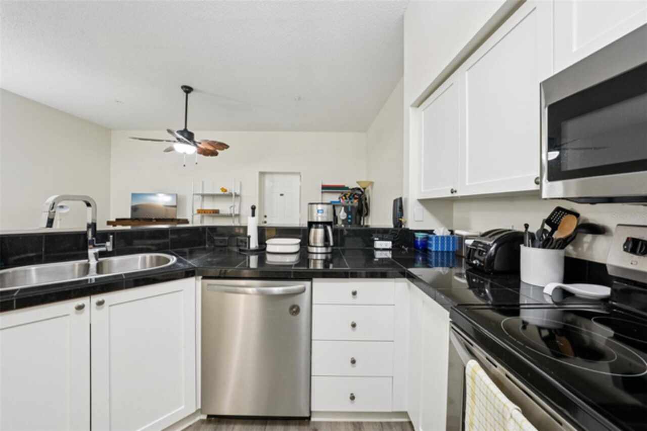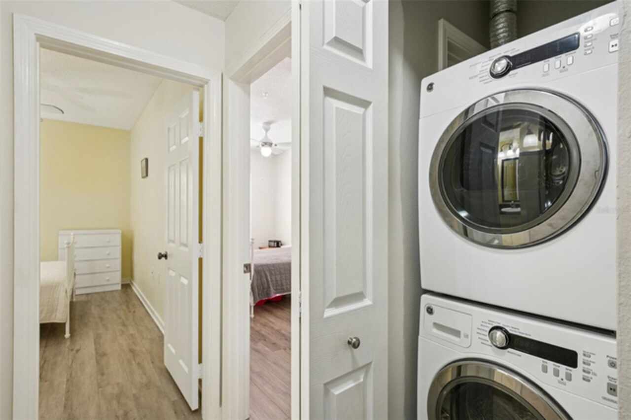 Located in the old St. Pete High School building on Mirror Lake, you'll be only a few blocks from downtown St. Pete and bustling Central Ave while also in a serene, quiet unit. On the first floor, your reserved parking space is only yards from your door. The building is located at the entrance to I-175 so you can be on I-275 in seconds, to the beaches in 20 minutes, or to TPA in 30. This building isn't in a flood zone, hasn't been evacuated for a hurricane, and electricity outages are minimal. The stylish kitchen features white cabinetry, sleek black granite countertops, a bar-height breakfast area, and stainless steel appliances. Stacked washer/dryer in the unit. Recent plumbing updates include new fixtures in both bathrooms and showers, a whole-house sediment filter, a water descaler, a water shut-off valve, and a new water heater (2023). Enjoy a lovely pool which is heated in the winter. HOA fees include Spectrum internet and basic cable. Schedule your showing today!
