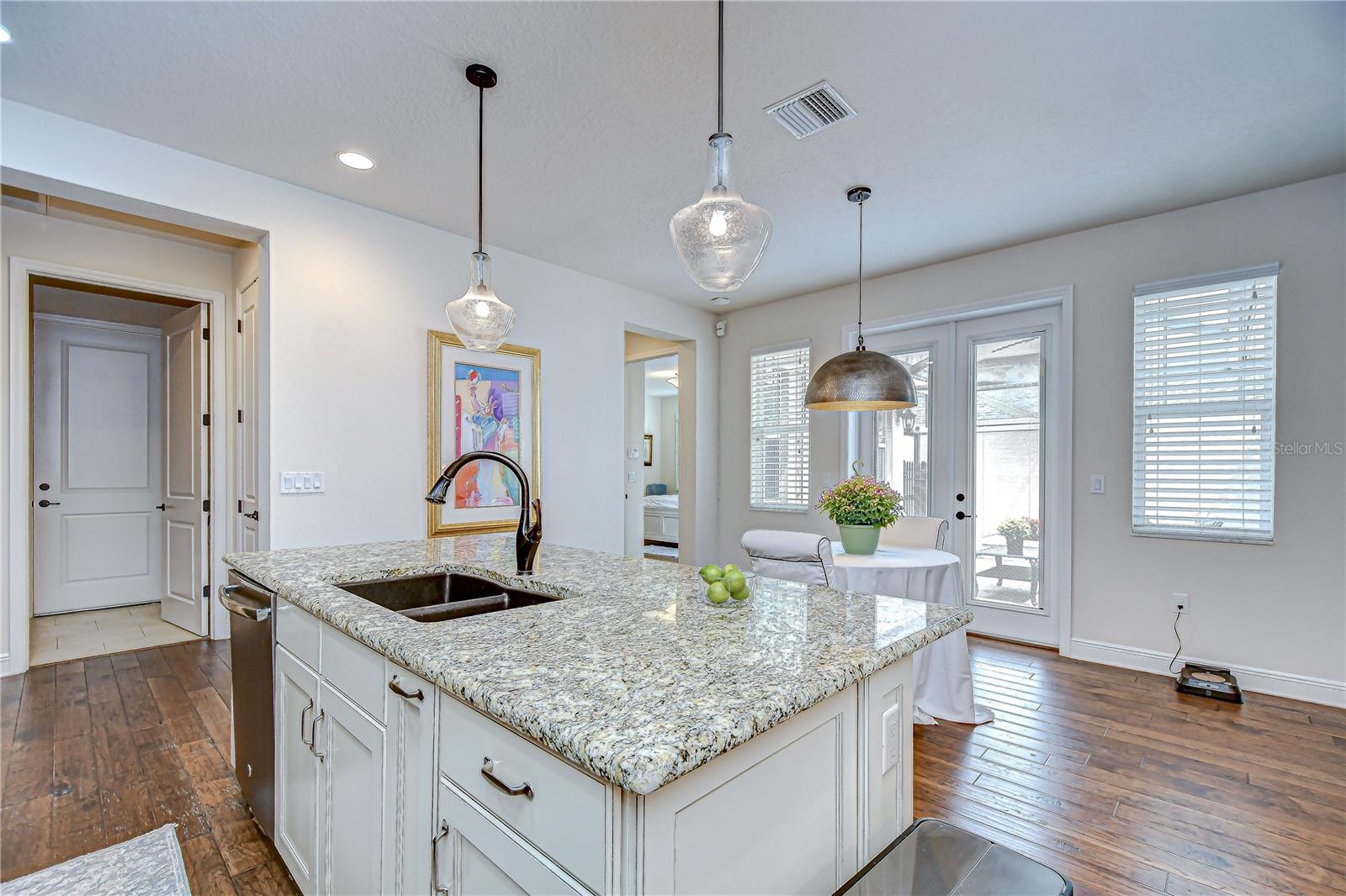 Under contract-accepting backup offers. This is THE ONE you’ve been waiting for! This Gorgeous Villa in Gated and sought after Ravinia is now available! The Kennedy is an open floor plan with 2053 square feet of perfectly planned living space. This Fabulous Villa features 3 Bedrooms, 2 Full Baths, a private screened courtyard and an attached 2 car garage! Amenities include gorgeous Engineered Hardwood Floors, 8 Foot doors throughout, a Chef’s Kitchen with stunning granite countertops, Dual Toned 42” Cabinetry in Slate and Antique White, and Stainless Steel appliances including a Double Oven Range. The huge island allows plenty of counter space for prepping, cooking & entertaining! You will love the amazing private screened courtyard w/ travertine pavers and French Doors to open and let the Sunshine in. The Courtyard is so tranquil, with Privacy Screening and a Fan, Plus there’s a planter where you can install a fountain! The Secondary Bedrooms are generously sized with lots of closet space. The Primary Bedroom is truly Large, plenty of space for a King sized Furniture Suite, and also has a Fabulous Walk-In Closet. The Primary Bath has gentleman’s height cabinetry, beautiful Caesarstone Quartz counters with dual sinks and a sit down vanity. MORE custom touches include Plantation Shutters, Gorgeous light fixtures, French Doors with blinds inside, and a personal Dog run on the side. This Villa has no attached Courtyard neighbors, making it live more like an End Unit! Ravinia is a fabulous low maintenance neighborhood (exterior painting, lawn, landscaping & roof replacement included), located just between Citrus Park, Carrollwood and Westchase. Community amenities include a Fabulous Lake House with a Resort Style Pool, Fitness Center, Multi-purpose room, Built in Grills, a Doggie Park and Tot Lot. Ravinia is a Gated Community, offering peace of mind, privacy and serene streets for daily walks. Plus Ravinia is so conveniently located to all that Tampa Bay and the surrounding areas have to offer; Arts, Entertainment, Shopping, Beaches, Medical Facilities, Great Schools and Places of Worship. Come make this your home today and live the Florida lifestyle!