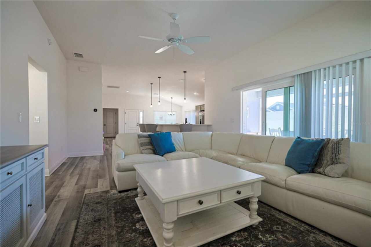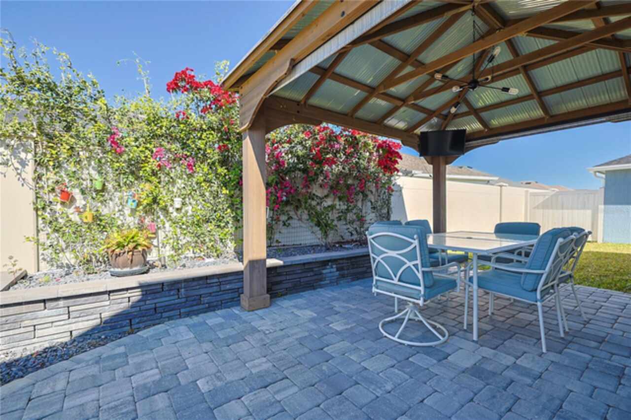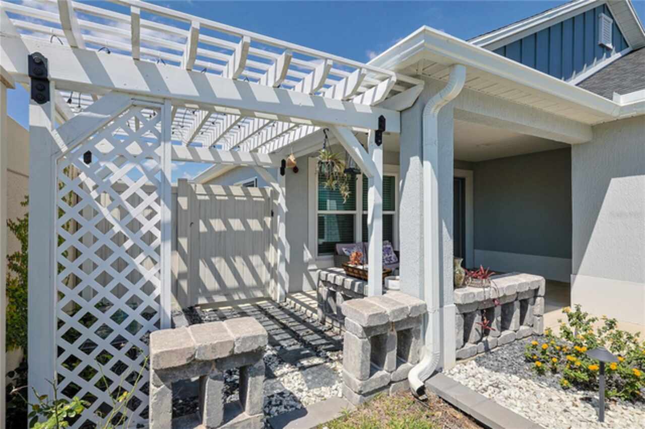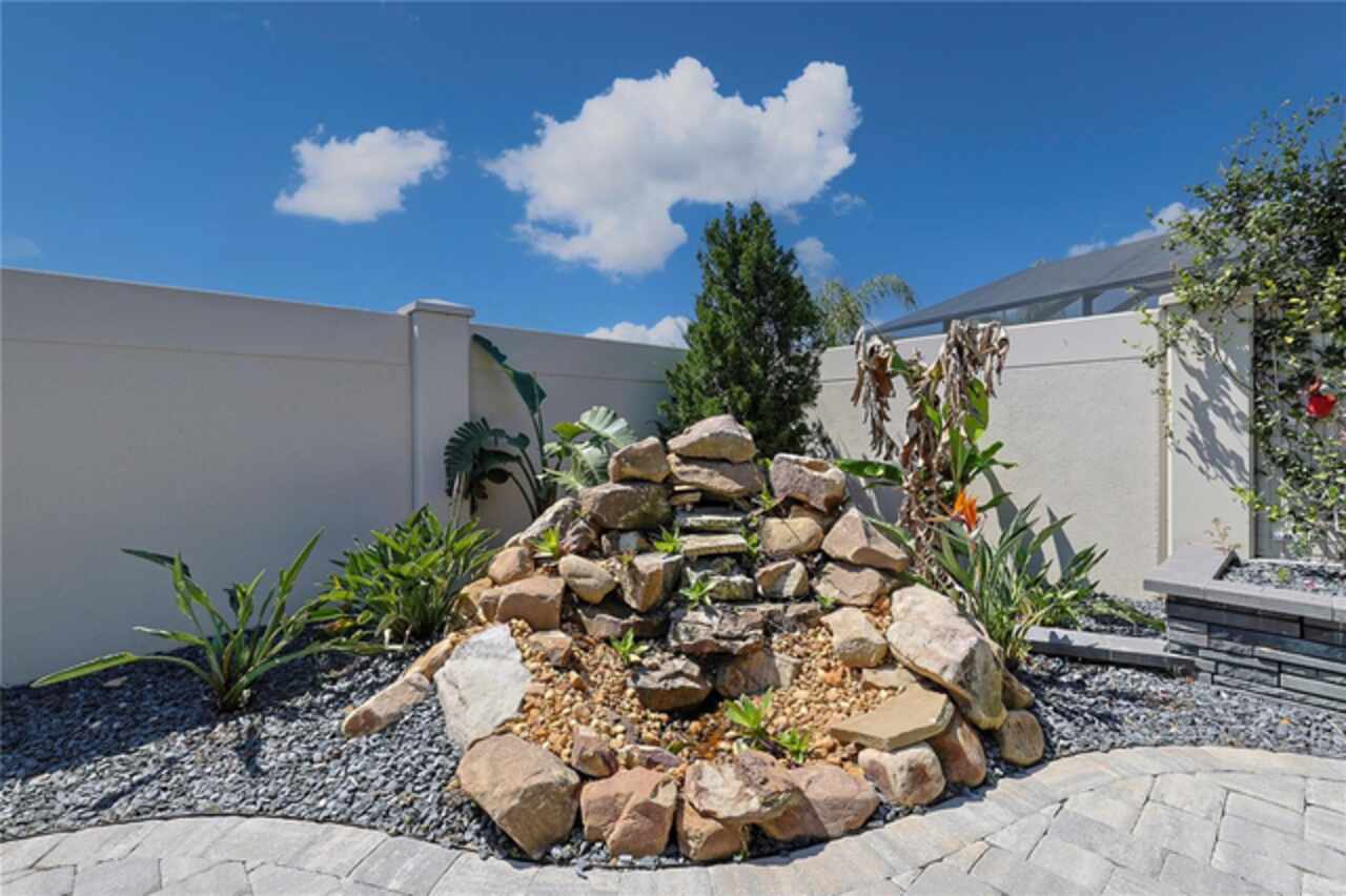 ** Seller now offering to contribute towards 2/1 rate buydown !** Set in the highly desirable Will Courtyard Villas, this exquisite Avondale Model home seamlessly combines modern luxury with thoughtful design and exceptional craftsmanship. From the moment you step inside, you'll immediately be struck by the attention to detail and the array of premium upgrades that elevate this home to the next level. The generously sized two-car garage is thoughtfully equipped with an electric vehicle charger, making it the perfect choice for electric car owners. Additionally, the garage includes a golf cart garage, offering convenient storage or easy access to your golf cart. Inside, custom blinds and white window treatments beautifully frame the windows, creating a bright and inviting atmosphere throughout. New irrigation and Sod installed 8/07/25! The outdoor living spaces are just as impressive as the interior. The meticulously designed landscaping features a serene rock waterfall, evoking a sense of tranquility. Step outside to discover a stunning freestanding pergola with sunshades, creating the perfect setting for entertaining guests or enjoying peaceful moments in the shade. A screened-in lanai further enhances the outdoor experience, offering a private retreat where you can enjoy the outdoors year-round. For those who appreciate the finest finishes, the kitchen is a true standout. Solid wood cabinets, top-of-the-line stainless steel appliances, and a gas range provide both beauty and functionality. The luxurious quartz countertops are complemented by sophisticated accent lighting, making this kitchen a dream for both cooking and entertaining. Throughout the home, luxury plank wood floors add warmth and elegance, including in the master bath, which features a spa-like frameless glass shower for a truly indulgent experience. Additional thoughtful features include a reverse osmosis water filtration system, ensuring pure, clean water throughout the home. The completely fenced backyard provides a private oasis, ideal for relaxation or gatherings. The decorative pavers in the back patio create an inviting space to enjoy sunny afternoons with loved ones. Located in the peaceful and well-maintained village of Lake Denham, this home offers not just a stylish and comfortable living space, but a sense of community in an enviable location. With its thoughtfully designed interiors, luxurious finishes, and stunning outdoor areas, this home is truly one-of-a-kind. Don't miss the opportunity to make it yours and experience all it has to offer. Located just a few minutes from the Fl Turnpike and 40 mins to Orlando!