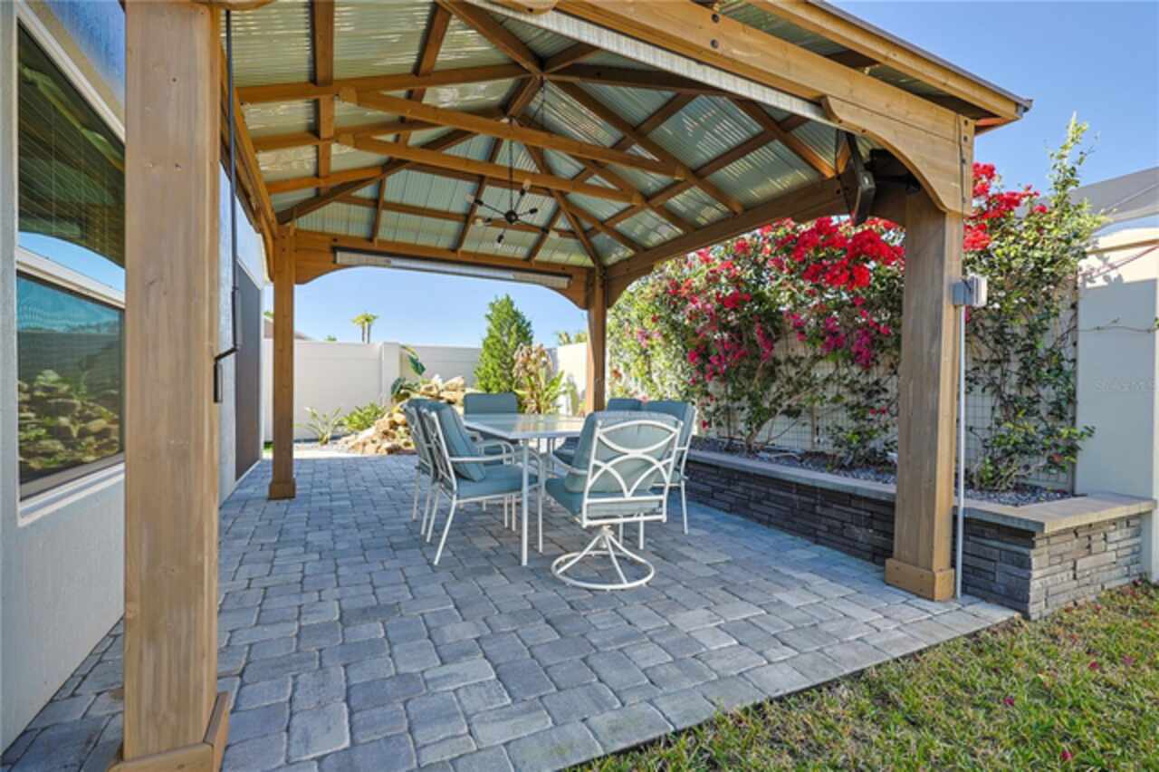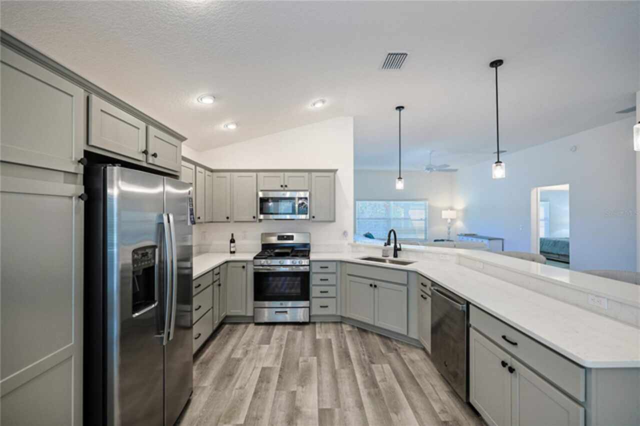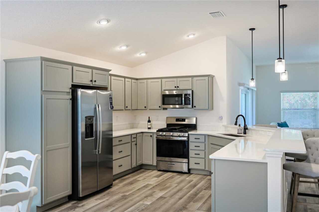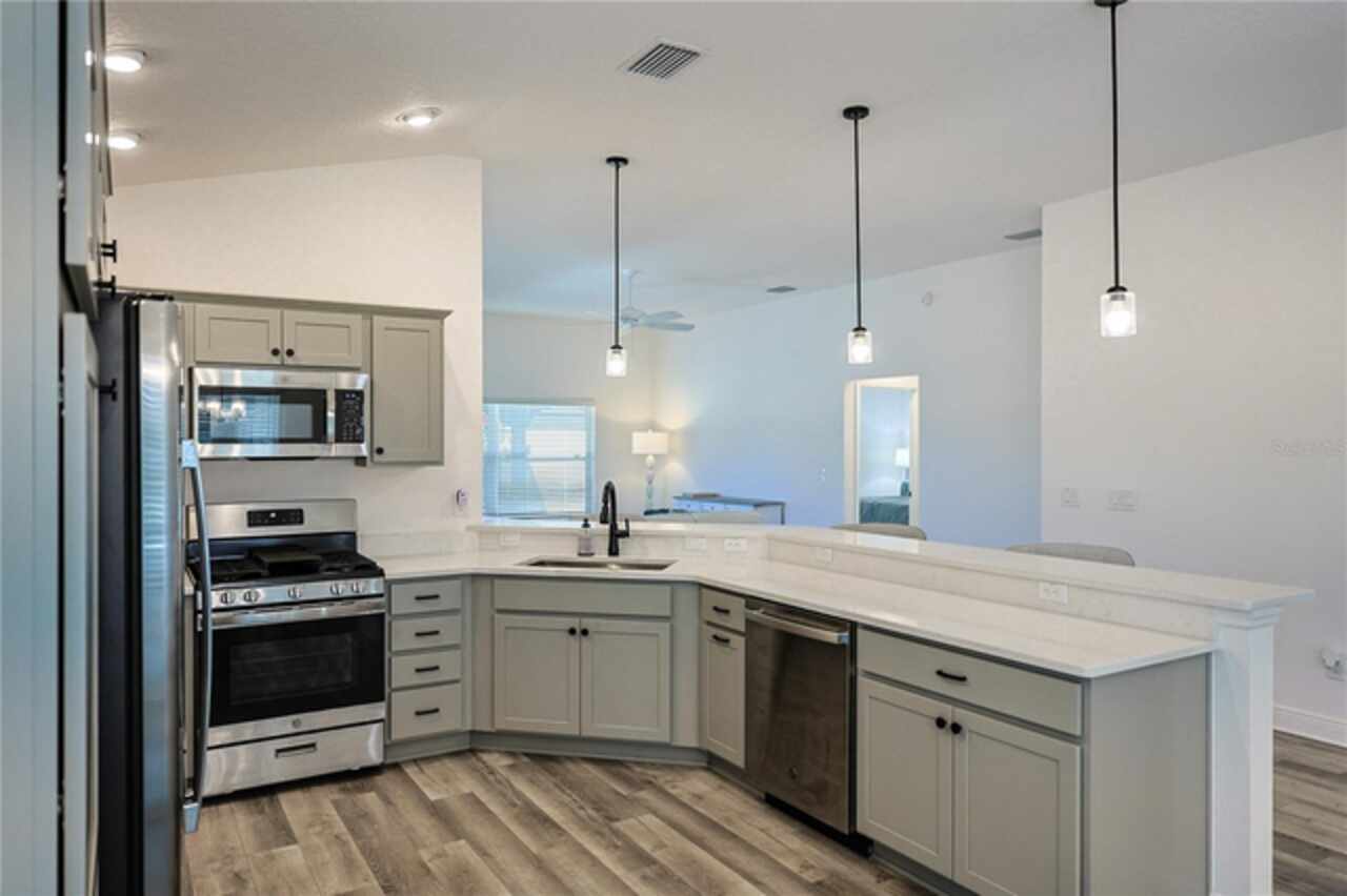 ** Seller now offering to contribute towards 2/1 rate buydown !** Set in the highly desirable Will Courtyard Villas, this exquisite Avondale Model home seamlessly combines modern luxury with thoughtful design and exceptional craftsmanship. From the moment you step inside, you'll immediately be struck by the attention to detail and the array of premium upgrades that elevate this home to the next level. The generously sized two-car garage is thoughtfully equipped with an electric vehicle charger, making it the perfect choice for electric car owners. Additionally, the garage includes a golf cart garage, offering convenient storage or easy access to your golf cart. Inside, custom blinds and white window treatments beautifully frame the windows, creating a bright and inviting atmosphere throughout. New irrigation and Sod installed 8/07/25! The outdoor living spaces are just as impressive as the interior. The meticulously designed landscaping features a serene rock waterfall, evoking a sense of tranquility. Step outside to discover a stunning freestanding pergola with sunshades, creating the perfect setting for entertaining guests or enjoying peaceful moments in the shade. A screened-in lanai further enhances the outdoor experience, offering a private retreat where you can enjoy the outdoors year-round. For those who appreciate the finest finishes, the kitchen is a true standout. Solid wood cabinets, top-of-the-line stainless steel appliances, and a gas range provide both beauty and functionality. The luxurious quartz countertops are complemented by sophisticated accent lighting, making this kitchen a dream for both cooking and entertaining. Throughout the home, luxury plank wood floors add warmth and elegance, including in the master bath, which features a spa-like frameless glass shower for a truly indulgent experience. Additional thoughtful features include a reverse osmosis water filtration system, ensuring pure, clean water throughout the home. The completely fenced backyard provides a private oasis, ideal for relaxation or gatherings. The decorative pavers in the back patio create an inviting space to enjoy sunny afternoons with loved ones. Located in the peaceful and well-maintained village of Lake Denham, this home offers not just a stylish and comfortable living space, but a sense of community in an enviable location. With its thoughtfully designed interiors, luxurious finishes, and stunning outdoor areas, this home is truly one-of-a-kind. Don't miss the opportunity to make it yours and experience all it has to offer. Located just a few minutes from the Fl Turnpike and 40 mins to Orlando!