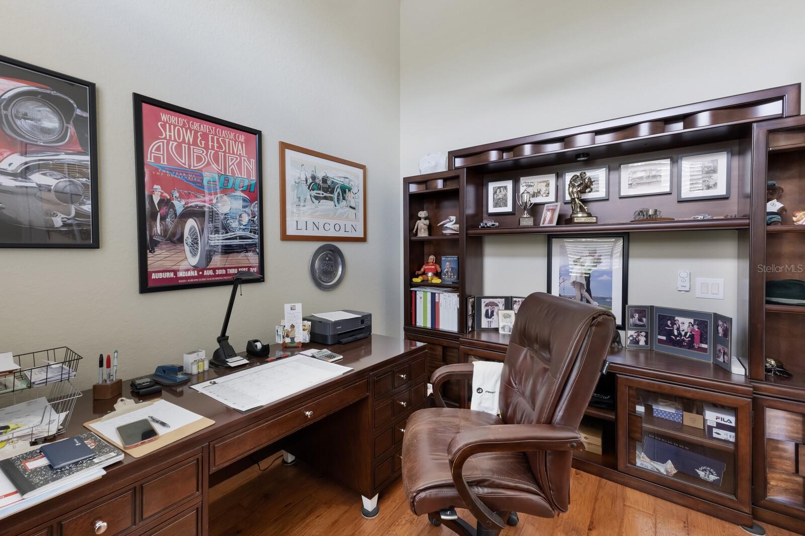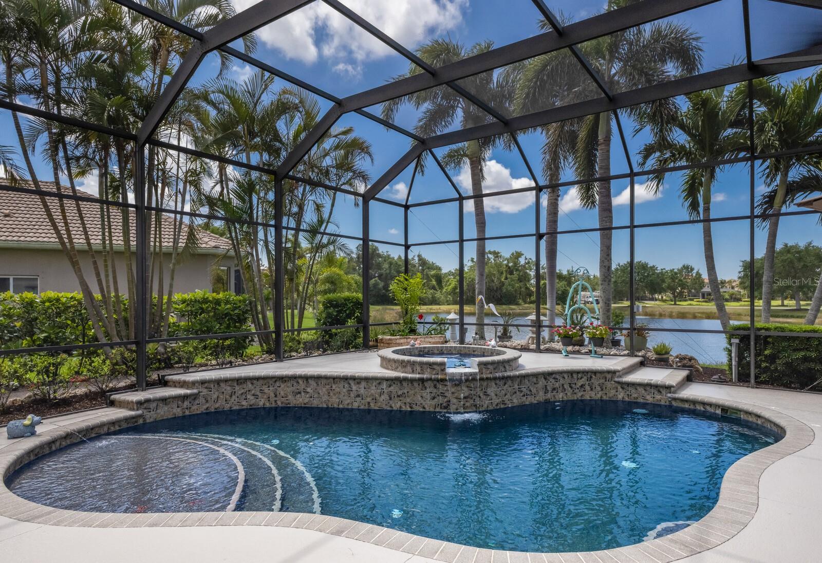 Serenity, sophistication, and sweeping lakefront views converge in this exceptional estate, located within the prestigious gated community of Red Hawk Reserve. Set on a premium homesite and thoughtfully crafted for both elegant living and effortless entertaining, this 3, 586 sq. ft. residence offers four bedrooms, three bathrooms, a dedicated office, a flexible studio or fifth bedroom, and an expansive 400+ sq. ft. bonus room. From the moment you step inside, you're welcomed by soaring ceilings, abundant natural light, and timeless architectural details that create a sense of openness and grandeur. At the heart of the home lies a gourmet kitchen, beautifully appointed with designer cabinetry, a custom wood range hood, granite countertops, under-cabinet lighting, a center island with breakfast bar, and high-end stainless steel appliances. Adjacent to the kitchen, a cozy dinette framed by a sweeping aquarium window offers the perfect setting to enjoy your morning coffee while overlooking the pool and tranquil lake. The primary suite is a private retreat, complete with serene views, dual custom walk-in closets with upgraded built-ins, and a spa-inspired en-suite bath featuring a Roman shower, soaking tub, and separate vanities. Step outside to your resort-style oasis—an expansive wrap-around lanai with brick pavers, a heated pool and spa, and lush tropical landscaping, all set against the backdrop of shimmering lake views. An oversized three-car garage offers generous built-in storage and overhead racks. At the same time, the community provides added peace of mind with a virtual guard gate, high-resolution security, and reclaimed water irrigation. Located within an A-rated school district and just minutes from the world-renowned Siesta Key Beach, this remarkable residence embodies the essence of Florida luxury living.