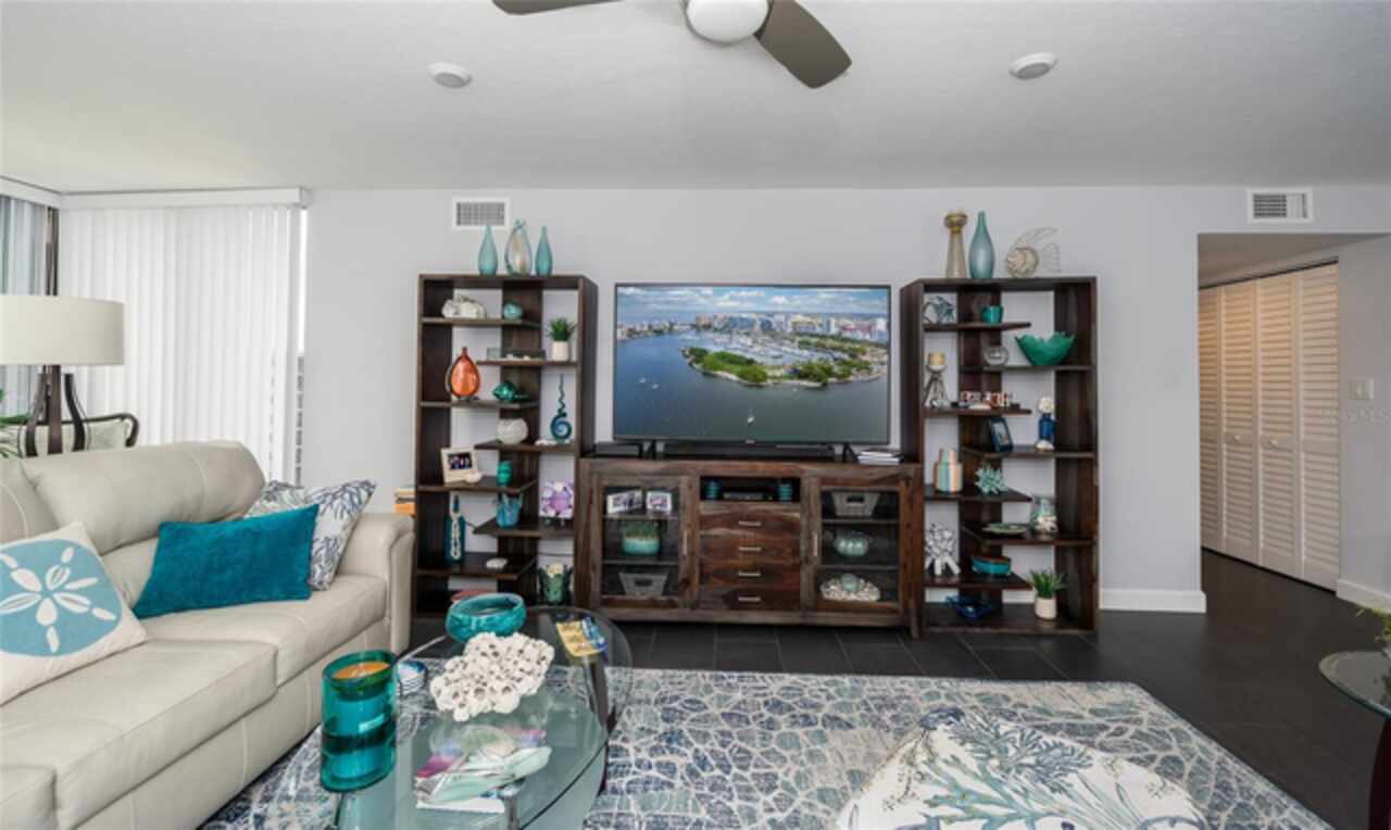 Florida living at its finest! Fully renovated, turnkey 6th floor unit with views of the bay! No expense was spared: gourmet-style kitchen, sleek contemporary finishes and glazed porcelain plank tile throughout, spa inspired bathrooms, oversized closets, and new windows throughout. The enormous sun deck and pool provide resort-style amenities including a gazebo, grilling area, well equipped fitness center, and an entertainment room, which is available to rent. Covered, assigned parking. Steps from the water, and all the fine dining and entertainment that Sarasota has to offer. Schedule your showing today!