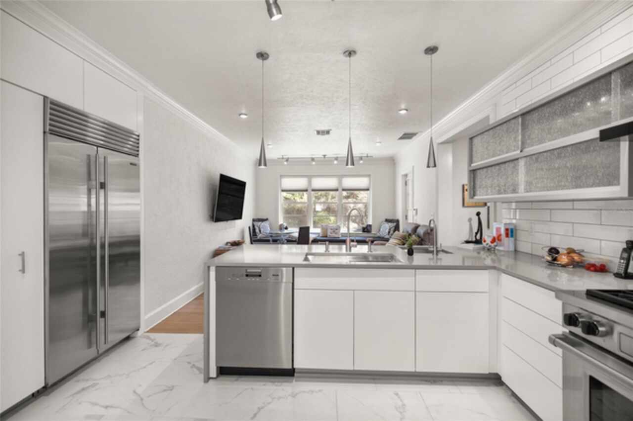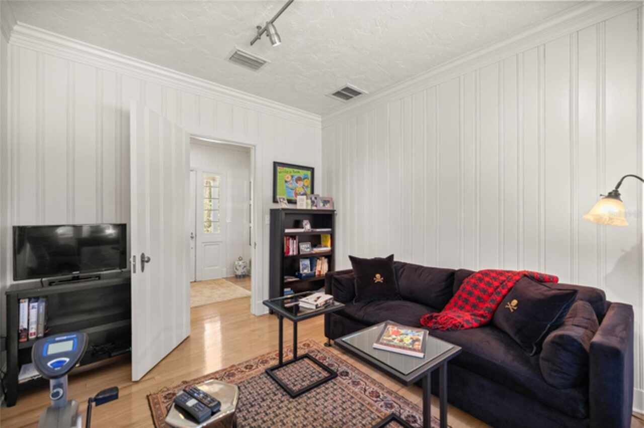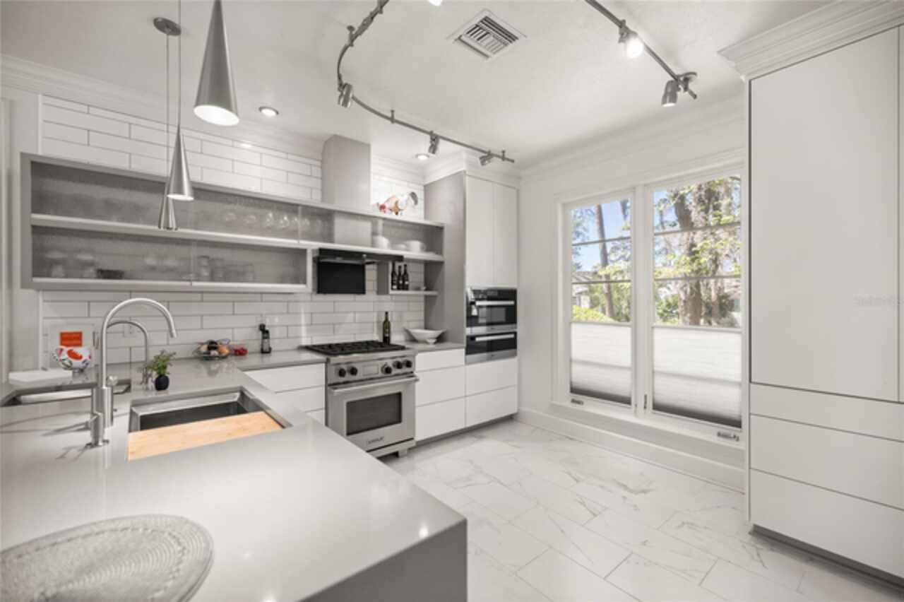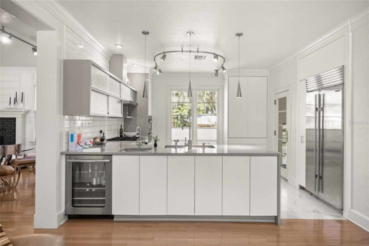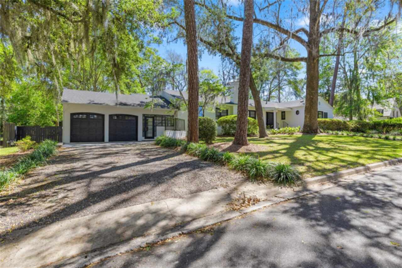 Nestled in the heart of the highly coveted Golfview Estates, this exceptional property is a rare find that effortlessly merges timeless charm with refined modern elegance. Though distinguished by its original meticulous craftsmanship and attention to detail, the home has been renovated to provide every modern comfort. As you enter this graceful 2243 Sqft residence, you are instantly captivated by the natural light that spills through the open floor plan, warming each inviting space. The formal living space, graced with original hardwood floors and a gas fireplace that retains its original mantle, seamlessly connects a sitting area and a formal dining area perfect for celebratory dinners and intimate gatherings. At the heart of the home, the remodeled gourmet kitchen boasts a dual-fuel Wolf range featuring gas burners and an electric convection oven, a Miele dishwasher, microwave, warming drawer, and a Subzero refrigerator-freezer. There is also pantry storage and a unique cupboard with an enclosed countertop, which provides a place for all those small appliances that would otherwise crowd the open counter space. Bespoke cabinetry topped with sleek waterfall Quartz countertops divides the kitchen from the family room and includes a wine fridge and an additional bar sink that are both functional and stylish. The family room is a friendly, comfortable area highlighted by a bench window seating overlooking panoramic views of a large, landscaped backyard unique in its size within Golfview. The three fully remodeled bathrooms have been fully tiled. The bathroom off the garage could easily become a pool bathroom if you decide to add a pool. This is one of the few properties in Golfview that would graciously accept a large pool and still give you room for that quick pickup soccer game. Additional highlights include a home office/library, a well-appointed laundry room, a two-car attached garage, and a beautiful screened-in back porch, which can be reached from the family room, the flex room, and through a wall of French doors from the living room. This beautifully remodeled estate represents a unique opportunity to own a hidden piece of paradise in Golfview. Indulge in a lifestyle where luxury and convenience converge. Schedule your private showing and experience it firsthand. This amazing property is just a short walk to UF Levin College of Law, the Gators Swamp Stadium, the UF campus, the UF Golf Course, shopping, restaurants, and so much more.