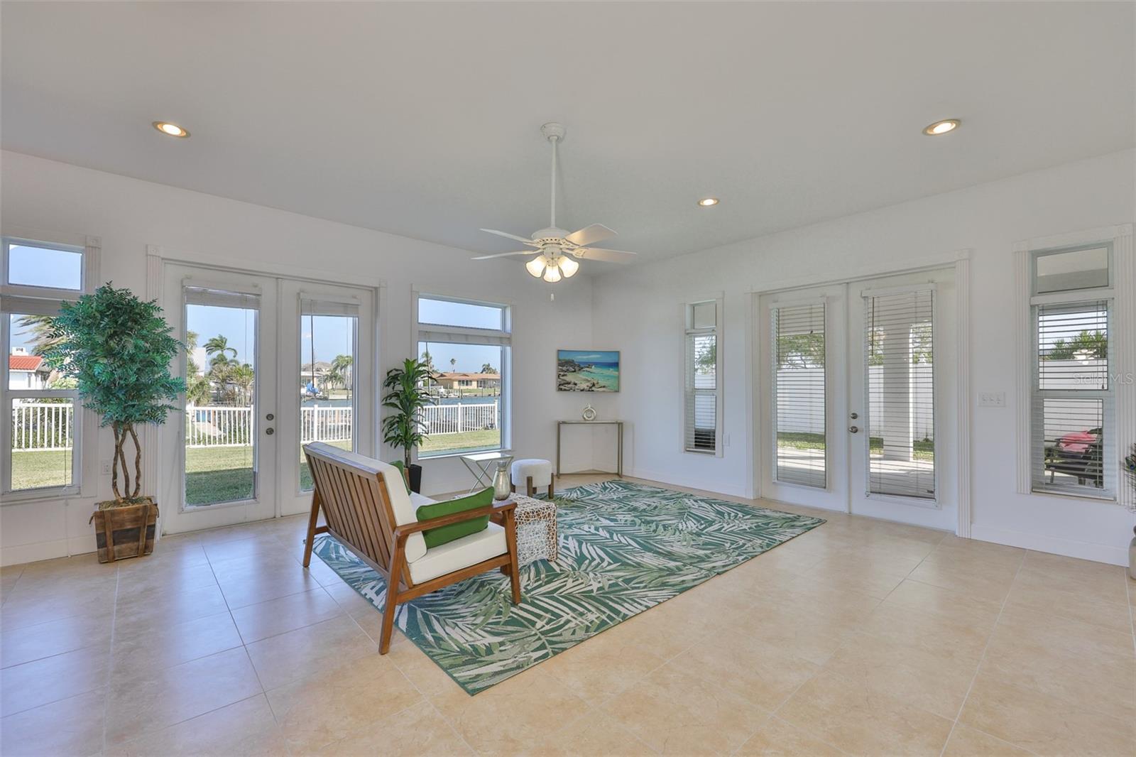 SPECTACULAR SUNRISES AND SUNSET views over the Intracoastal. Located in desirable Isle of Capri Treasure Island, this well-built waterfront three-bedroom, two-bathroom, 2 car garage 2182 sq ft home is ready for you to make it your own. The flowing, open floor plan features elegant porcelain tiles that seamlessly connects the living & dining room, the formal living area, and kitchen providing plenty of space to entertain guests as well as spend quality family time. The split bedroom design offers excellent privacy, featuring a spacious primary bedroom connected to a large ensuite bathroom, complete with a beautifully custom-tiled shower and a tailored walk-in closet system. The Second and third bedroom, include decent amount of closet space making them ideal for guests, children, or as a home office. The kitchen and great room, added in 2008, features striking 10-foot ceilings and hurricane-resistant windows. During construction, eleven additional pilings were installed to facilitate the potential of a second story. The centerpiece of the area is a spacious granite island measuring 10 feet by 4 feet, featuring a prep sink and providing ample seating for family gatherings. The versatile kitchen includes a dedicated walk-in pantry providing generous storage capacity. The two custom 8-foot high French doors connects your living space outdoors, step out back to a very large covered porch where you can take in what true Florida living is all about! The gorgeous views of the Intracoastal from your private spacious backyard will be your perfect place for that morning cup of coffee, evening cocktail and cookout. Experience 27 feet of waterfront, complete with a 20-foot wooden dock, perfect for jet skis or a small boat, ideal for fishing, kayaking, or paddle boarding. Other highlights include: freshly painted interior and exterior, charming Bay window, new appliances, Tile roof, new washer & dryer, remodeled bathrooms, and an attached two-car garage. Close to the sugar sandy beach, restaurants, top schools, shops neighboring Madeira Beach's lively John's Pass Village. Easy access to St Petersburg's downtown museum and arts District as well as quick connection to I-275 for a quick trip to the Airport. Whether you’re looking for a permanent residence or a weekend getaway, this gem offers the perfect blend of comfort and excitement. Don’t let this once-in-a-lifetime opportunity slip away! Call today to schedule a showing!