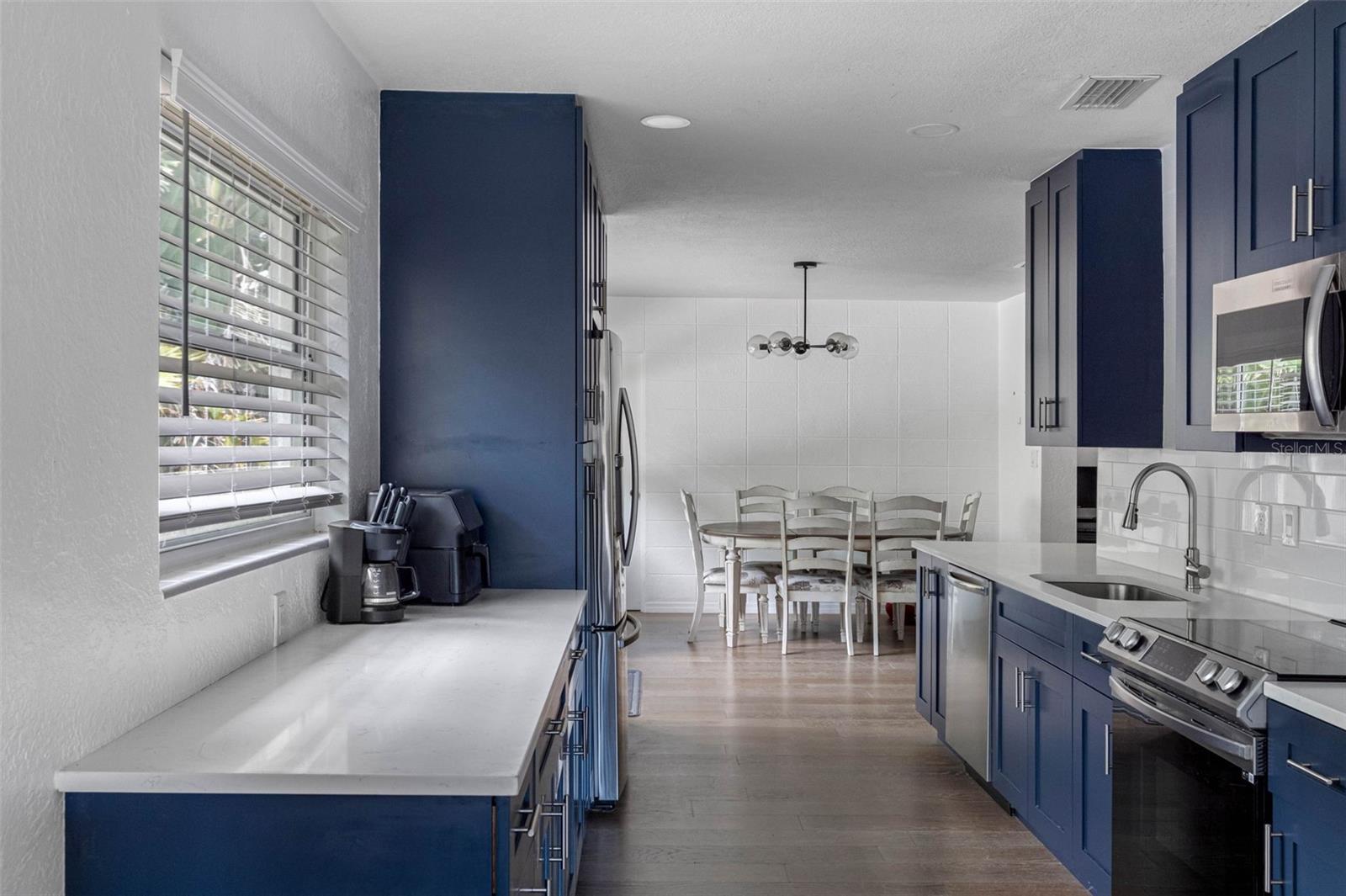 Recently updated, move-in ready home at 7101 4th Avenue North in St. Petersburg, non-flood zone and no hurricane damage. Beautifully remodeled, with a tasteful large modern kitchen featuring solid wood cabinets, quartz countertops, Samsung appliances with a bar and coffee area. In addition to the kitchen, the baths have also been completely updated with new tile and vanities. Throughout the whole house, Aqua Guard water-resistant engineered hardwood floors have been installed. The home also features a newer air-conditioning system, as well as upgraded electrical service and breaker box. Also, this year, a new solar system was installed that will save you money on your power bill. The property features a large backyard, with ample room for a pool, large deck, playground and many other ideas you might have. Behind the home is alley access to a one-car garage with attached laundry room. There is plenty of parking space behind for more cars, or even a boat or RV if you want. One of the best features of the home is that the location is at the end of a private brick-lined street, with access to the Pinellas Trail right next door. This home is close to Central Avenue which brings you downtown quickly, and minutes from the beach. This home has a lot of room and also has room to grow, ready for the future.