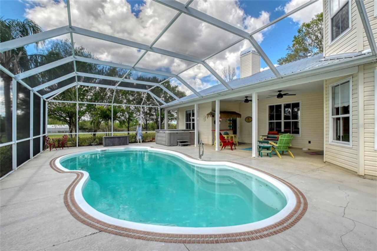 Under contract-accepting backup offers. Discover the ultimate horse property, whether you are an avid rider looking to keep your horses at home, dreaming of running your own boarding facility, or envisioning new creative uses for a versatile barn. This 9.41-acre estate offers all the essential elements: flat, cleared, and spacious land with fencing and cross-fencing, creating a safe and inviting environment for both family and animals. Nestled within this peaceful setting is a custom-built 4-bedroom, 3-bath, 2-story home that blends comfort with nature. A brand-new (2025) metal roof ensures peace of mind. The main floor boasts a chef-inspired kitchen with center island, stainless appliances, abundant counter space, and storage. Cozy up by the wood-burning fireplace on chilly evenings or enjoy views of the pool and hot tub. The owner’s suite on the first floor is filled with natural light and features a deluxe en-suite with jetted tub, walk-in shower, and dual sinks, plus a generous walk-in closet. A second bedroom on the main level provides flexibility for guests or a private office. Upstairs, a spacious loft doubles as a game or movie room, along with two large bedrooms and a full bath. Outdoor living shines here with an enclosed pool deck and covered entertaining spaces. The oversized detached barn features 8 stalls, tack room, wash area, storage room, excellent ventilation, and water and electricity to all stalls. Five separate pastures, two with direct stall paddocks, and an additional shelter building with water sources ensure comfort and convenience for your horses. Numerous nearby riding trails enhance the equestrian lifestyle. The barn’s concrete flooring makes this property especially versatile. As it stands, it’s a premier equestrian setup with income potential: Full Boarding @ $1, 100/month, Partial Boarding @ $650/month, Self-Boarding @ $450/month. Alternatively, the barn offers exciting and unique possibilities as a BARNDOMINIUM (Barndos) conversion—transforming into a full residential living space, adding a second-level apartment, or remodeling into a classic car storage / garage (see attached floor plans). With acreage supporting two homes, this property allows flexible living and working solutions. Picture mornings as the sun rises over your land, relaxing by the stocked pond, or fishing from the rebuilt bridge that leads to your private island, complete with bonfire space for memorable gatherings. Just outside Panther Ridge, you’ll enjoy the best of both worlds—close to shopping, schools, and medical facilities, yet far enough to savor privacy and tranquility with no HOA fees or Deed Restrictions. Just 15 minutes to I-75, it’s an ideal location for your equestrian lifestyle. Don’t miss out—saddle up and make this dream property your own!