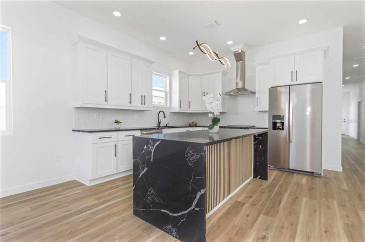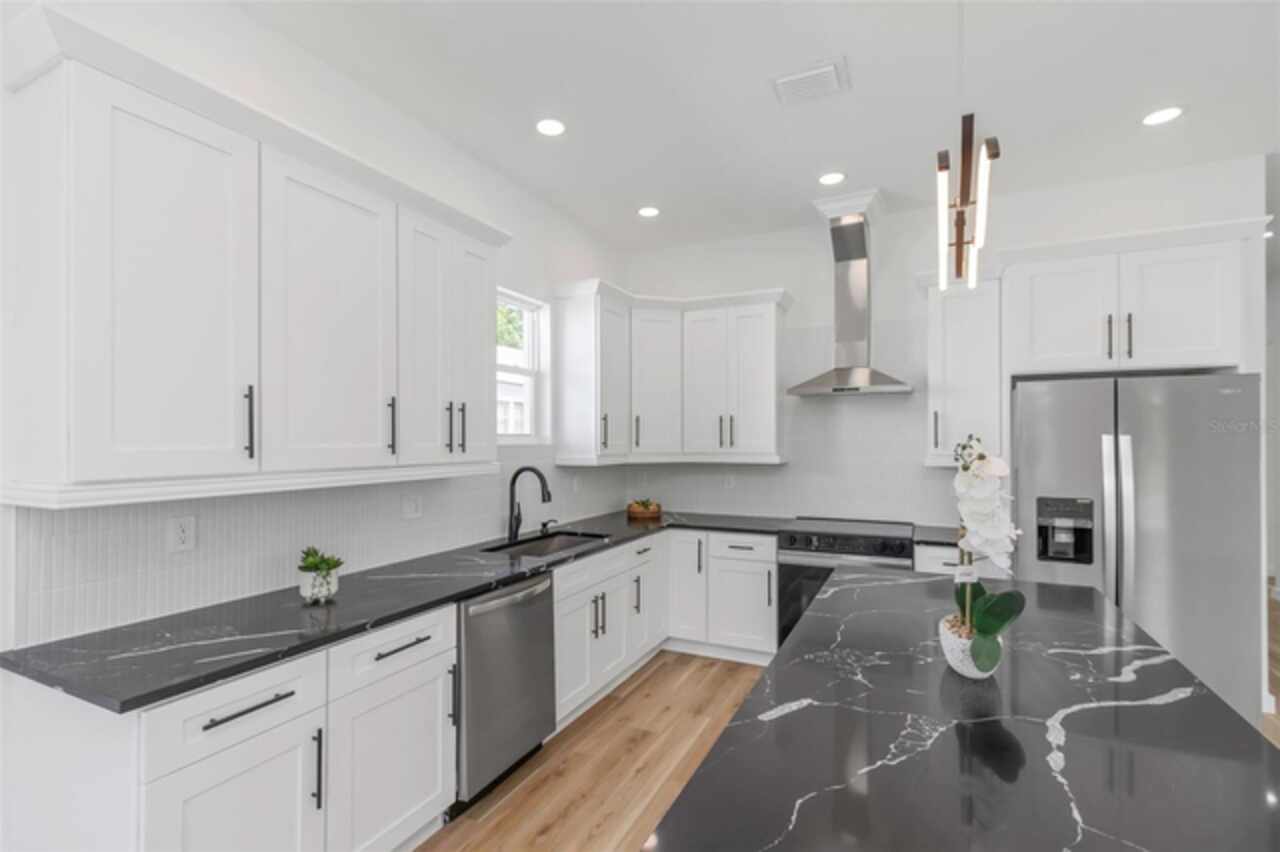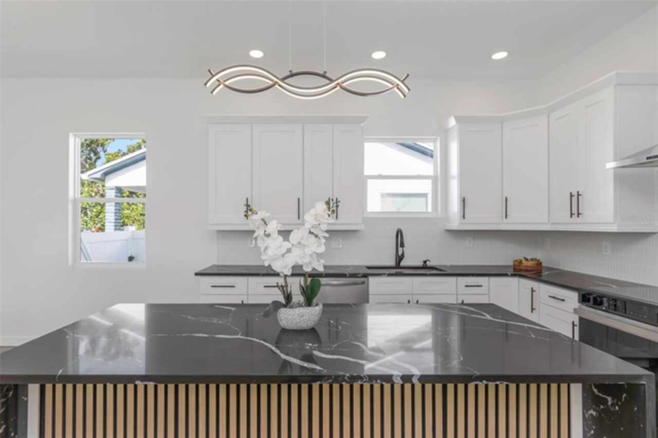 Tired of the same old, same old? Get ready for a game changer. This Brand-New, Non-Flood zone, St. Pete home puts you right in the middle of the action, just a quick ride from downtown's vibrant scene. This isn't a flimsy build, it's solid all-block construction on a slab foundation. With new construction all around, this neighborhood is heating up fast. Plus, thanks to a all-block, solid foundation and impact windows, you can say hello to lower utility and insurance bills and goodbye to worries. From top to bottom, every detail was crafted to offer a truly elevated living experience. Step inside and you’re immediately welcomed by soaring 10-foot ceilings and a sense of space and openness that’s rare to find. The open-concept layout connects the kitchen, dining, and living room into one seamless gathering space, anchored by a large, beautifully finished kitchen island that’s ideal for entertaining, cooking, and everyday living. Featuring 3 bedrooms, 2 bathrooms, and a flexible office/studio, 2-car garage, this home adapts effortlessly to your lifestyle, whether you’re working from home, hosting guests, or simply enjoying your own space. The primary suite offers a spacious walk-in closet, giving you ample storage and a touch of luxury. A large laundry room makes everyday chores easier, and the 2-car garage provides secure parking and additional storage space. Outside, a fully fenced yard gives you privacy and room to enjoy the Florida sunshine. And when it comes to location, this one is hard to beat. You're just around the corner from local favorites like Mullet's Fish Camp, Kahwa Coffee, and the iconic Chattaway. Plus, all the dining, entertainment, waterfront parks, and cultural attractions of downtown St. Pete are just minutes away. Homes like this don’t come up often. Don’t miss out on the chance to call this one yours.