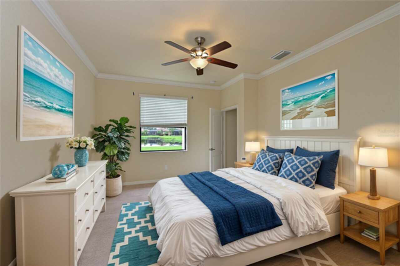 This home is PRICED TO SELL! And the perfect TIME is now! The pool is open, the 8.5 million dollar clubhouse renovation is nearing completion, and the best weather all year is upon us. Soak up stunning WATER VIEWS and the state-of-the-art renovations. The owner renovated the kitchen and painted the interior. The cabinets were custom-painted, and quartz countertops and a matching backsplash were installed. This gem in the Sanctuary of River Strand Golf and Country Club has a social membership. The fees and capital contributions are lower. You can live the River Strand lifestyle AND play golf without higher fees. Have it all…24-hour gated security, cable, wifi, lawn care, trimming, mulch, and much more. The Sanctuary social membership allows you access to all amenities. Golf is pay-to-play based on availability. River Strand Golf & Country Club is a vibrant community with 9 Har-Tru Tennis Courts, 8 Pickleball courts, 2 Resort-Style Pools, 6 Satellite Pools, a 27-hole golf course, the Clubhouse with a restaurant, social events, a Community Center & 2 fitness centers! Convenient location to I-75, a golf cart ride to The Market Place, which includes many popular stores and restaurants to include Target, Costco, Hobby Lobby, Academy Sports, and the upcoming Whole Foods. Enjoy University Town Center, & beaches, Spring Training games, the arts and social scene and much, much more. Come home to River Strand Golf & Country Club and live the Florida lifestyle you have been dreaming of.