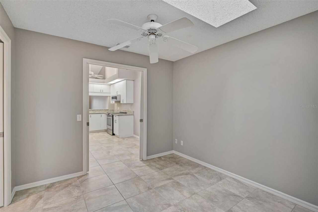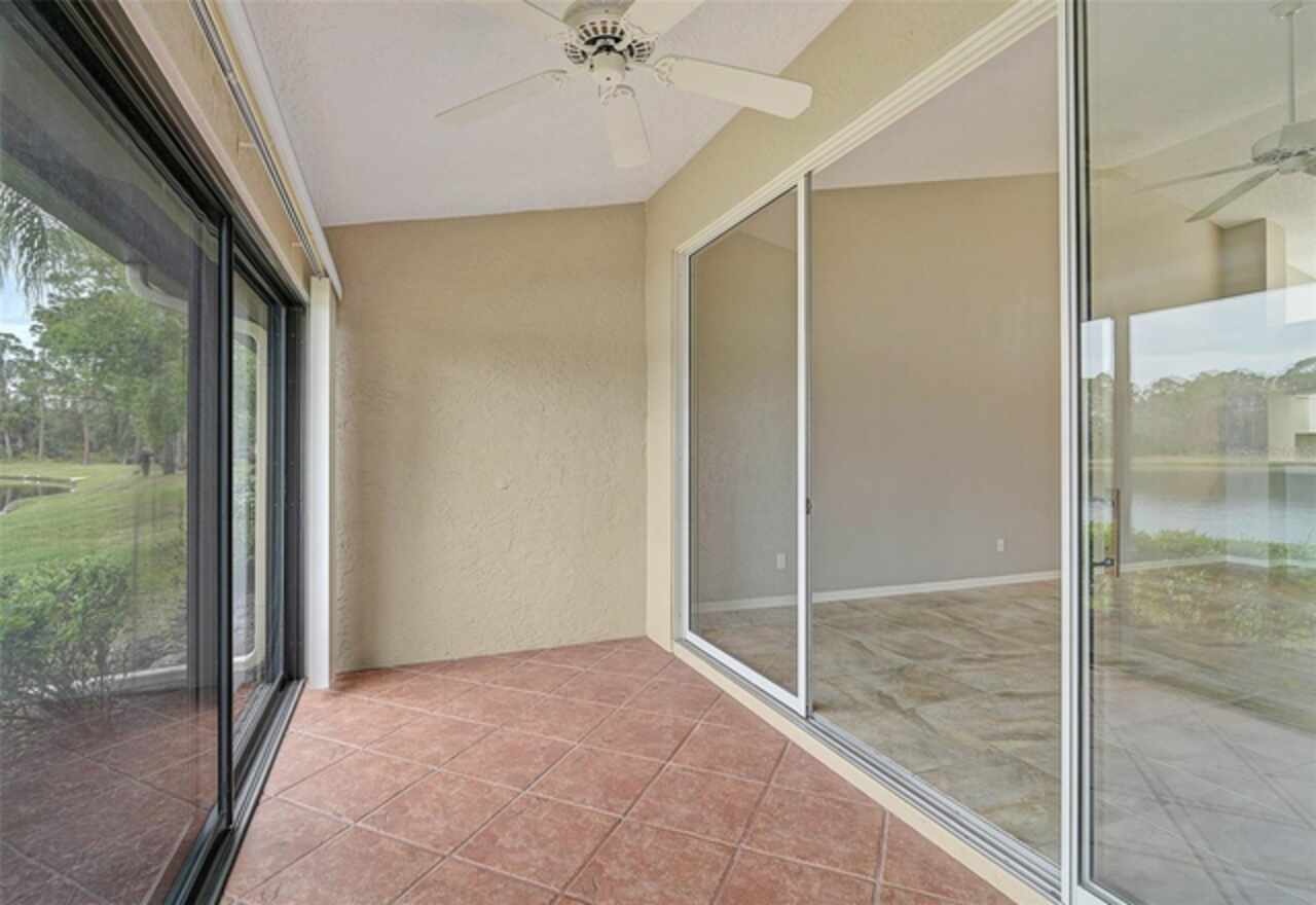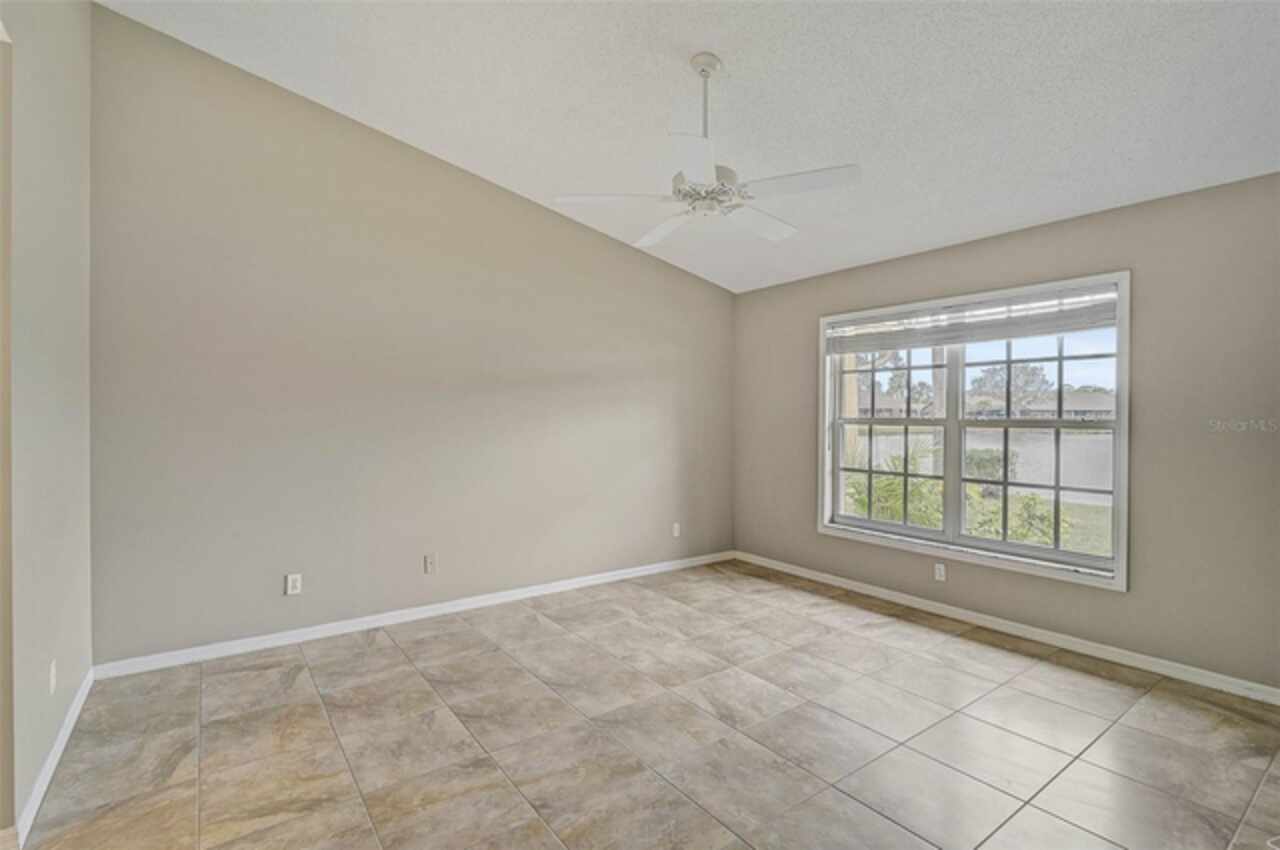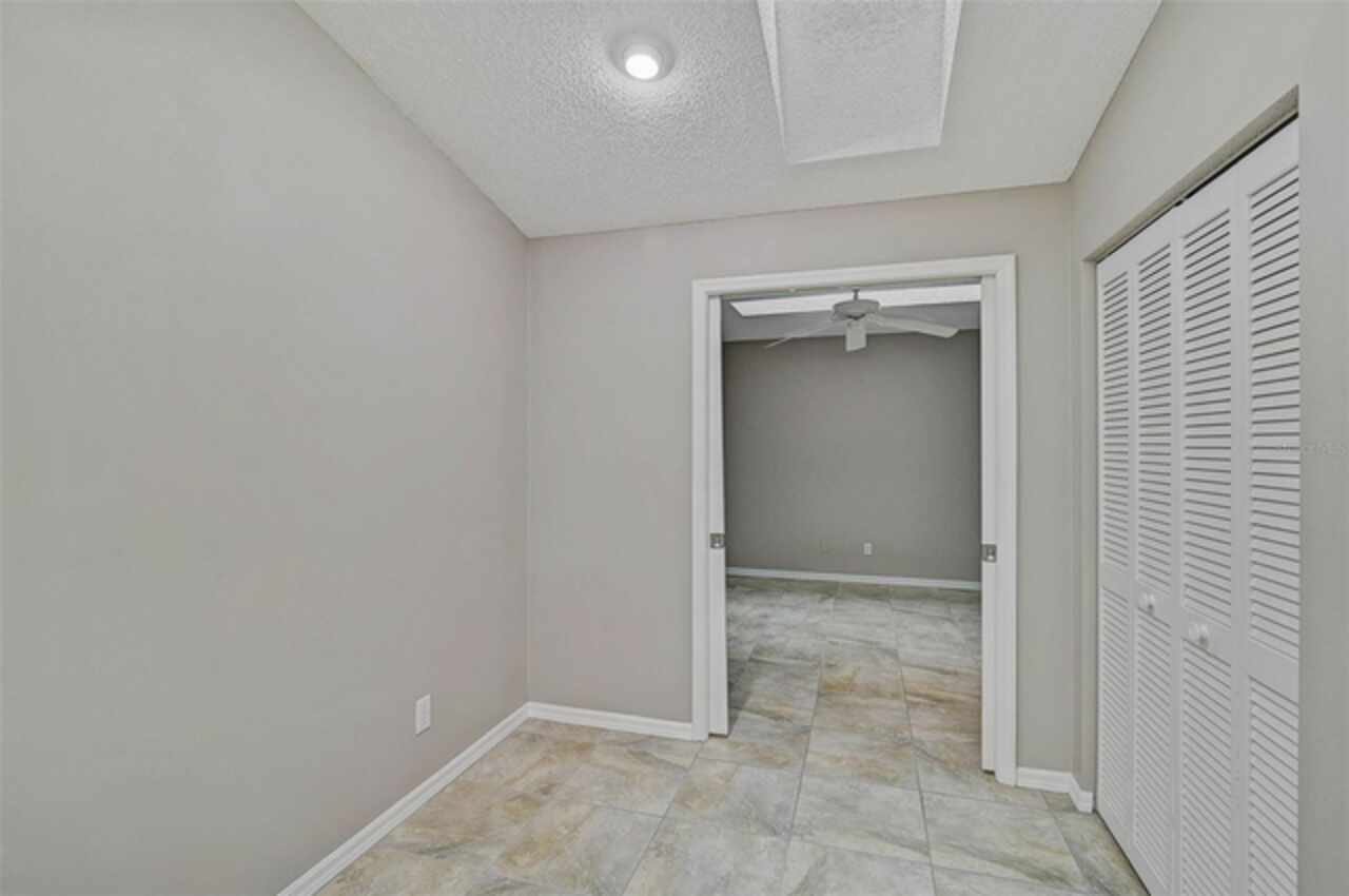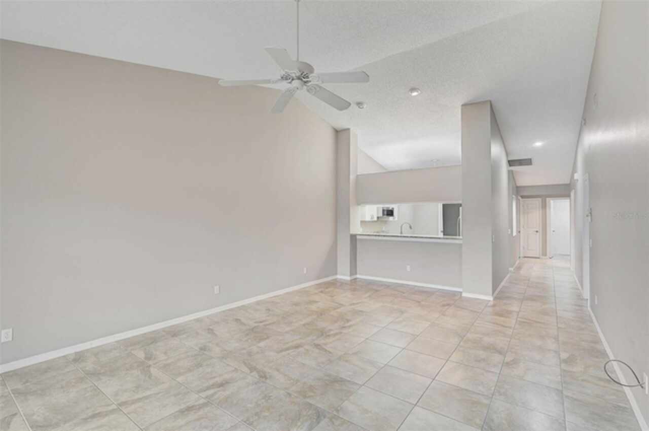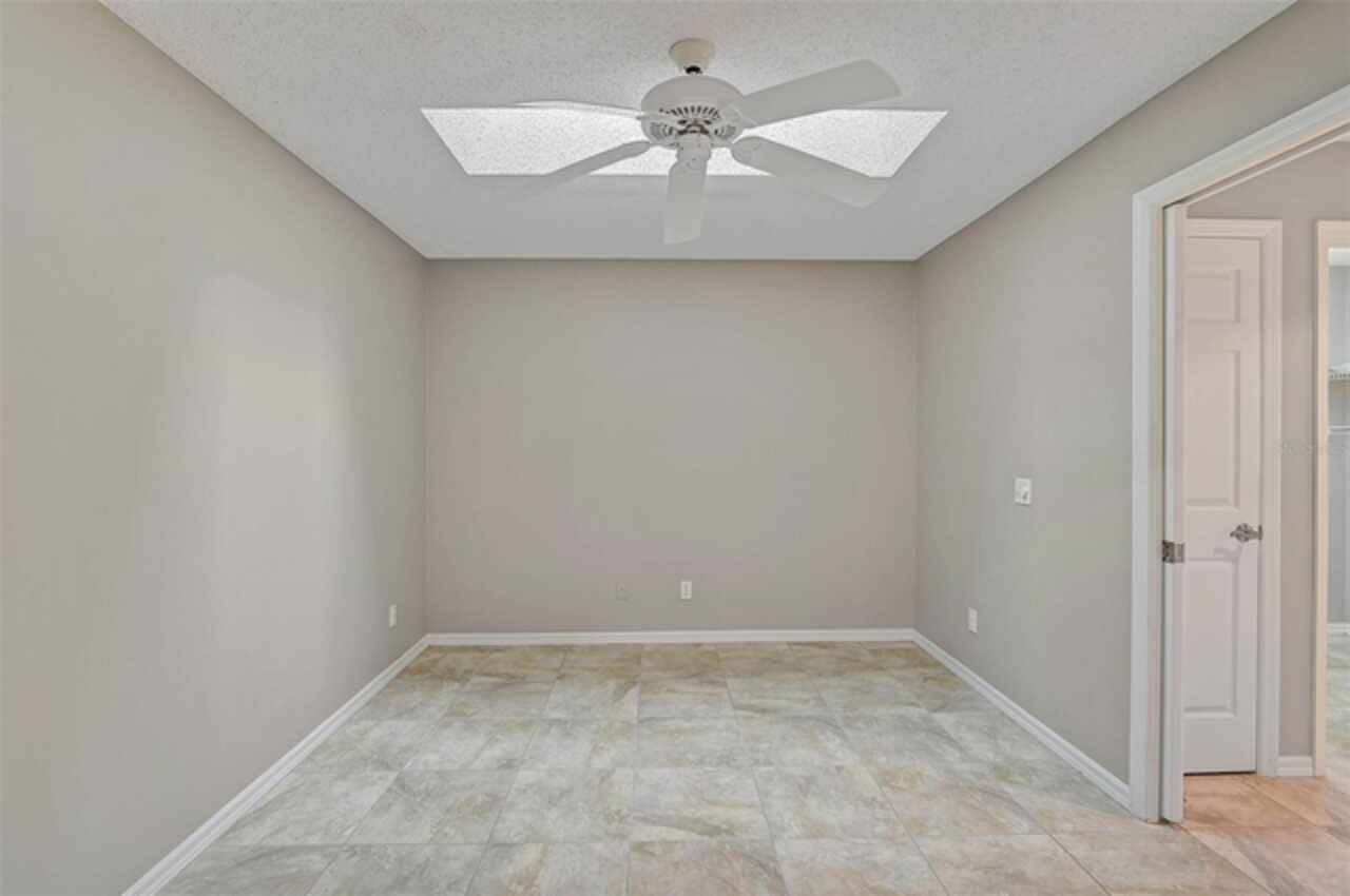 One or more photo(s) has been virtually staged. Wow—what a gem in Woodlake Villas! This well maintained 2-bedroom, 2-bath villa showcases tranquil lake views, soaring vaulted ceilings, and a skylight that fills the space with natural light. A versatile flex room with French pocket doors can easily serve as a home office or formal dining room, while the full 2-car garage provides ample storage and convenience. The kitchen boasts newer stainless-steel appliances and opens seamlessly to the spacious living and dining area—ideal for entertaining or everyday living—with room to add an island or dining table. Stylish tile flooring flows throughout, and ceiling fans in every room ensure year-round comfort. Unwind on the enclosed lanai and enjoy serene sunsets over the lake, or take a short stroll to the heated community pool and gazebo for a peaceful retreat by the water. Woodlake Villas offers an unbeatable location—just minutes from UTC Mall, an array of shopping and dining options, downtown Sarasota, and the area’s award-winning beaches. And here’s the best part: every villa received a brand-new roof in 2024, offering added value and peace of mind. Maintenance of roofs and eaves and common areas of buildings and grounds is the responsibility of the Association. Don’t miss this opportunity to make this exceptional home yours!