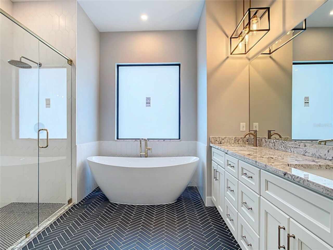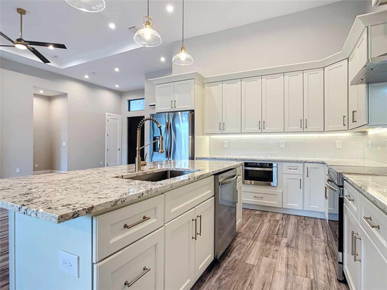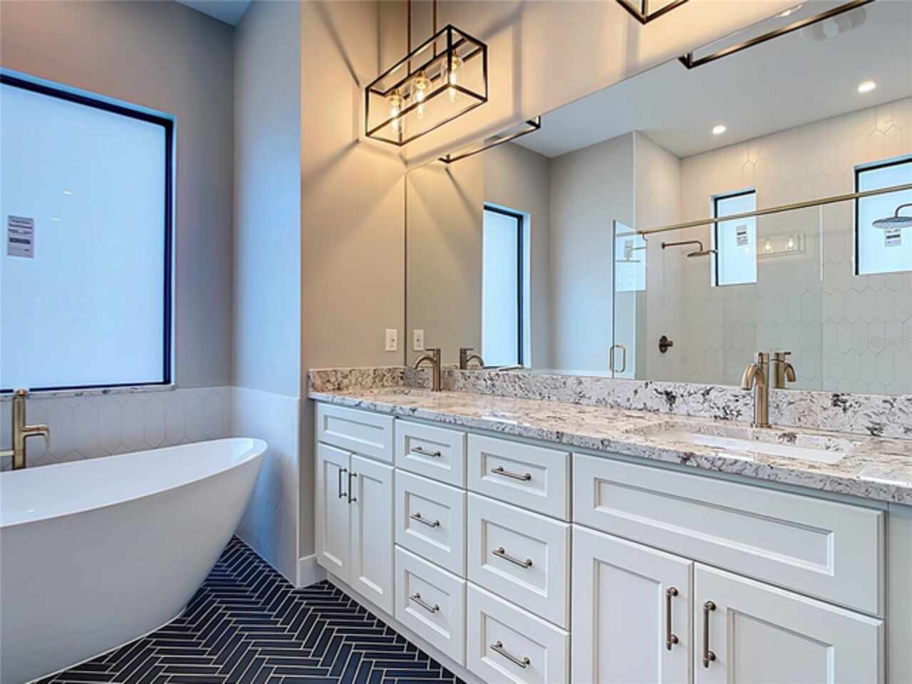 This brand new luxury 3 bedroom, 3-bathroom and a 3 car garage house, is a single-family home that encompasses 2, 150 sq. of open living space with high ceilings. The kitchen has upgraded granite countertops with large counter island, along with a corner pantry and plenty of cabinet space. The Master Bedroom includes his and hers oversized walk-in closet with build in shelves, separate sink vanities, enormous wall-to-wall walk-in shower and private water closet, and oversize free standing bath tub. Guest bedroom with its own ensuite bathroom, build in closet shelves. Ecofriendly, surround with security cameras, HURRICANE PROOF WINDOWS AND DOORS, sound isolation from outside noise, HEATED POOL WITH SPA, and cage enclosed. Large lanai area with space designed for OUTDOOR KITCHEN. GARAGE FLOORS COVERED EXPOXY.