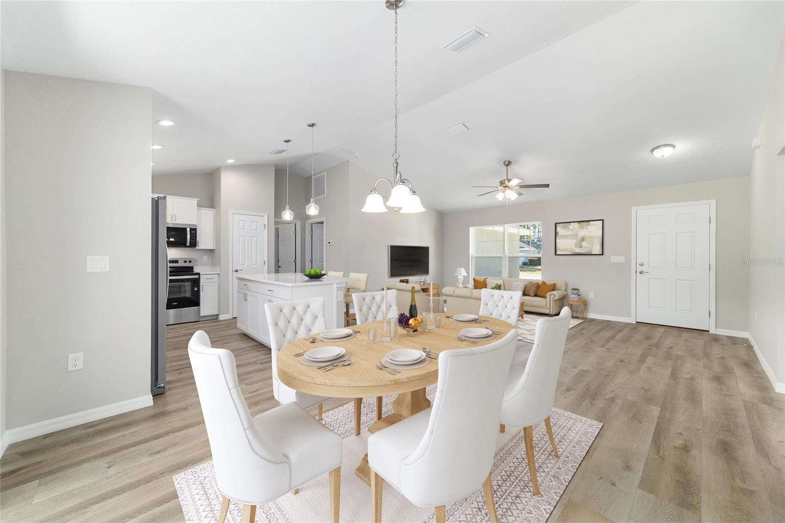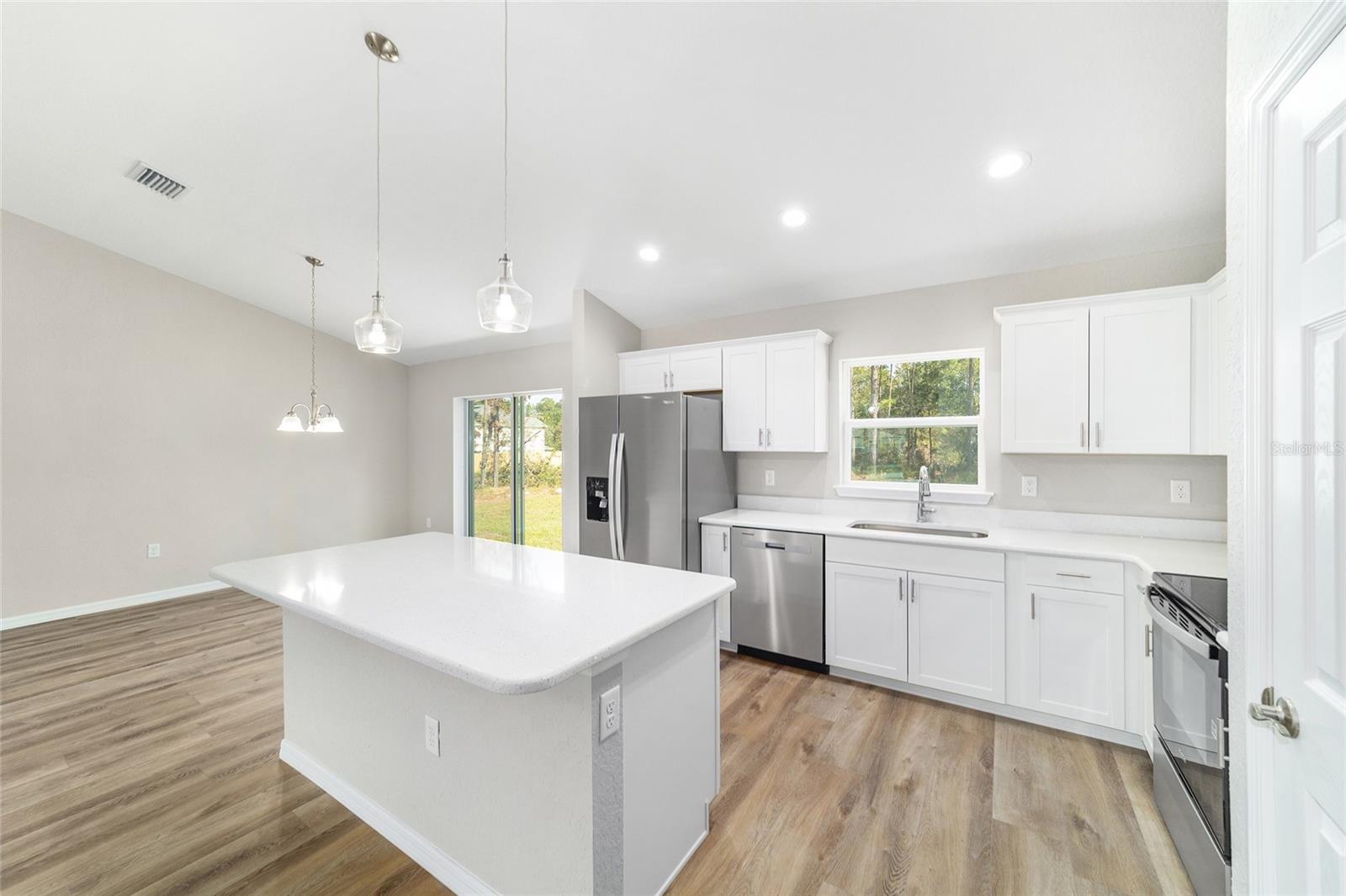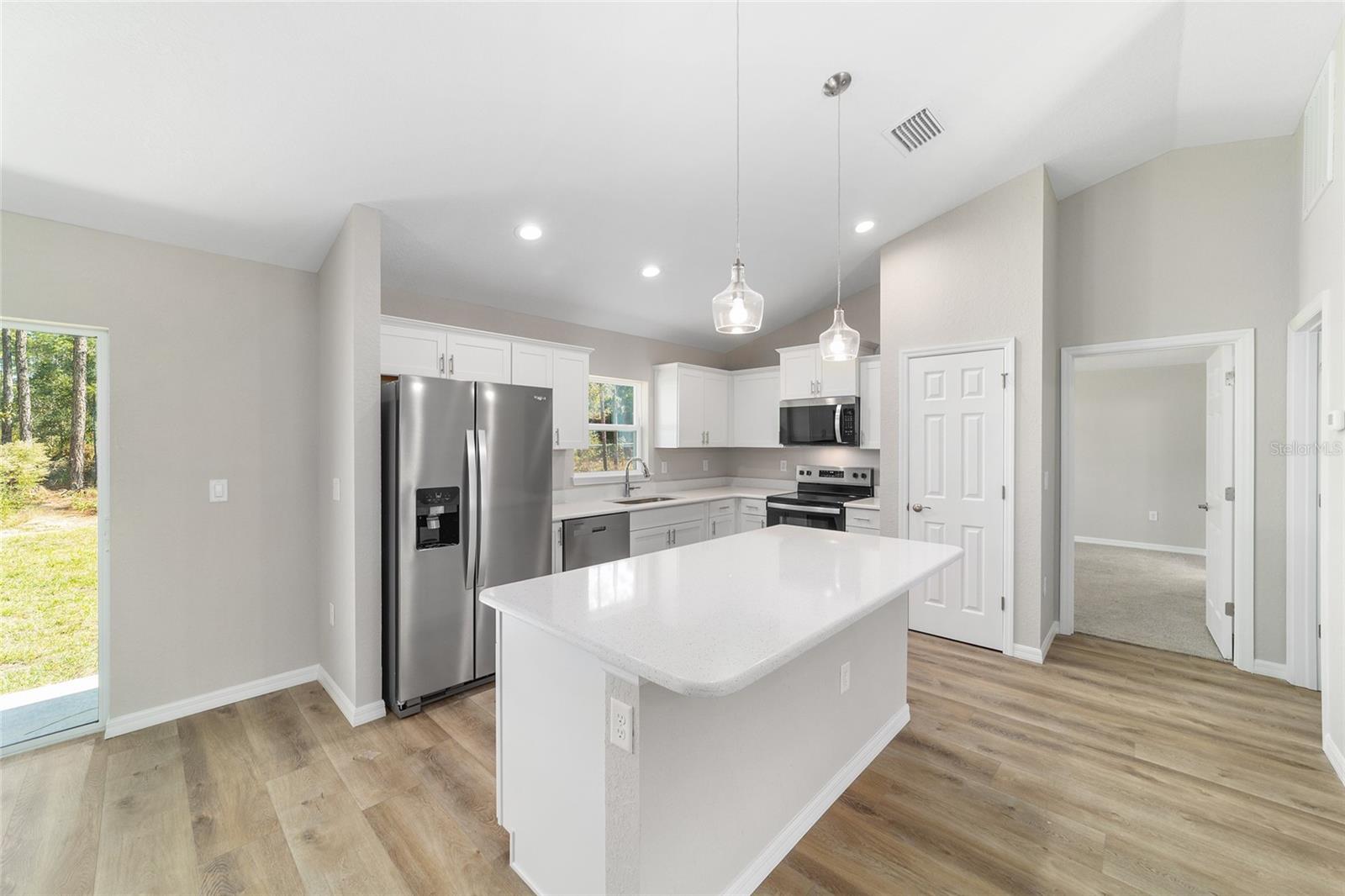 One or more photo(s) has been virtually staged. Fractional Ownership. MOVE IN READY!! Beautiful new construction home in Citrus Springs! Located close to trail heads, river access, and much more. This truly is a great lot surrounded by oak trees and pine trees. Luxury Plank Vinyl flooring throughout all living and common areas, tile in bathrooms, and carpet in the bedrooms. Open floor plan with dining area and eat-in kitchen, all done in neutral, pleasing colors. Inside laundry with W & D hook-ups. Walk-in closet in Master bedroom and large vanity with double sinks in master bath. Stainless steel appliance package in the kitchen. Cabinets are white shaker-style with light luxury quartz countertops. Please see attached documents from Builder (Builders Contract Addendum & Warranty) Actual photos are attached plus virtually staged photos for reference. Citrus Springs is a beautiful community with paved roads, access to trail heads, natural springs and river access, and located centrally to businesses, restaurants, and medical facilities. ***Inquire about our preferred lender deals! Builder offering to contribute to buyer’s closing costs or help with rate buy downs! We can be flexible to help our buyers get into a beautiful home! ***