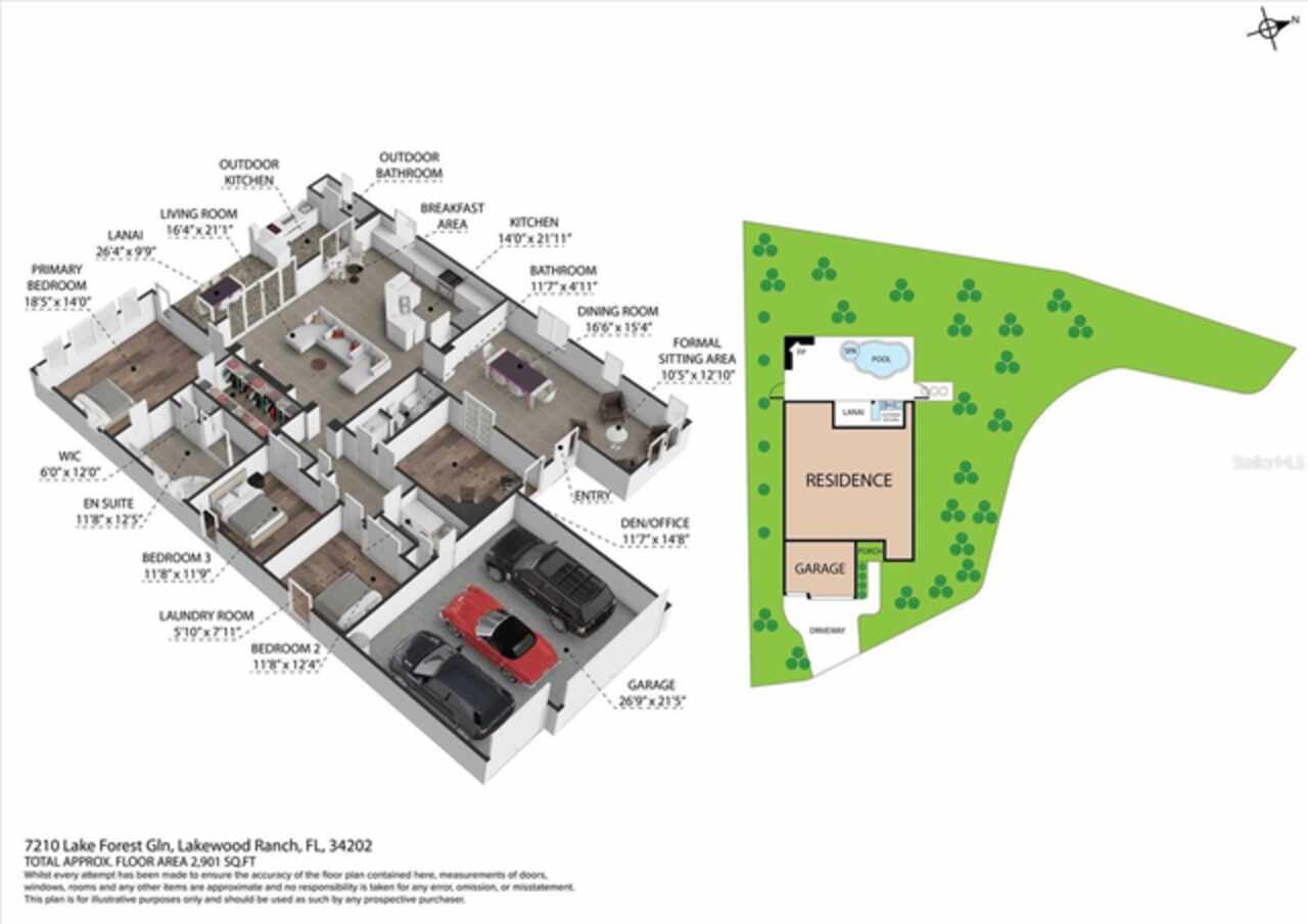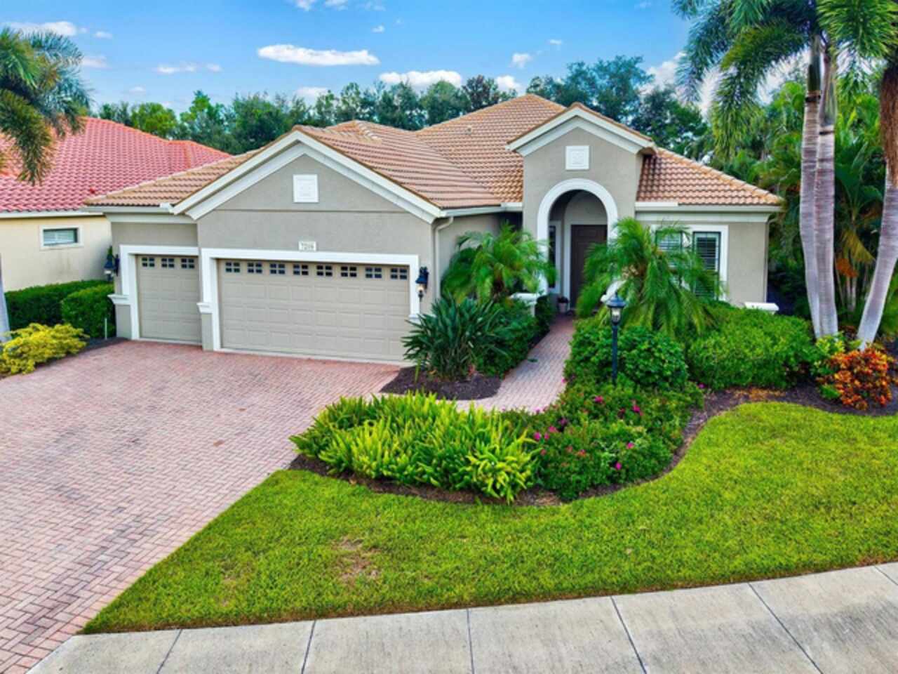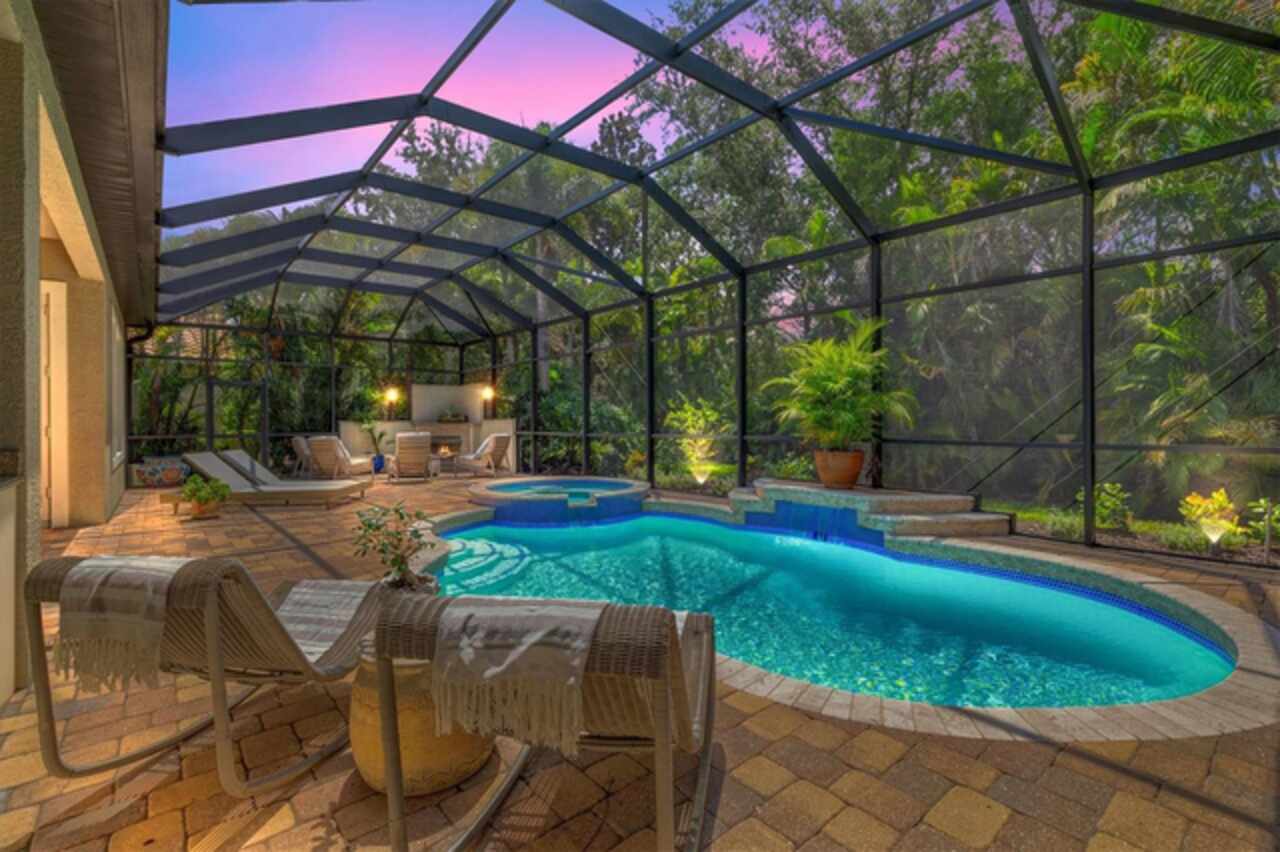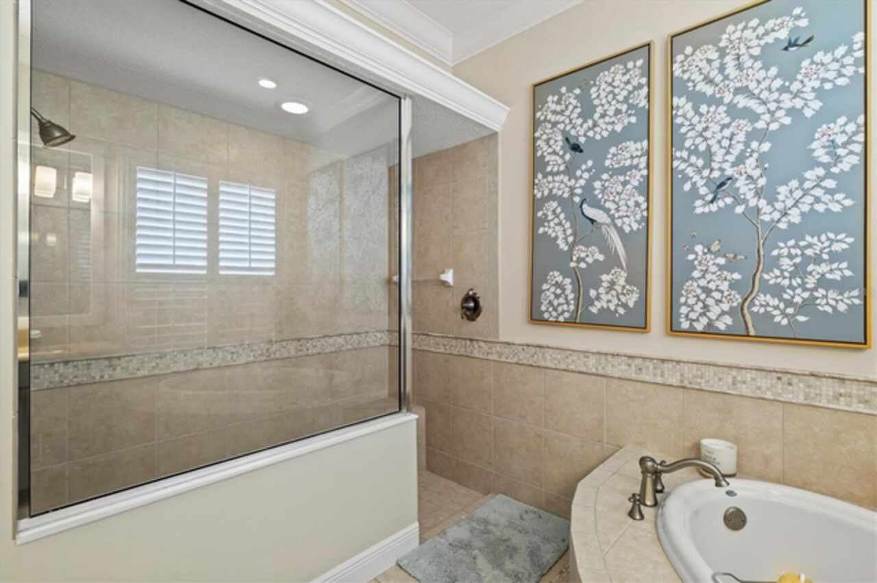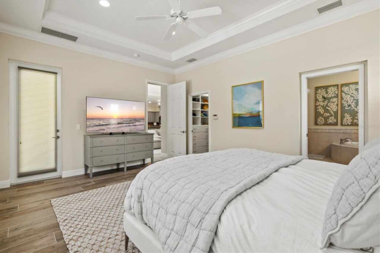 Immaculate Maintenance-Free Home in Stone Ridge at Lakewood Ranch Country Club. Located within the gates of Lakewood Ranch Country Club, this meticulously maintained Savona model by Neal Communities sits on a private oversized cul-de-sac lot. Offering nearly 2, 500 sq. ft. of living space, the home features 3 bedrooms, a den, and a 3-car garage. Step inside to soaring 10-foot ceilings with coffered details, crown molding in every room, plantation shutters, and custom window treatments. Tile floors flow throughout, with wood-look plank tile in the owner’s suite, den, and bedrooms. All lighting and ceiling fans have been thoughtfully updated. The den, accented with glass-pane French doors, provides the perfect home office or quiet retreat. The formal living and dining areas set the tone, while the open-concept family room with custom built-ins and disappearing sliders expands seamlessly to the lanai. The adjoining kitchen showcases upgraded cabinetry with glass-front uppers, granite countertops, stainless-steel appliances, a built-in desk, breakfast bar, and casual dining nook. The spacious owner’s suite offers lanai access, a sitting area, and an en suite bath with soaking tub, dual vanities, walk-in shower, private water closet, and a custom-fitted walk-in closet. Outdoor living is unmatched here. This home boasts the largest lanai in the neighborhood, highlighted by a sparkling pool and spa, custom gas fireplace, lush landscaping, and complete privacy. The outdoor kitchen features granite counters, a gas grill, side burner, refrigerator, and sink. A covered dining space, cabana bath, and outdoor shower make this a true retreat for relaxing or entertaining. Membership at Lakewood Ranch Country Club is optional, but available, with access to golf, tennis, fitness, dining, and resort-style pools. All this, just minutes from award-winning beaches, fine dining, and world-class shopping.