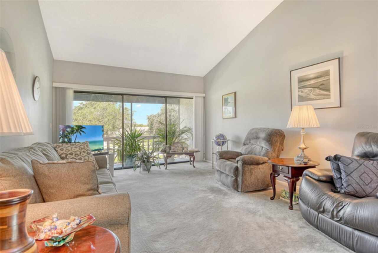 Lakeside Club of Sarasota, move-in ready! This spacious second-floor two-bedroom, two-bath condominium features vaulted ceilings and a large screened lanai overlooking a serene lagoon and preserve. The open-concept living and dining area flows seamlessly to the private outdoor spaces, creating an environment for relaxation and entertaining. Enjoy your morning coffee on the front patio and unwind in the fully enclosed back lanai with tranquil pond views and a manicured green lawn just beyond. Ideally in the desirable Gulf Gate area, just 12 minutes from the nation’s No. 1 beach, Siesta Key, this well-maintained home offers a blend of comfort and convenience. Recent updates include a new roof and skylights (2025), PGT hurricane windows on the east side, a new air conditioner with heat pump and water heater (2023), and a refrigerator replaced in 2025. The stackable washer/dryer and range are only five years old. Community amenities include tennis courts, a clubhouse, a refreshing pool and covered carport parking. You'll love the proximity to the new Gulf Gate Library, popular restaurants, shopping and everything Sarasota has to offer. Whether you're looking for a full-time residence or a winter retreat, this condominium is must-see. Schedule a showing today.