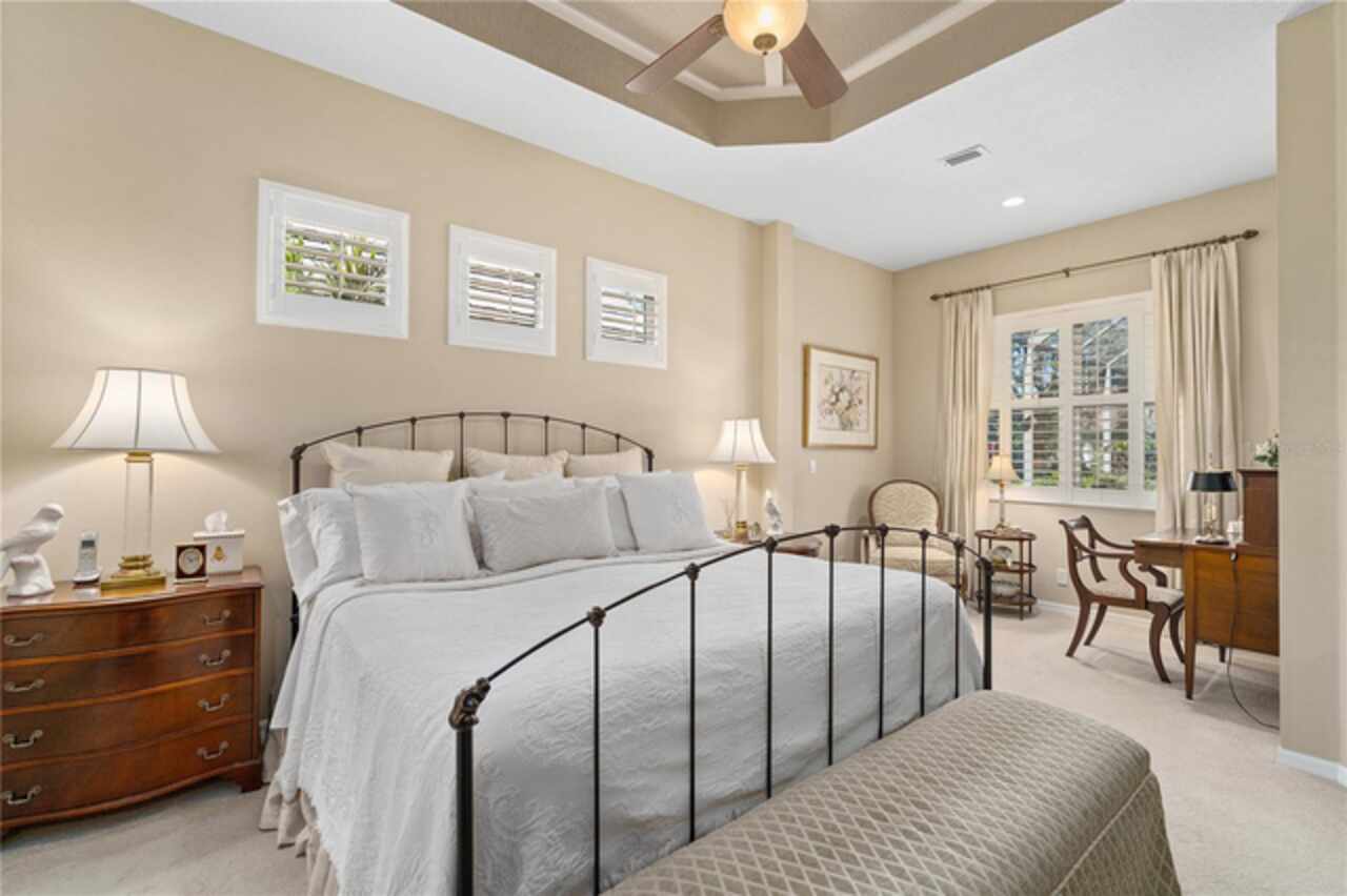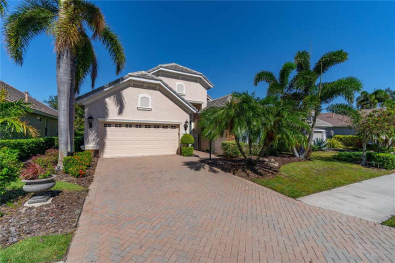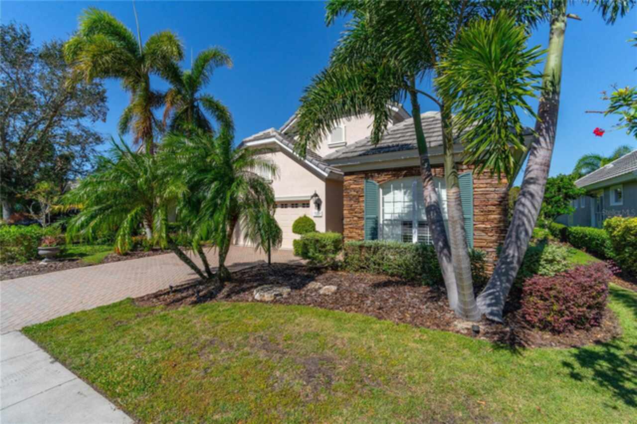 Nestled behind the gates of the exclusive Lakewood Ranch Golf and Country Club, this exquisite home offers both elegance and comfort. Featuring a spacious open floor plan, this 2-bedroom, 2-bathroom home with a den/study boasts custom built-in cabinetry in the great room. The separate dining area flows seamlessly into a gourmet kitchen equipped with high-end stainless steel appliances, ideal for any home chef. The expansive primary bedroom provides ample space for a cozy sitting area and showcases beautiful tray ceilings. The luxurious en suite is designed with a five-piece layout, offering both style and function. Throughout the home, you'll find a neutral color palette and stunning plantation shutters. Additional features include tray ceilings, a brick-paved driveway, and a screened-in lanai that overlooks the serene pond. The spacious pool area is perfect for relaxation or entertaining. Optional social or golf memberships add extra leisure to your lifestyle, whether you're enjoying a day on the course or hosting friends for cocktails by the pool. This home truly offers the best of both worlds.