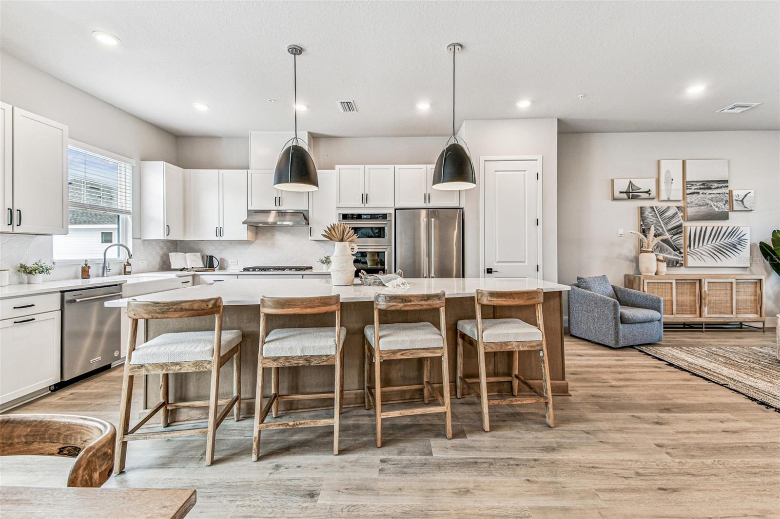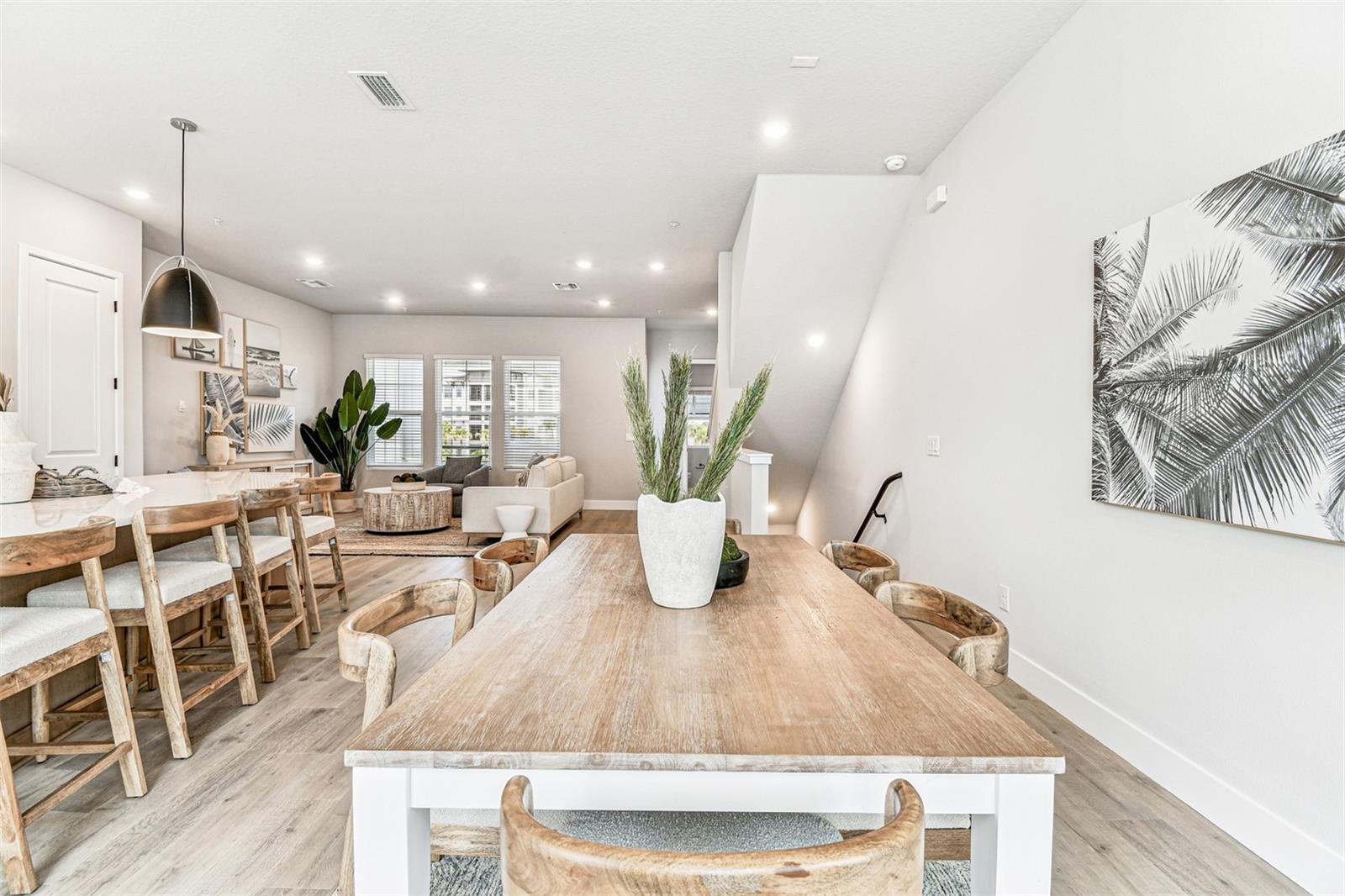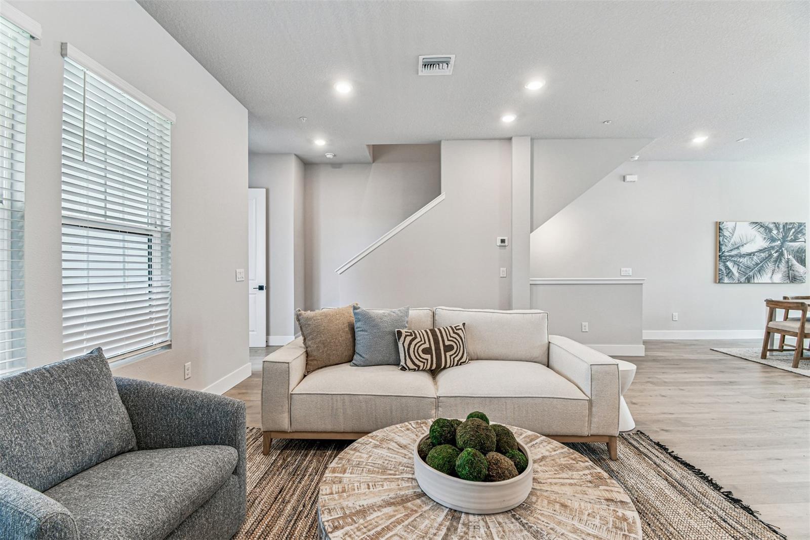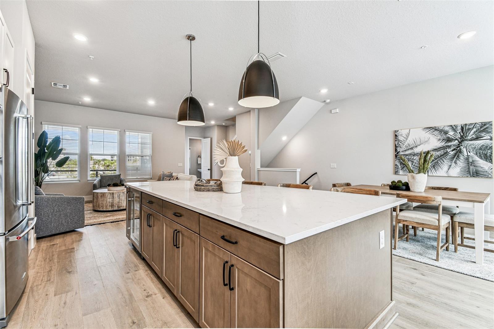 Fully FURNISHED City Home! Live the Florida lifestyle in this stunning “Rainwater” floor plan by David Weekley Homes, located in Emerald Landing at Waterside Place—one of Lakewood Ranch’s most walkable and amenity-rich communities. This North-facing City Home offers a beautifully landscaped, fenced-in front entry with pavers and peaceful views of a pond filled with native wildlife—your own private space to relax and unwind. Step inside to a bright first-floor study with French doors, creating an open yet private space ideal for a home office or flex room. The oversized rear-entry garage fits two cars with room to spare for a golf cart or storage under the stairs—rare for a townhome. The second-floor features soaring 10-foot ceilings and an expansive open-concept living area, fully decorated with stylish, modern furnishings and designer finishes throughout. The designer kitchen includes a gas cooktop with custom vent hood, built-in oven and microwave, wine fridge, and premium KitchenAid appliances (refrigerator, dishwasher, microwave). A stylish balcony overlooks the water, and a convenient half bath completes the main living level. Upstairs on the third floor, the luxurious Owner’s Retreat features a spacious walk-in closet and an upgraded Super Shower in the en suite bath. A second bedroom with its own private bath and a laundry room round out the top floor. Resort-style amenities include Resort Style Pool (heated during colder months), Lakefront fire pit, Pickleball courts, Dog park, Mini clubhouse, Private dock with water taxi access, Direct sidewalk access to Waterside Place's restaurants, shops, and events. Worry-free living with HOA coverage for landscaping, irrigation, exterior maintenance, and roof. Located in a gas community in Flood Zone X—no flood insurance required and stayed dry during the last hurricane season. This is a rare opportunity to own a fully decorated, water-view townhome just steps from everything Lakewood Ranch has to offer. Don’t miss out!