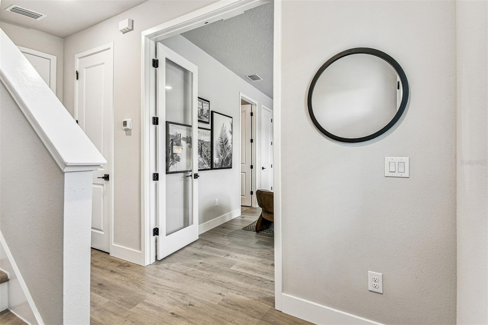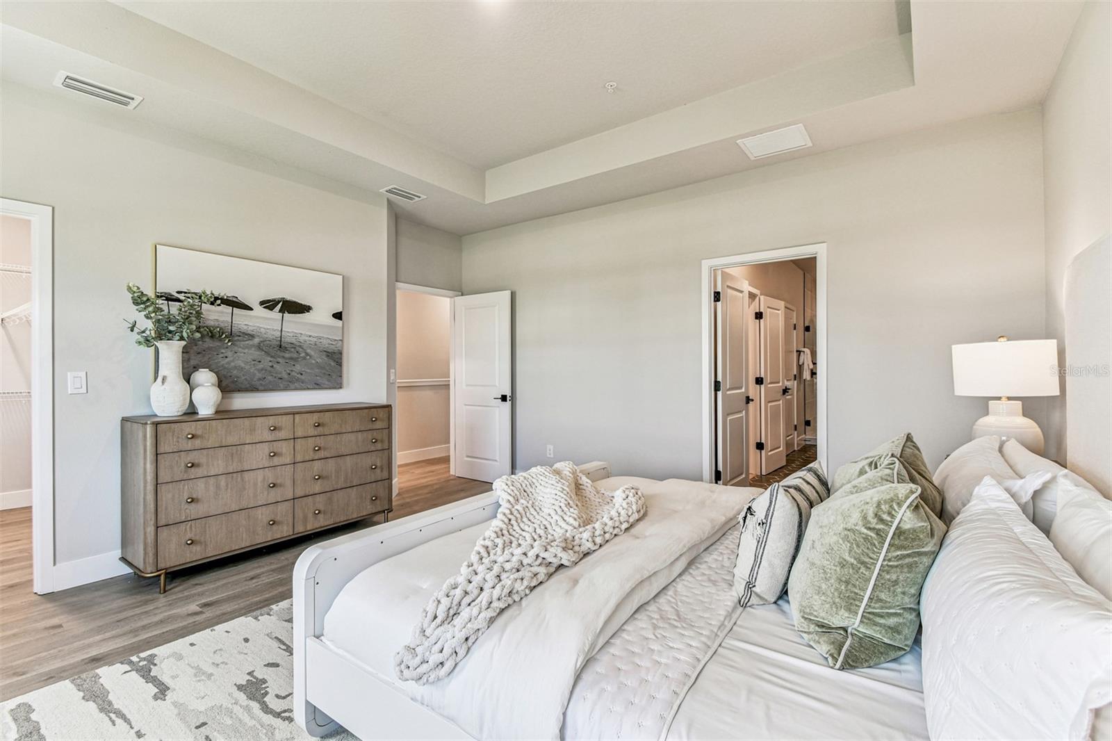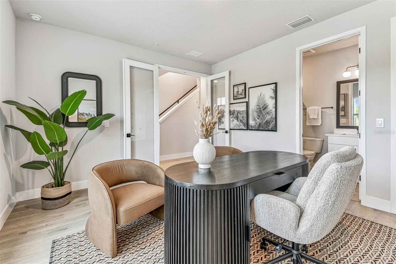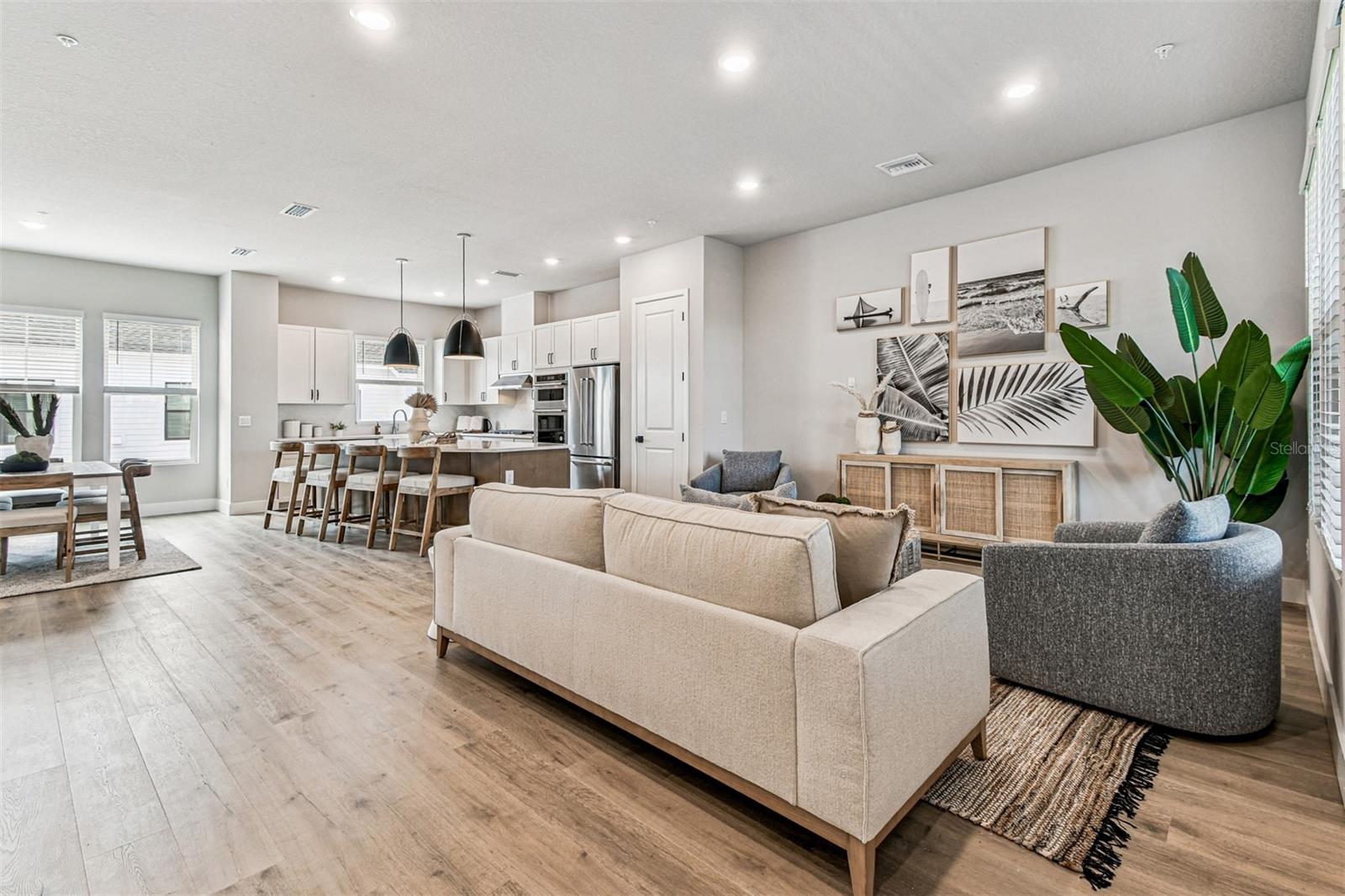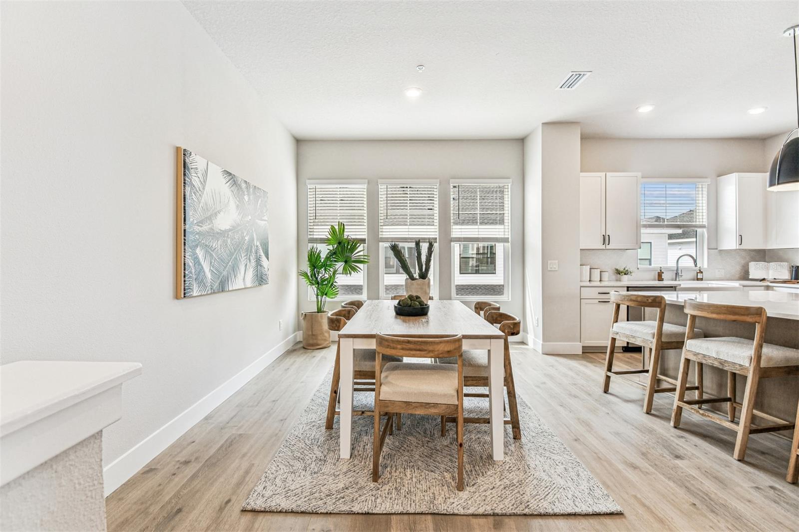 Fully FURNISHED City Home! Live the Florida lifestyle in this stunning “Rainwater” floor plan by David Weekley Homes, located in Emerald Landing at Waterside Place—one of Lakewood Ranch’s most walkable and amenity-rich communities. This North-facing City Home offers a beautifully landscaped, fenced-in front entry with pavers and peaceful views of a pond filled with native wildlife—your own private space to relax and unwind. Step inside to a bright first-floor study with French doors, creating an open yet private space ideal for a home office or flex room. The oversized rear-entry garage fits two cars with room to spare for a golf cart or storage under the stairs—rare for a townhome. The second-floor features soaring 10-foot ceilings and an expansive open-concept living area, fully decorated with stylish, modern furnishings and designer finishes throughout. The designer kitchen includes a gas cooktop with custom vent hood, built-in oven and microwave, wine fridge, and premium KitchenAid appliances (refrigerator, dishwasher, microwave). A stylish balcony overlooks the water, and a convenient half bath completes the main living level. Upstairs on the third floor, the luxurious Owner’s Retreat features a spacious walk-in closet and an upgraded Super Shower in the en suite bath. A second bedroom with its own private bath and a laundry room round out the top floor. Resort-style amenities include Resort Style Pool (heated during colder months), Lakefront fire pit, Pickleball courts, Dog park, Mini clubhouse, Private dock with water taxi access, Direct sidewalk access to Waterside Place's restaurants, shops, and events. Worry-free living with HOA coverage for landscaping, irrigation, exterior maintenance, and roof. Located in a gas community in Flood Zone X—no flood insurance required and stayed dry during the last hurricane season. This is a rare opportunity to own a fully decorated, water-view townhome just steps from everything Lakewood Ranch has to offer. Don’t miss out!