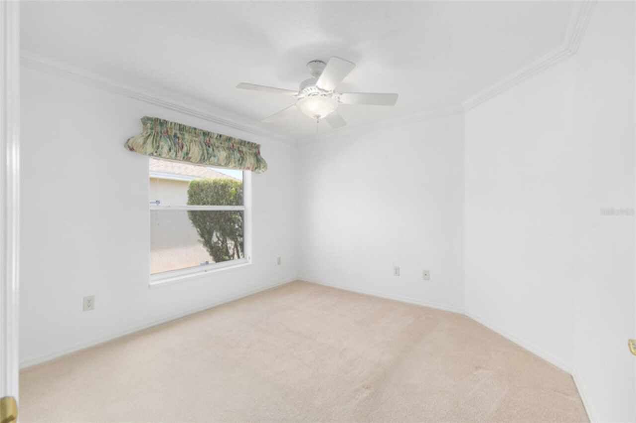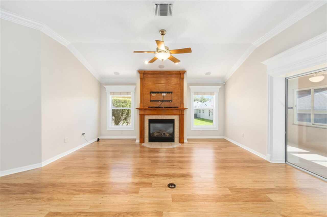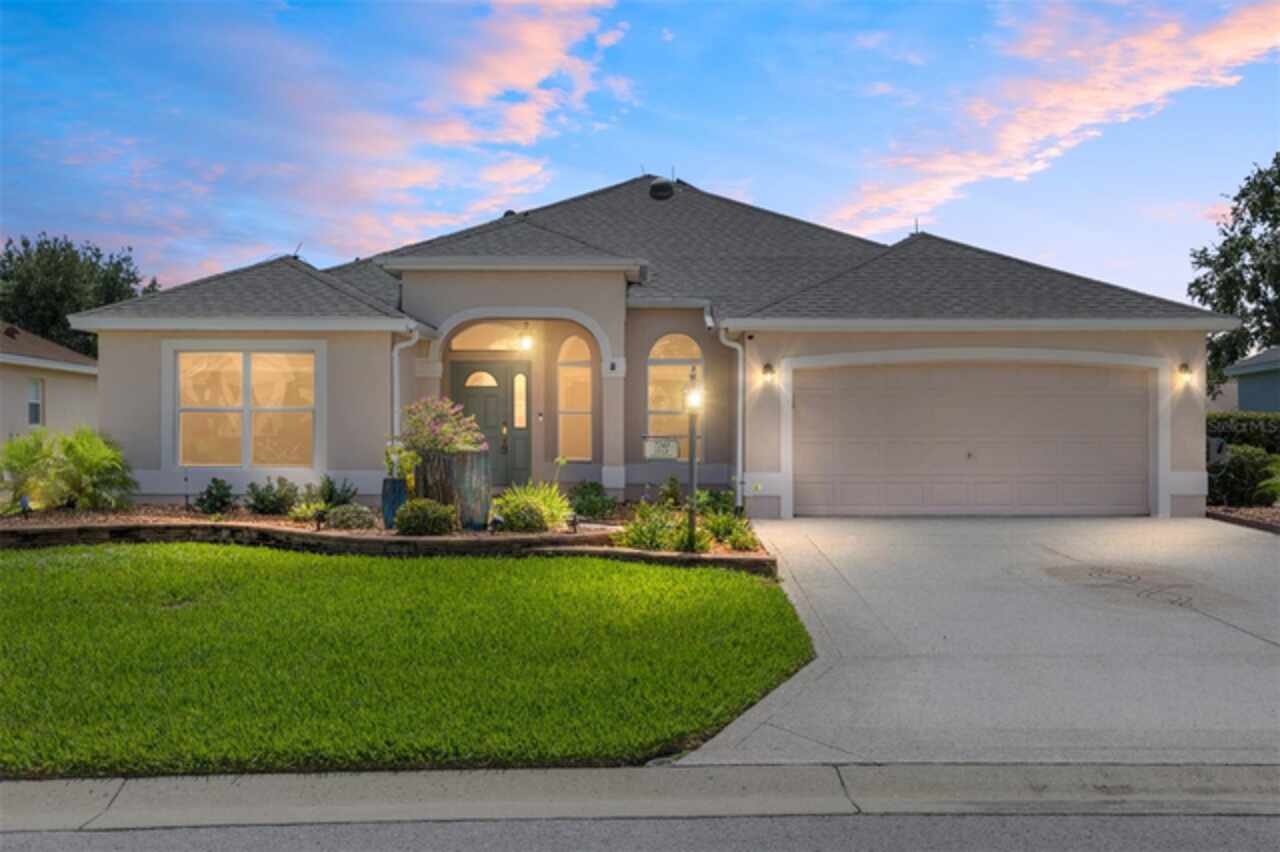 NO BOND~NEW ROOF 2025~NEW 3 TON HVAC 2012~WHOLE HOUSE GENERATOR~ADT SECURITY SYSTEM. This stunning and well maintained Designer model is concrete block and stucco, located in popular area of Chatham in The Villages. From the moment you arrive, you’ll notice the care and detail that set this home apart. The spacious kitchen is a chef’s dream, featuring upgraded stainless steel appliances, solid surface countertops, wood cabinetry, under-cabinet lighting, a built-in pantry with sliding drawers, recessed lighting, a central island, breakfast bar, and a cozy eat-in nook. Perfectly open to the dining and living areas, this layout is ideal for holiday gatherings and entertaining. Enjoy soaring ceilings and a gas fireplace in the expansive living room, which flows seamlessly into the enclosed Florida room, where insulated windows and fully retractable sliding glass doors provide abundant natural light and a perfect blend of indoor-outdoor living. The Florida room is a warm and cozy space to enjoy your morning coffee, a glass of wine, or watch sports. The spacious primary suite offers a peaceful retreat with double walk-in closets designed with custom built ins, a generous en suite bathroom featuring dual sinks, a makeup vanity, walk-in shower, and a generous linen closet. Crown molding, solar tubes, recessed lighting, and luxury vinyl flooring add elegance and easy maintenance throughout the home. Lightning Protection System & Air Filter System, Fresh Interior Paint, Treed Buffer Behind the Home for Added Privacy. Garage Storage Cabinets and furniture as pictured are included! Located close to the NEW FIRST RESPONDERS, as well as the MULBERRY GROVE Pool and Rec Center. A quick golf cart ride to world class golfing, NANCY LOPEZ LEGACY Championship Golf Course & GLENVIEW Championship Golf Course. Nearby Mulberry Grove is full of restaurants, shopping, entertainment & medical. Schedule your tour today and start enjoying The Villages lifestyle!
