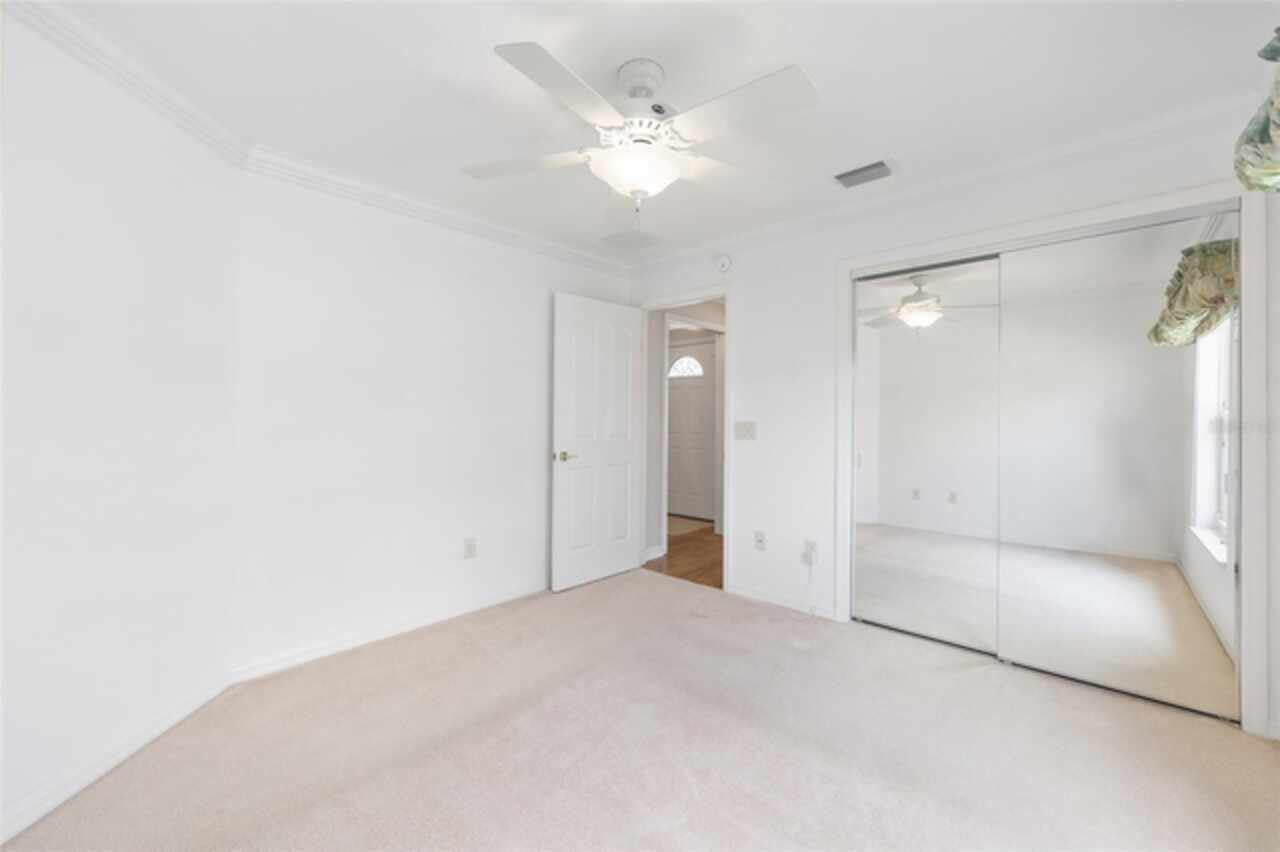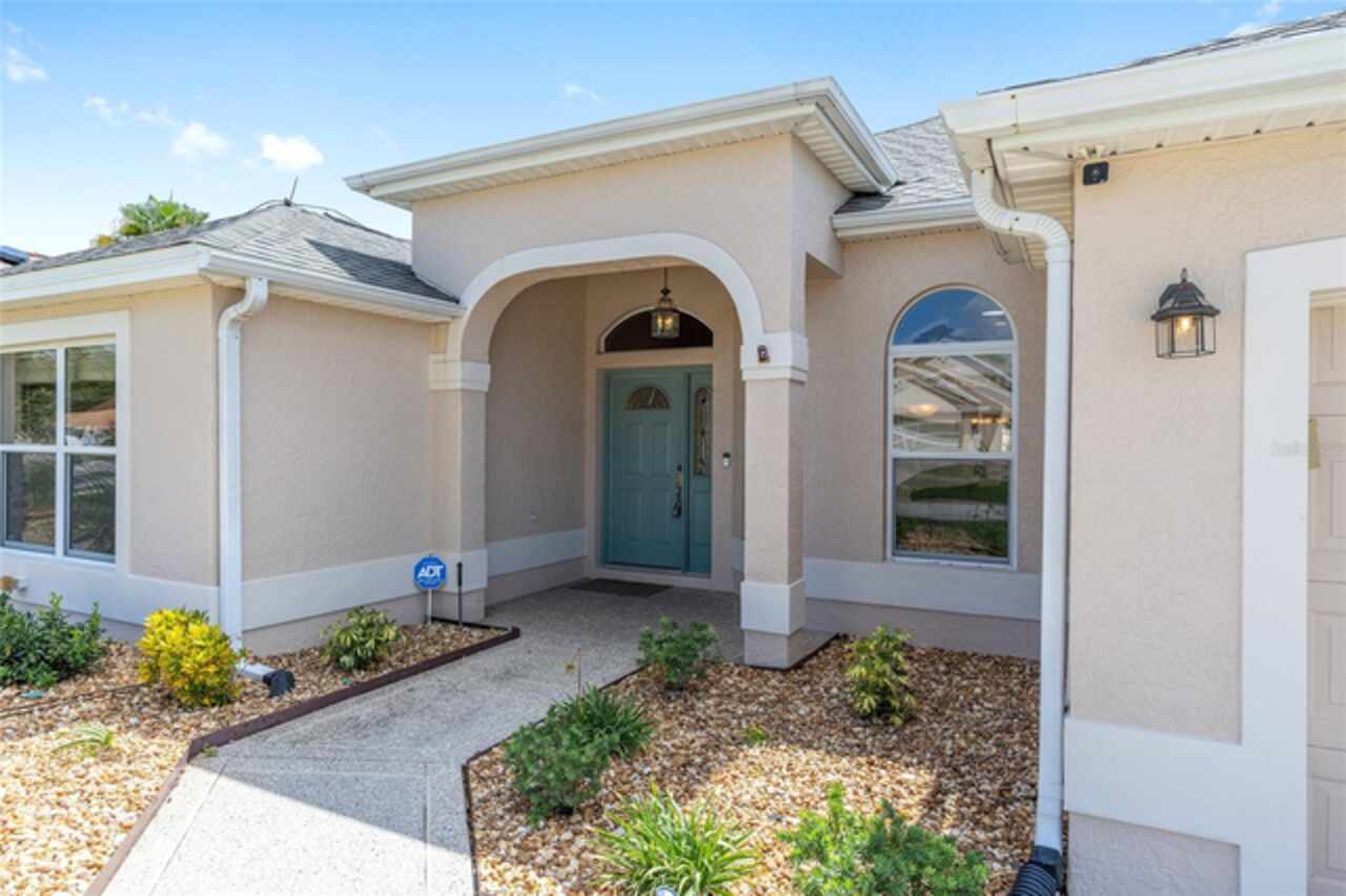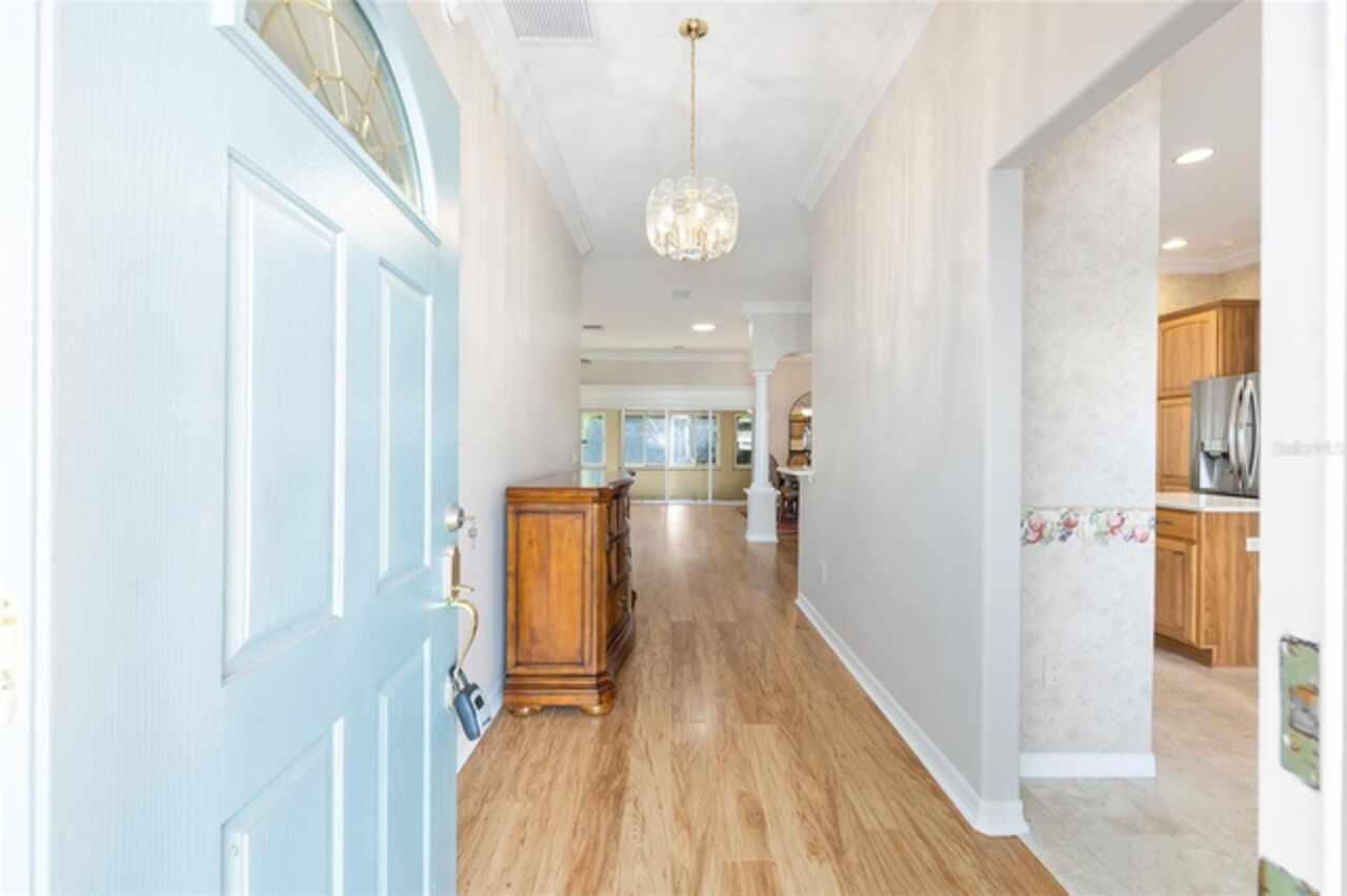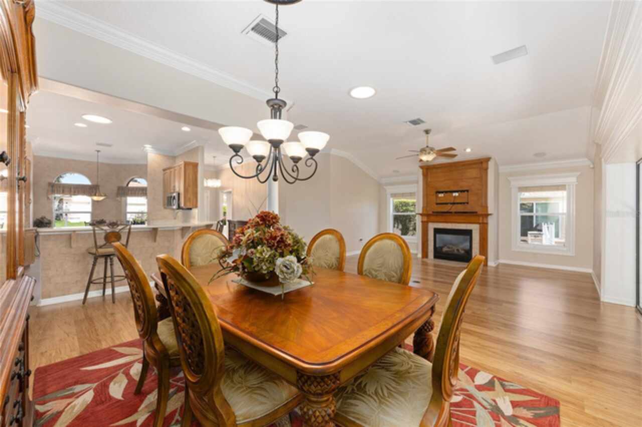 NO BOND~NEW ROOF 2025~NEW 3 TON HVAC 2012~WHOLE HOUSE GENERATOR~ADT SECURITY SYSTEM. This stunning and well maintained Designer model is concrete block and stucco, located in popular area of Chatham in The Villages. From the moment you arrive, you’ll notice the care and detail that set this home apart. The spacious kitchen is a chef’s dream, featuring upgraded stainless steel appliances, solid surface countertops, wood cabinetry, under-cabinet lighting, a built-in pantry with sliding drawers, recessed lighting, a central island, breakfast bar, and a cozy eat-in nook. Perfectly open to the dining and living areas, this layout is ideal for holiday gatherings and entertaining. Enjoy soaring ceilings and a gas fireplace in the expansive living room, which flows seamlessly into the enclosed Florida room, where insulated windows and fully retractable sliding glass doors provide abundant natural light and a perfect blend of indoor-outdoor living. The Florida room is a warm and cozy space to enjoy your morning coffee, a glass of wine, or watch sports. The spacious primary suite offers a peaceful retreat with double walk-in closets designed with custom built ins, a generous en suite bathroom featuring dual sinks, a makeup vanity, walk-in shower, and a generous linen closet. Crown molding, solar tubes, recessed lighting, and luxury vinyl flooring add elegance and easy maintenance throughout the home. Lightning Protection System & Air Filter System, Fresh Interior Paint, Treed Buffer Behind the Home for Added Privacy. Garage Storage Cabinets and furniture as pictured are included! Located close to the NEW FIRST RESPONDERS, as well as the MULBERRY GROVE Pool and Rec Center. A quick golf cart ride to world class golfing, NANCY LOPEZ LEGACY Championship Golf Course & GLENVIEW Championship Golf Course. Nearby Mulberry Grove is full of restaurants, shopping, entertainment & medical. Schedule your tour today and start enjoying The Villages lifestyle!