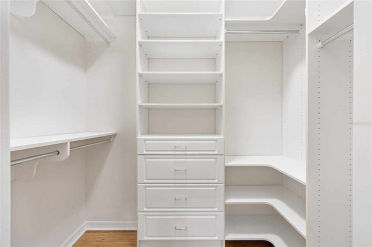 Ceiling Fans(s), Crown Molding, Eat-in Kitchen, High Ceilings, Living Room/Dining Room Combo, Open Floorplan, Primary Bedroom Main Floor, Solid Surface Counters, Solid Wood Cabinets, Split Bedroom, Thermostat, Walk-In Closet(s)