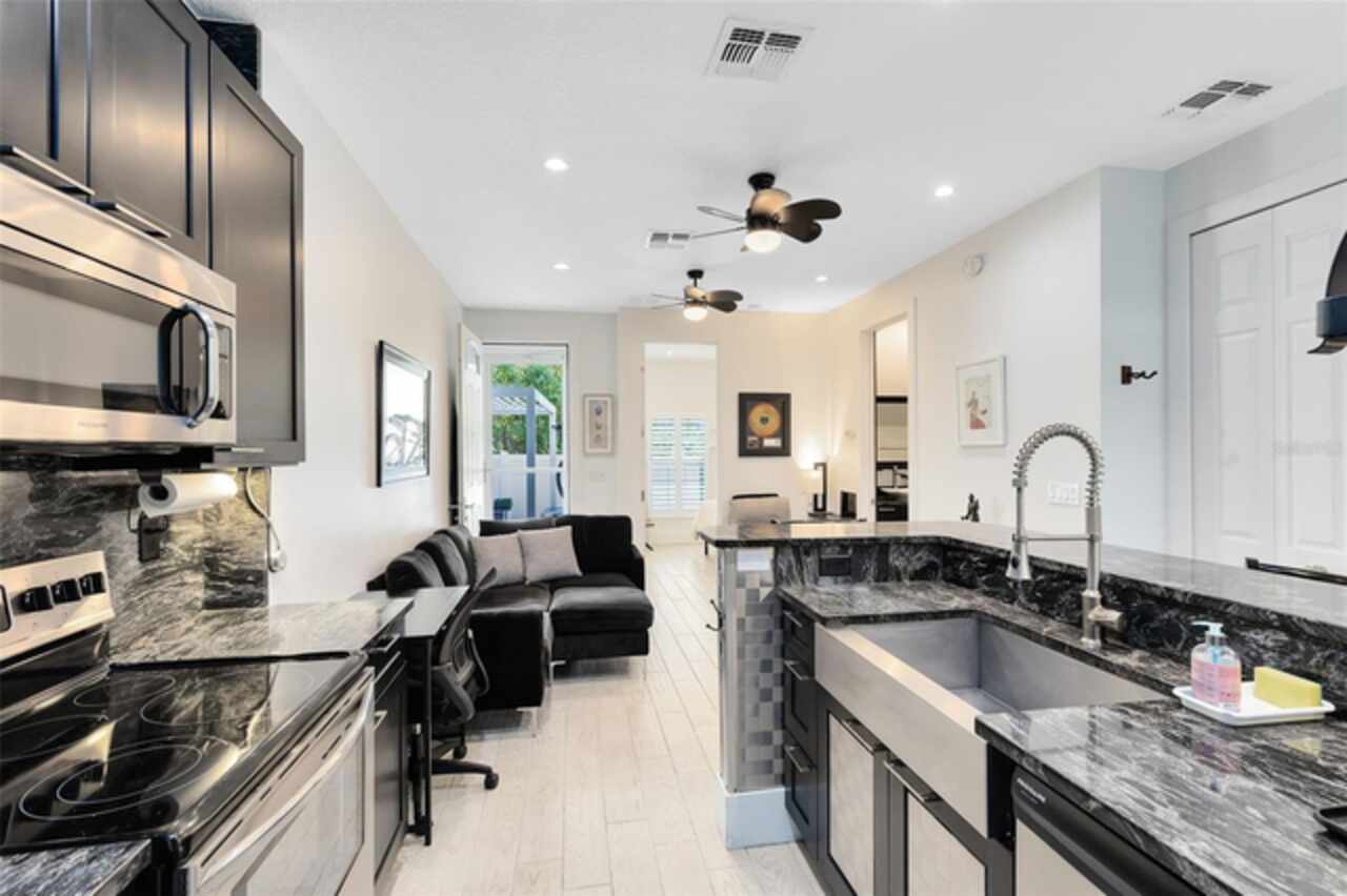 Welcome to this beautifully designed 3-bedroom, 2-bathroom home, offering a blend of modern elegance and prime location. The gourmet kitchen boasts 42” black cabinets, granite countertops, a decorative backsplash, and stainless steel appliances, making it a stunning focal point of the home. The open-concept dining and living room create a spacious feel, while ceramic tile and wood floors enhance the home's stylish appeal. The first-floor primary suite provides convenience and privacy, while the laundry room is strategically located behind the kitchen. Upstairs, you’ll find an additional living area, two bedrooms, and a full bathroom, offering a flexible layout for guests or family. Step outside to the paved backyard patio, enclosed by a private vinyl fence, perfect for relaxing or entertaining. This home is a rare find in Winter Park, walking distance to Park Ave and Winter Park Golf Course, offering easy access to the best dining, shopping, and outdoor recreation. It is also near Rollins College, Winter Park Village, and the train station, making it an unbeatable location for both convenience and lifestyle. This property can be purchased separately or together with the attached home at 720 N Pennsylvania Ave— and even offers owner financing options—making it an ideal opportunity for an income-producing investment, multigenerational living, or a private in-law or student suite. Don’t miss this incredible opportunity in one of Winter Park’s most sought-after locations, Schedule your private showing today!