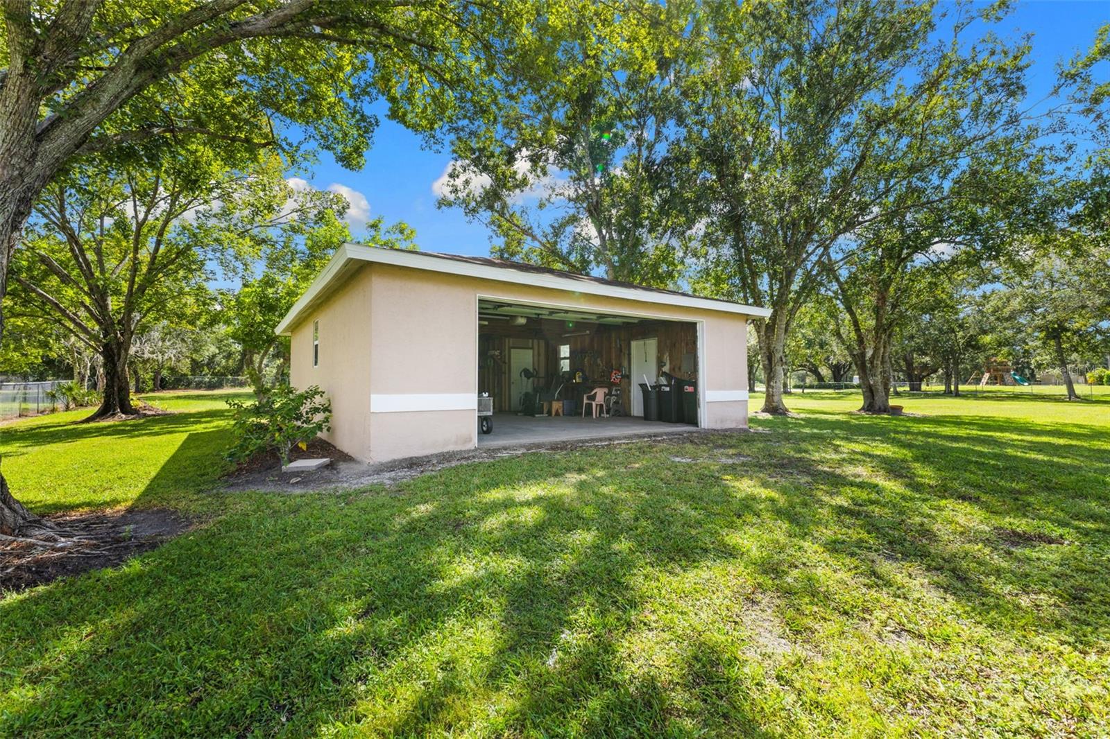 Location, Location, Location! Discover the perfect blend of country charm and modern living with this rare 2-acre estate in the Racimo Ranches community—where freedom reigns with no HOA and no deed restrictions! This spacious residence spans over 2, 600 square feet of living space, thoughtfully designed split floorplan with 4 bedrooms, 3 bathrooms, a versatile den, and expansive formal and casual living areas. The updated kitchen pairs style with functionality, while the cozy family room with a wood-burning fireplace creates an inviting retreat. Additional highlights include a newer roof (2022), hurricane-impact PGT windows and sliders, and a light-filled breakfast nook overlooking the outdoors. Designed for privacy, the split floor plan separates the primary suite from the additional bedrooms, making it ideal for both relaxation and hosting guests. Step outside to the oversized screened-in lanai, perfect for entertaining, or explore the property’s impressive acreage grounds. You’ll find not only a 2-car attached garage but also a detached 600 sq. ft. garage—a dream space for a workshop, extra storage, or additional vehicles/toys. The fenced lot offers endless possibilities to add a pool, guest house, or in-law suite. This is more than a home—it’s an opportunity to craft your lifestyle on your terms. With proximity to downtown Sarasota, Waterside, UTC Mall, Lakewood Ranch, world-class beaches, and the newly opened Fruitville Commons and University Town Center, which features a Publix, CVS, Twin Peaks restaurant, Coopers Hawk restaurant, Big Top Brewery, Dunkin Donuts, daycare, dentistry, and much more! Ease and convenience are just minutes away. Bring your boats, RVs, and trailers—and embrace the best of country living in one of Sarasota’s most desirable locations!