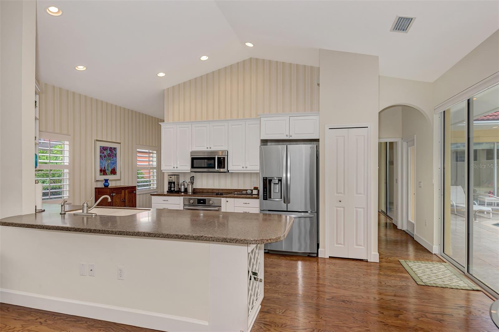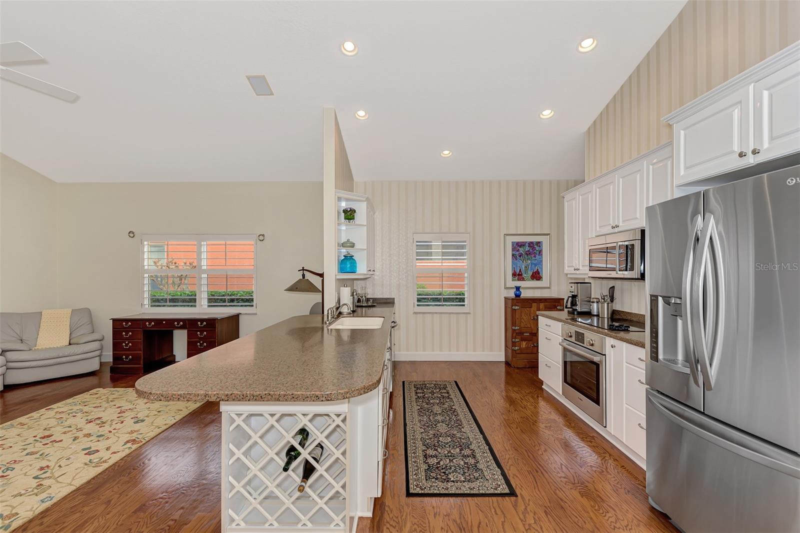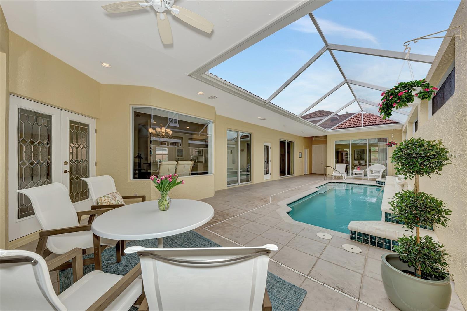 Welcome to your dream home, nestled within the exclusive, gated community of TPC Prestancia Golf and Social Club—a 565-acre oasis of luxury, world-class golf, and serene Florida living. Located in the highly coveted Valencia section, this charming, maintenance-free courtyard-style residence offers over 2, 100 square feet of elegant living space, complete with a private pool featuring a soothing waterfall and lush, tropical landscaping. It’s the ideal setting for both tranquil relaxation and entertaining guests. This exceptional home includes a private casita, perfect for guests, family, or versatile use as an exercise studio or home office. With natural light pouring in, a full bathroom, and its own private entrance, the possibilities for this unique space are endless. As you enter the main home, you’re immediately greeted by a bright, welcoming courtyard that sets the tone for the meticulous attention to detail throughout. The open, airy living areas boast high ceilings, beautiful wood floors, and expansive windows that flood the home with natural light while framing peaceful views of the greenbelt and lake / creek. The spacious gourmet kitchen is a true chef’s delight, featuring top-of-the-line stainless steel appliances, generous counter space, and a breakfast bar, all overlooking the oversized family room and dining area. A cozy breakfast nook, highlighted by an aquarium window, provides the perfect spot to savor your morning coffee while enjoying nature’s beauty. The owner’s suite is a private retreat, offering panoramic views, plantation shutters, and a spa-like bath with double vanities, a soaking tub, a walk-in shower, and a generously sized walk-in closet. The split floor plan provides privacy for guests, with a spacious guest room and a full bathroom that conveniently doubles as a pool bath. Additional amenities include a two-car garage, laundry room, and abundant storage space, seamlessly blending practicality with luxury. TPC Prestancia offers optional memberships for golf and social activities, providing access to 36 holes of championship golf, fine dining, and a calendar of engaging social events. The home’s prime location offers unparalleled convenience, with the world-renowned Siesta Key beaches just minutes away, as well as downtown Sarasota, dining, shopping, and the newly extended Legacy Bike Trail. With easy access to I-75 and Sarasota’s airport, this is the perfect setting for both relaxation and adventure. This maintenance-free, luxurious courtyard home at TPC Prestancia is a rare find where comfort, style, and Florida living converge. Call today to schedule your private tour and experience the lifestyle you’ve always dreamed of!