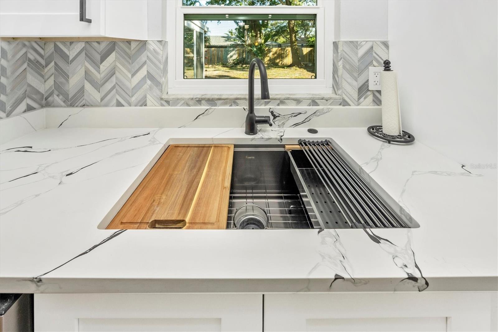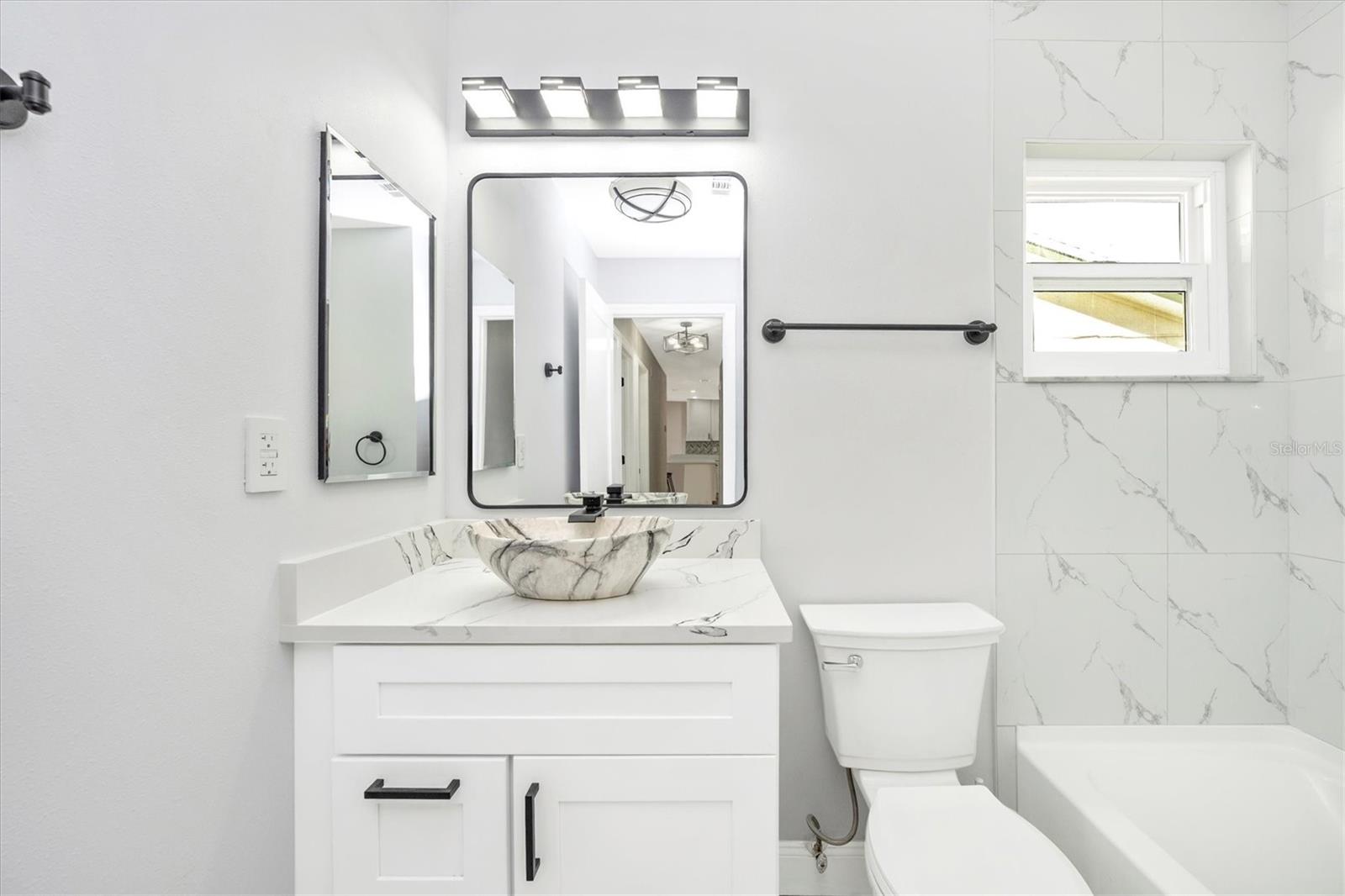 Welcome home to this beautifully remodeled 3-bedroom, 2-bath block home where craftsmanship and comfort come together in perfect balance. Every detail has been thoughtfully reimagined to elevate your everyday living, from the open floor plan to the curated finishes that flow seamlessly throughout. From the moment you step inside, you'll notice the refined details - luxury vinyl plank flooring, onyx hardware accents, solid-core doors, and fresh paint inside and out. The kitchen is a true showstopper featuring new shaker-style cabinets, sleek quartz countertops, all-new LG stainless steel appliances, and a Moet touchless faucet that blends innovation with elegance. The primary suite feels like a private retreat with a stunning spa-inspired bathroom. The custom shower features four distinct water experiences a soothing rain shower, four invigorating body jets, and additional precision streams - creating a daily experience of comfort and indulgence. Both bathrooms showcase quartz countertops, beautiful tilework, and stylish vessel sinks that complete the polished look. Expand your living space with the 444 sq ft enclosed sunroom, complete with its own remote controlled mini split for year-round comfort and LED lighting to set the mood for any occasion. The screened front lanai is perfect for morning coffee or quiet evenings, while the large, fully fenced backyard offers endless opportunities, from entertaining to adding a future pool, garden, or play area. With a one-car garage and storage space, new hurricane-impact windows, new tankless water heater, new 3-ton A/C, 5 1/4" baseboards and countless high-end finishes, this home is truly turn-key and built to impress. Every inch of this home has been upgraded with care, blending style, comfort, and quality into one exceptional living experience. All that's left to do is move in and fall in love.