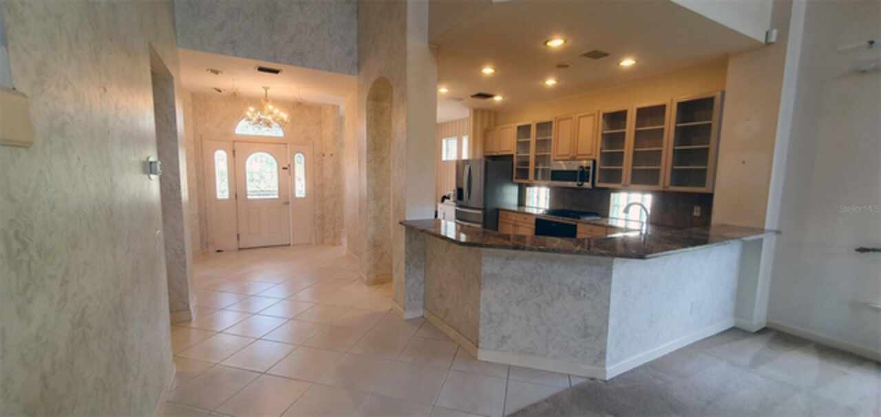Seclusion and scenic golf course views—all without the worry of stray balls. A true entertainer’s dream, the backyard boasts a lovely pool with recent tile updates, an inviting outdoor gas fireplace, and a spacious outdoor kitchen area brimming with potential. The home has been freshly repainted (September 2024) and features a roof under five years old, ensuring peace of mind. While the interior is ready for your personal touch, this "sold as-is" opportunity provides endless possibilities to create your dream space. With no history of flood damage and a two-car garage, this property is a rare find for those looking for location, privacy, and potential.