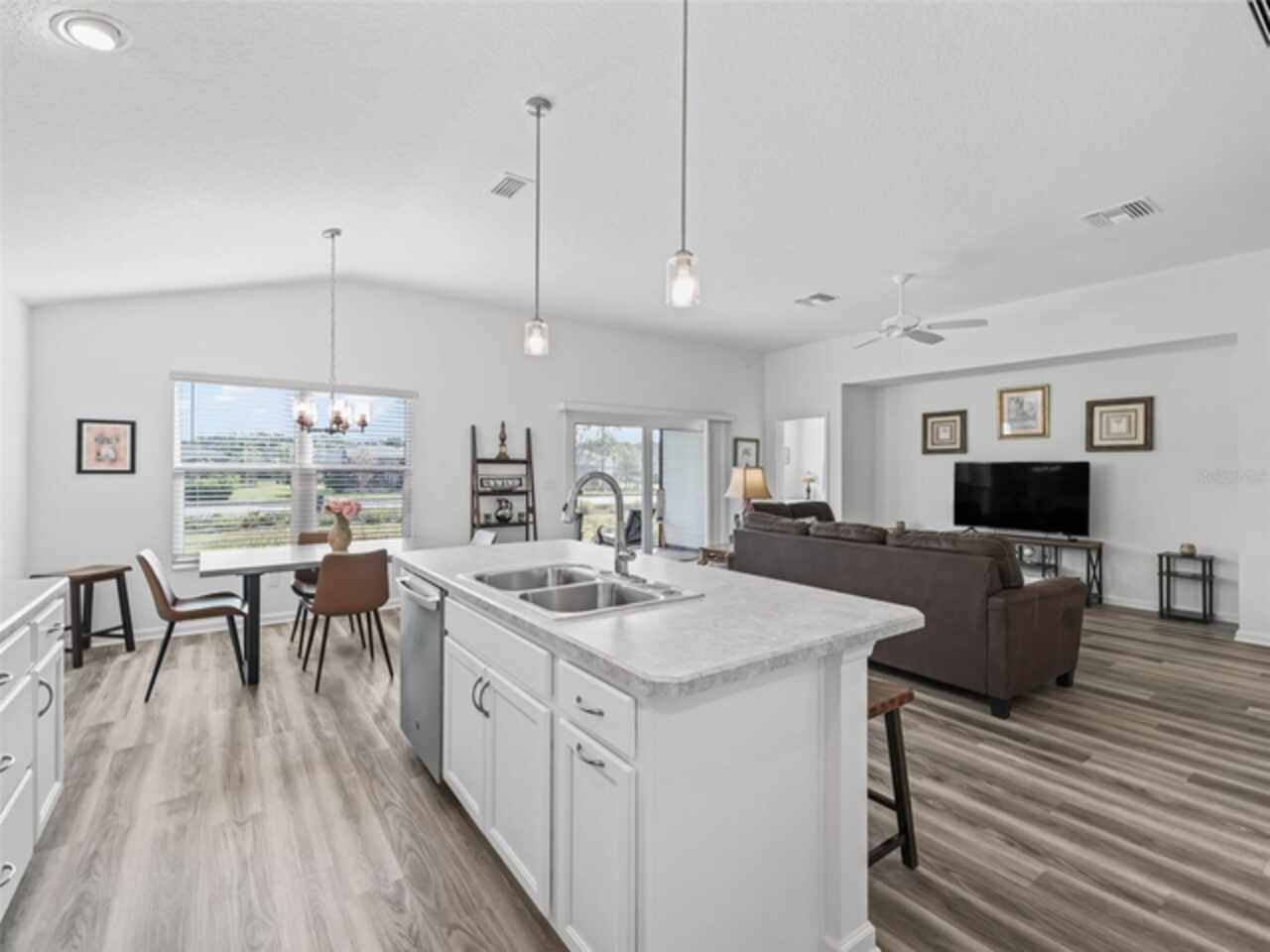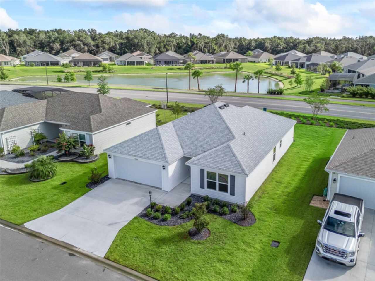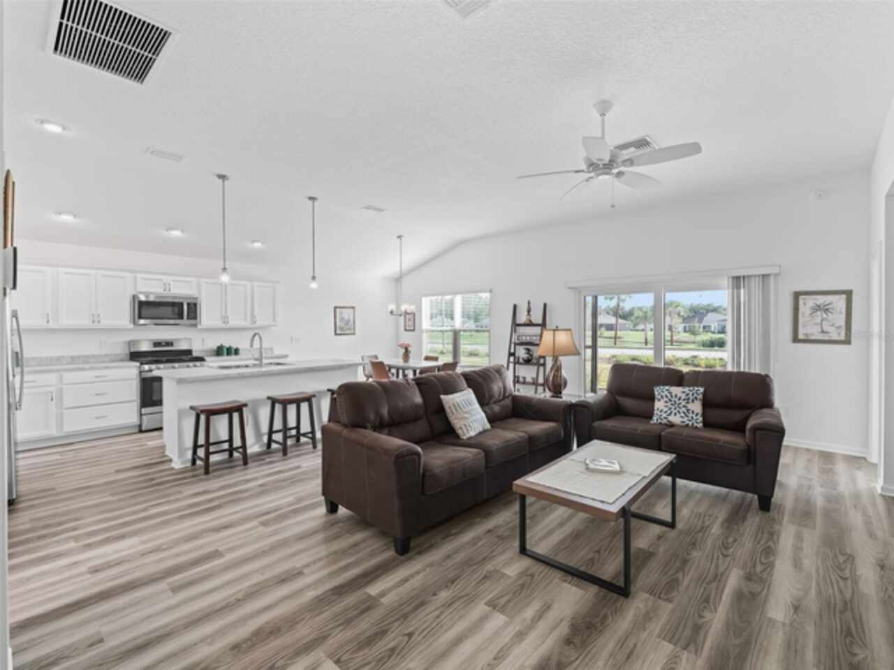 Move-In Ready, recently built in 2023, practically brand-new home. Turnkey optional, so just bring your toothbrush and start living the lifestyle you’ve been dreaming of and enjoying everything The Villages has to offer. Vibrant golf cart community with easy access to shopping, dining, and entertainment. With 3 bedrooms, 2 bathrooms, and a 2-car garage, the layout and open floor plan are not only functional but also inviting and great for entertaining. The primary suite boasts a stylish tray ceiling, large walk-in closet and en-suite bathroom with double sinks. The kitchen is a great workspace that features STAINLESS STEEL appliances, solid wood cabinetry with convenient roll-out shelves, soft-close doors and drawers. Whether it’s a morning round of golf or a day of enjoying your favorite activities, unwind on the screened lanai that has a pond view and no rear neighbors, or enjoy the free nightly live entertainment at one of the town squares or nearby Sawgrass Grove. This like new home offers the perfect balance of activity and relaxation so call now to schedule your private tour today!